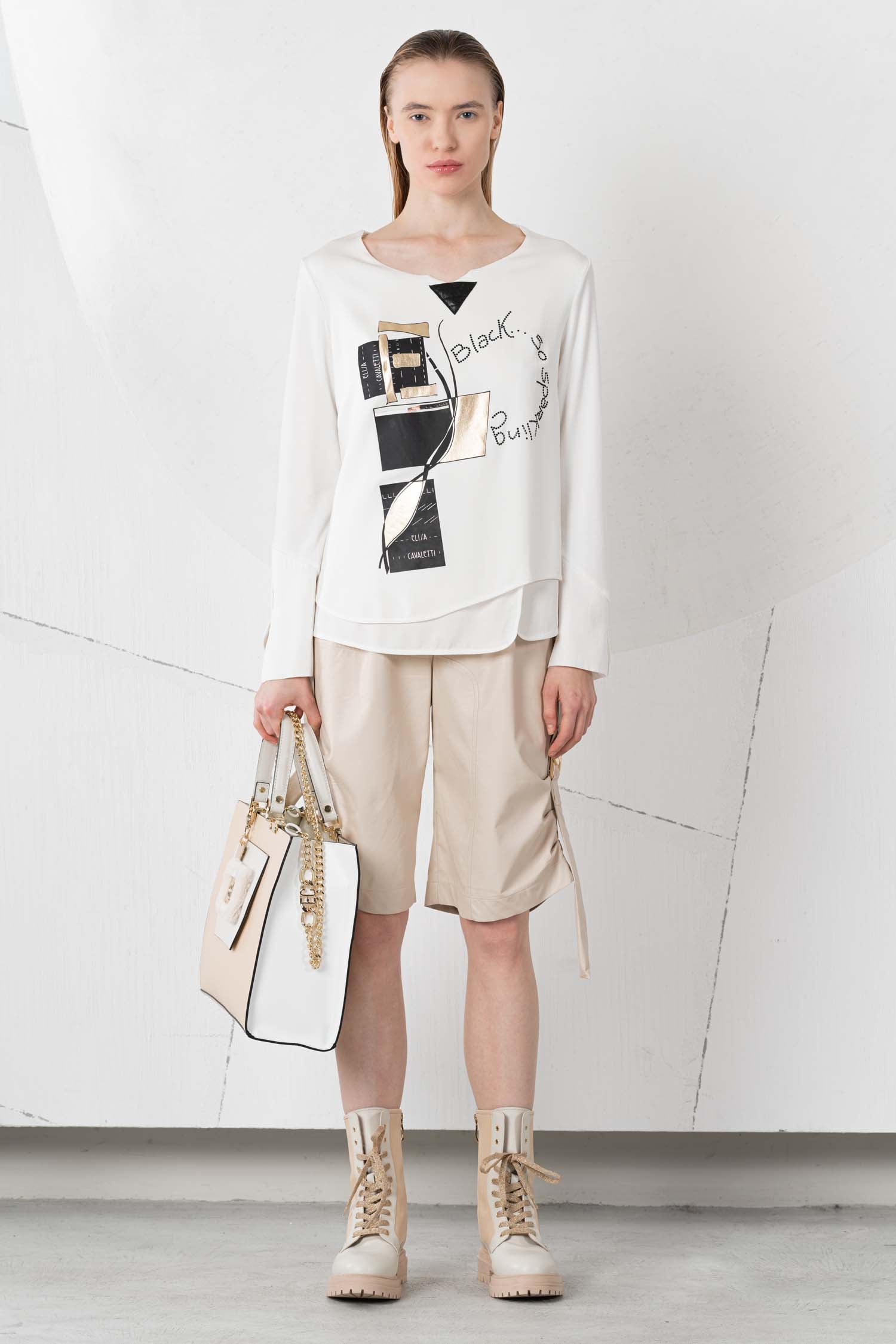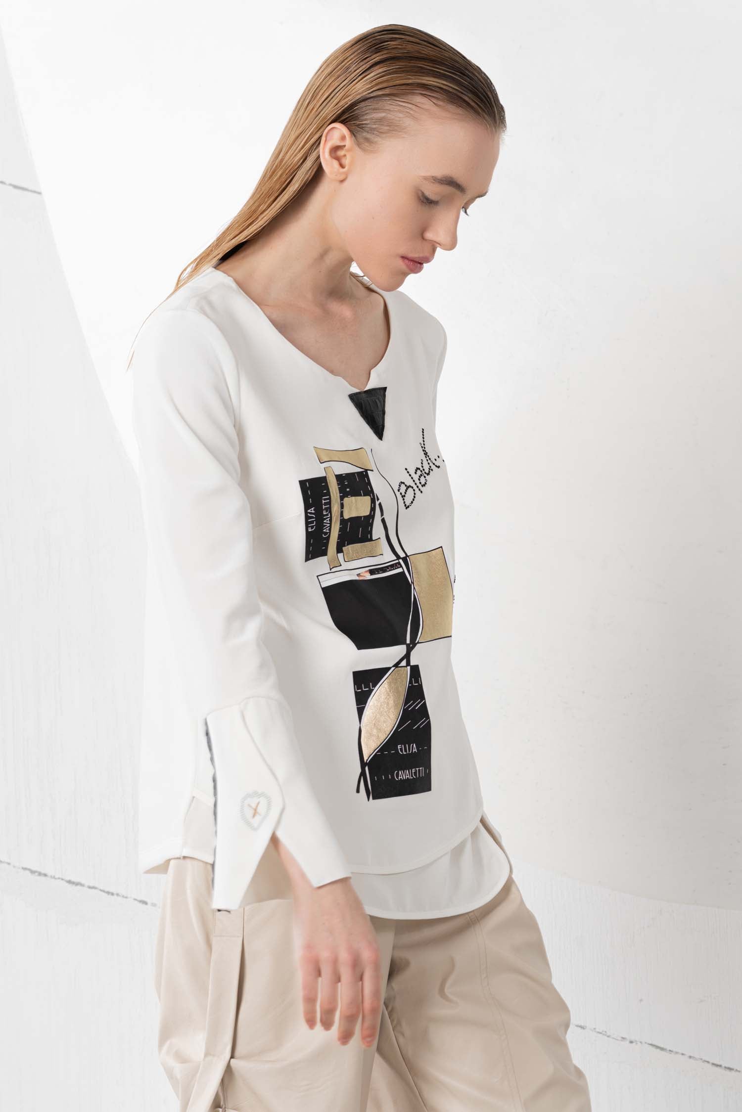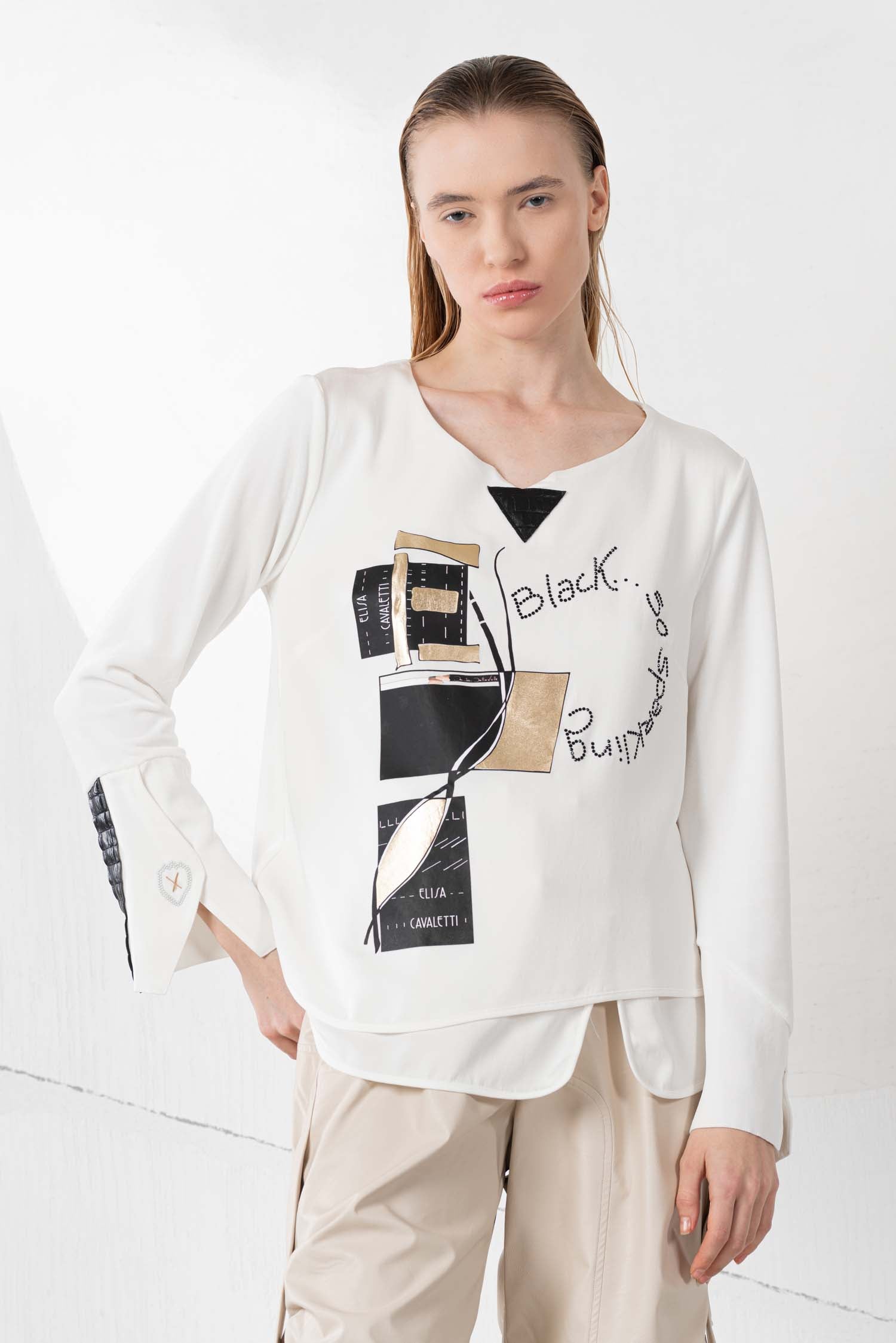 Experience modern style with the ELISA CAVALETTI Incontro sweatshirt! The cream color and geometric print make this sweatshirt a real eye-catcher. Perfect for a striking look that makes an impression. Get it now and see for yourself!