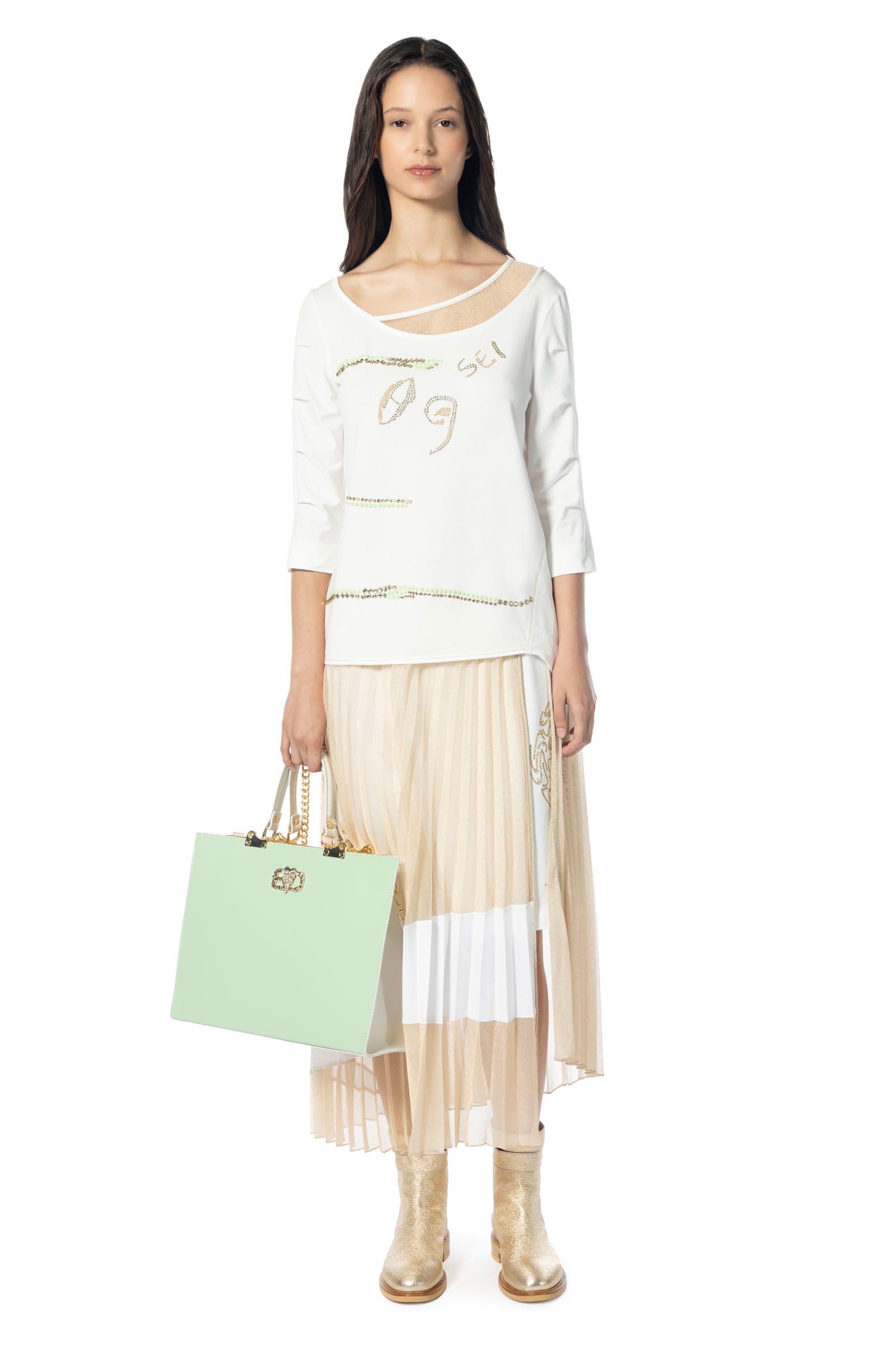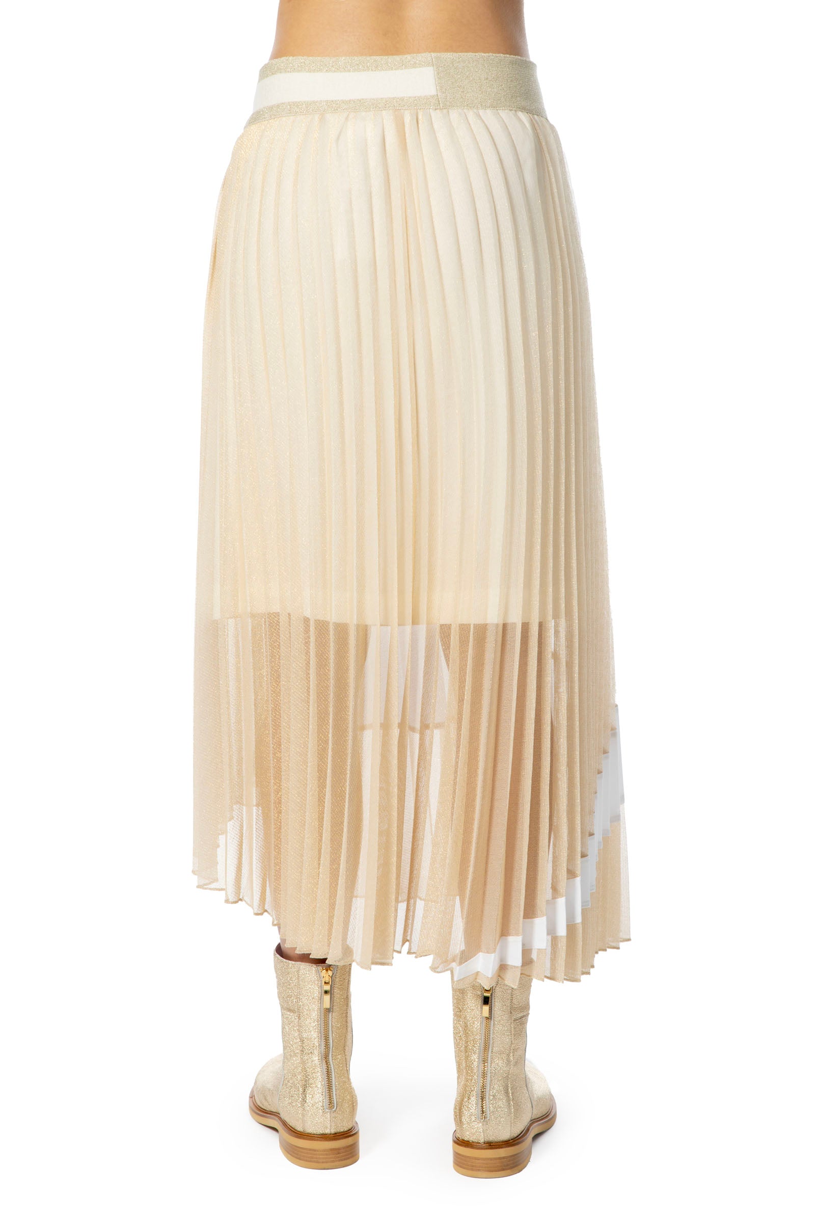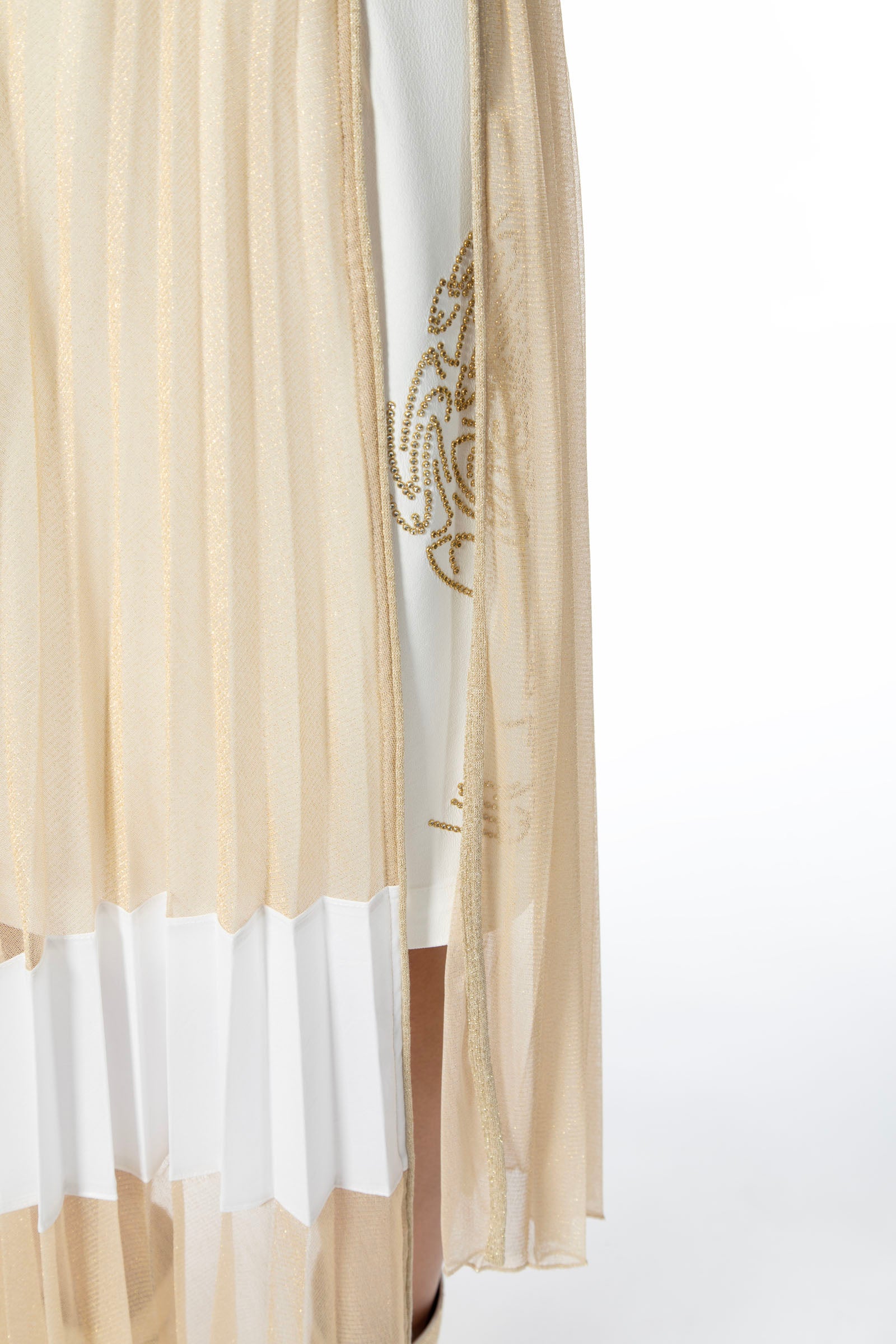 Add a touch of elegance to your outfit with the ELISA CAVALETTI Oro pleated skirt! This stylish, long skirt in white and gold with shimmering cuffs will make you shine and give you a glamorous look. Perfect for special occasions and a must-have for anyone who values style!