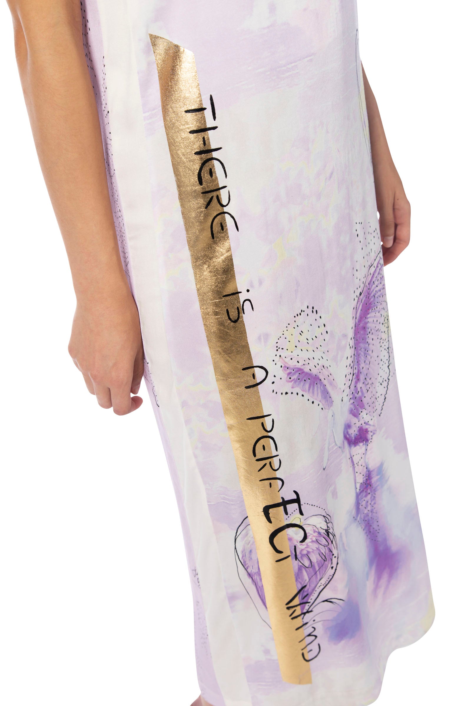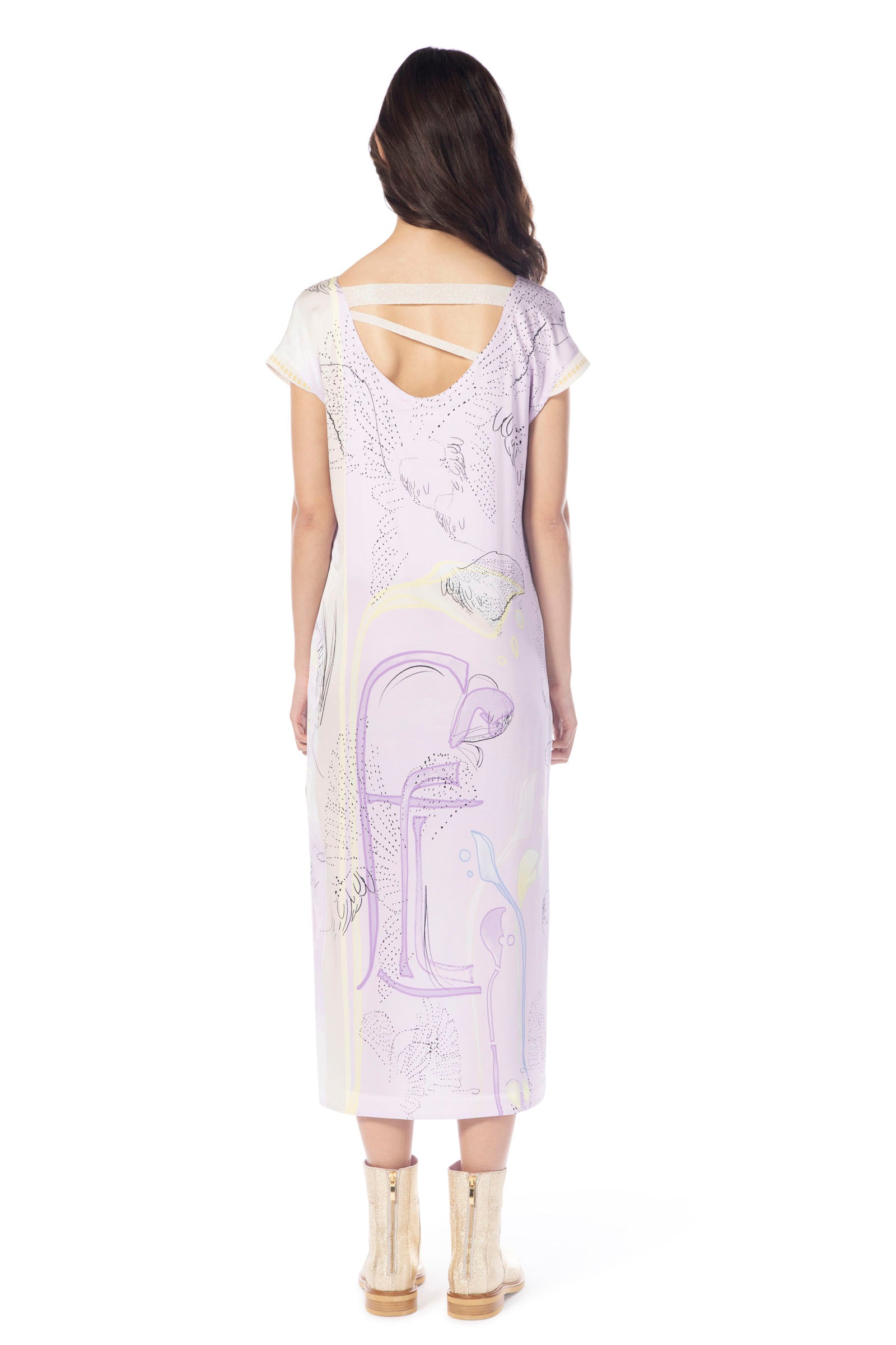 Discover the stunning calf-length dress from ELISA CAVALETTI in various shades of purple with gold stripe trim. Its unique design adds a touch of elegance and style to any occasion. Let yourself be enchanted by the beauty of this dress and turn heads wherever you go!
