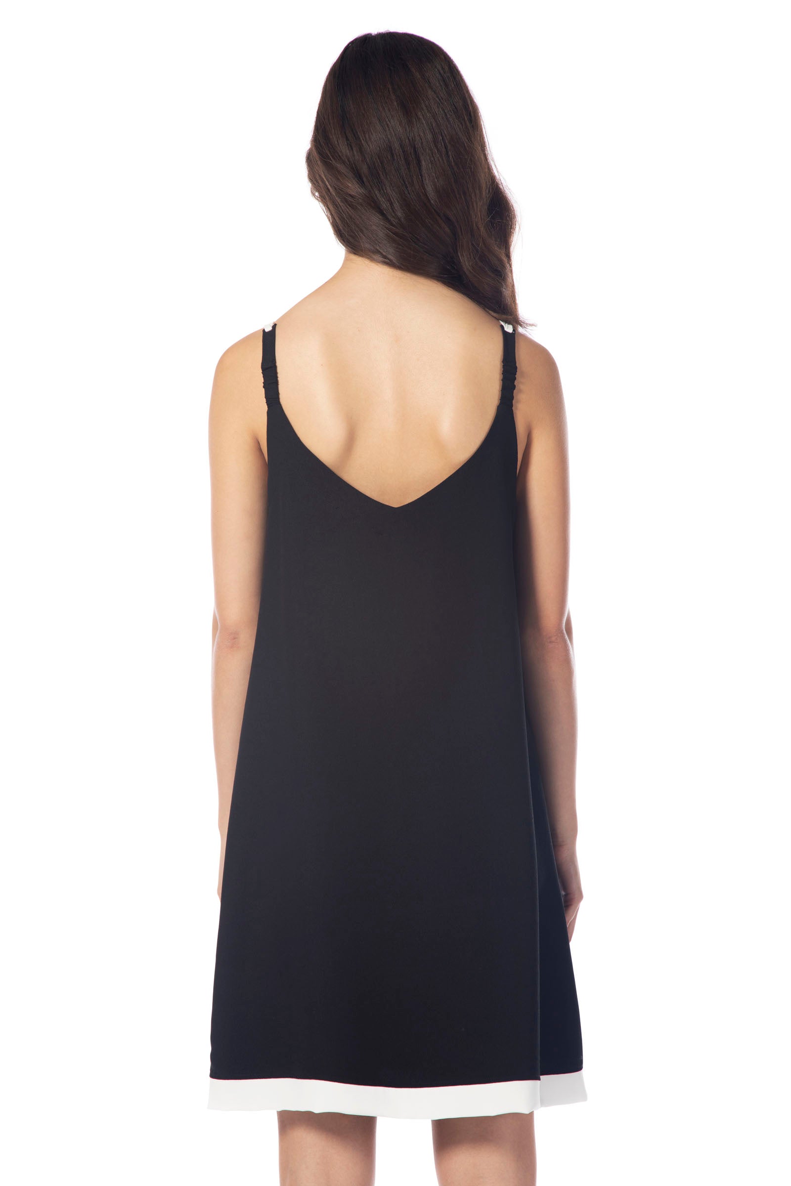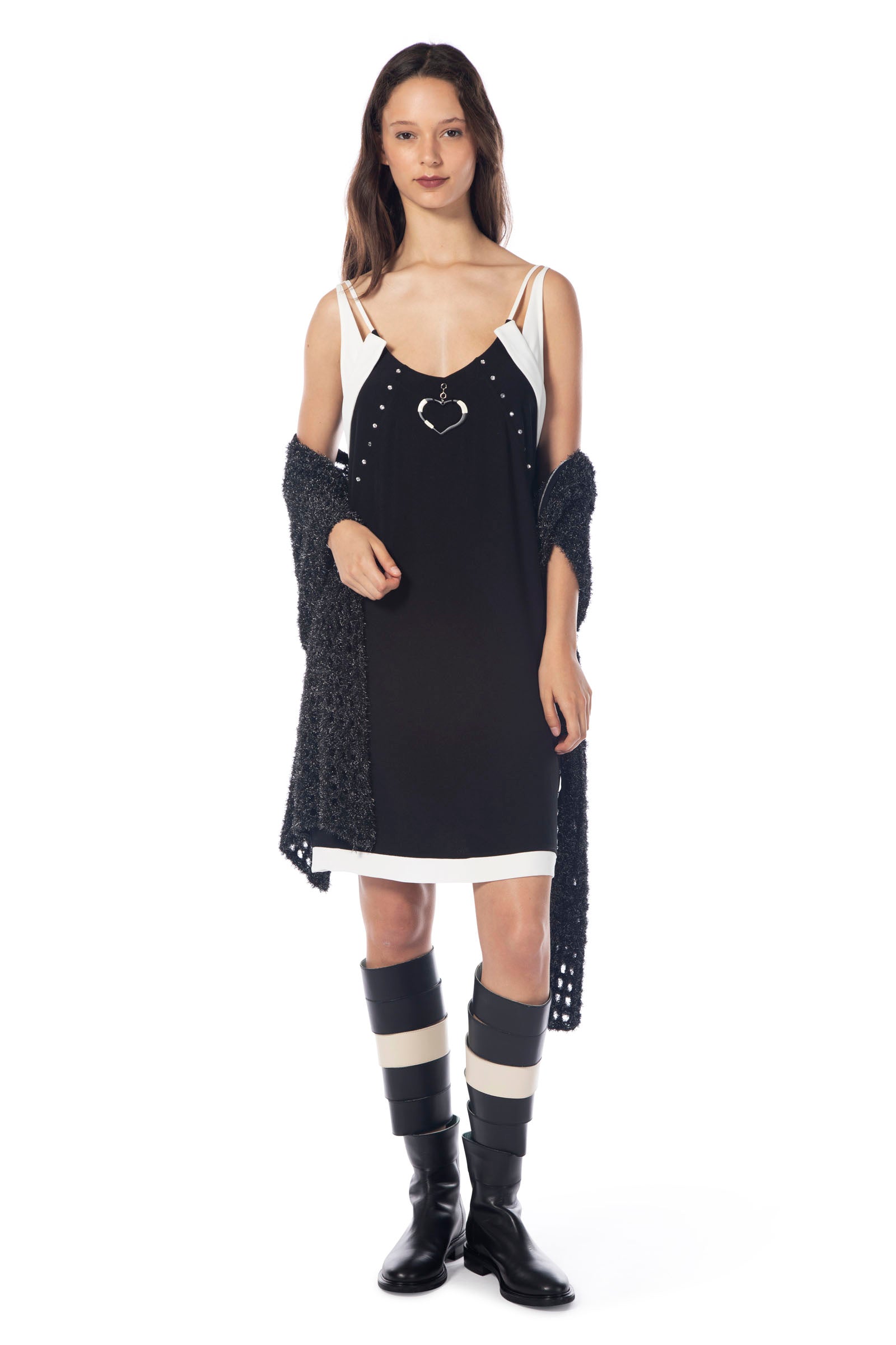 A stylish, modern dress in classic black and white. Perfect for any occasion and guaranteed to turn heads. Let this knee-length dress impress you with its simple design and high-quality material. A must-have for every wardrobe!