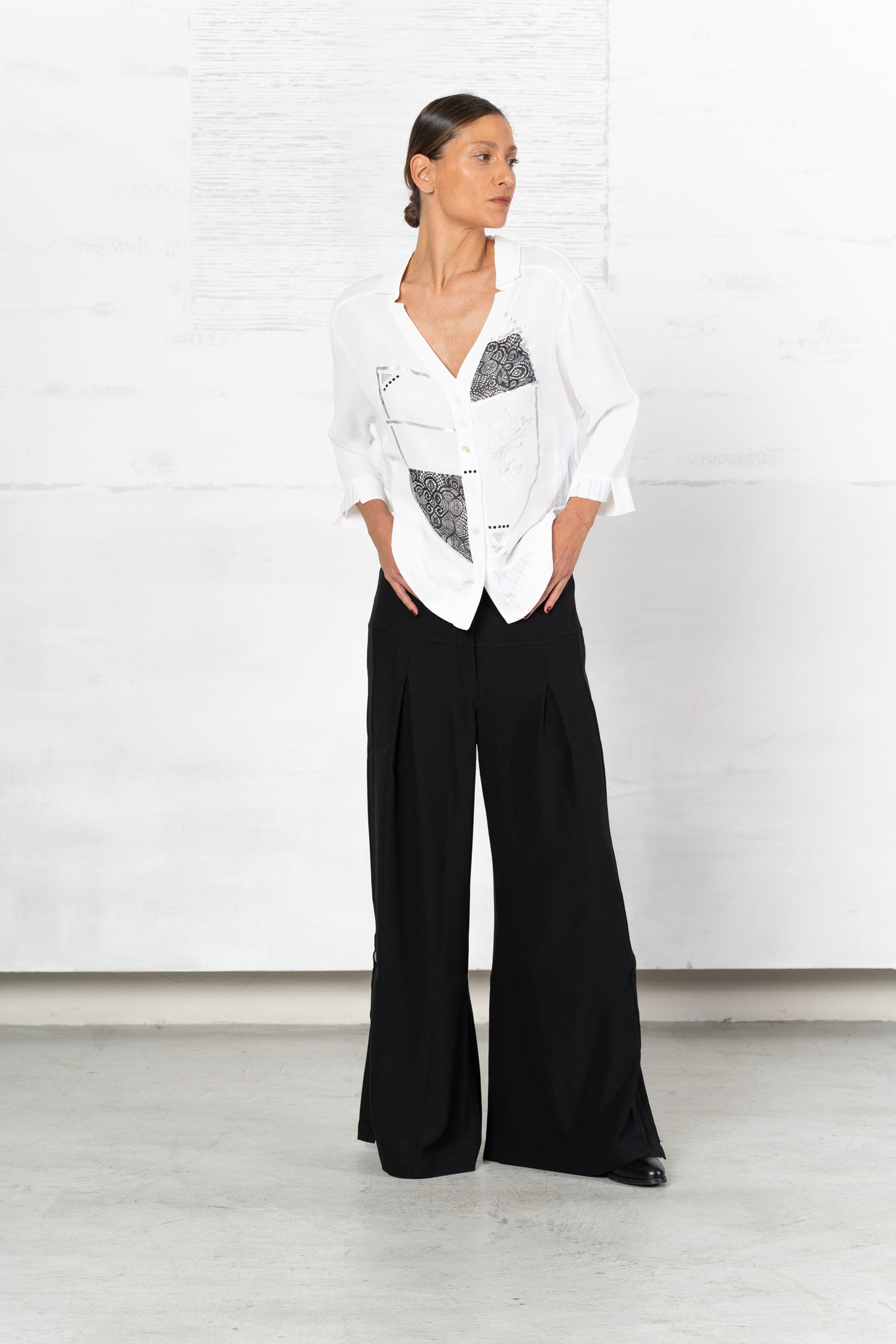 Experience the elegance and sophistication of ELISA CAVALETTI with the Incontro blouse. This white blouse is adorned with intricate black embroidery that elevates any outfit. Crafted from high-quality materials and meticulous workmanship, it offers both a luxurious feel and timeless elegance. Perfect for special occasions and everyday wear!