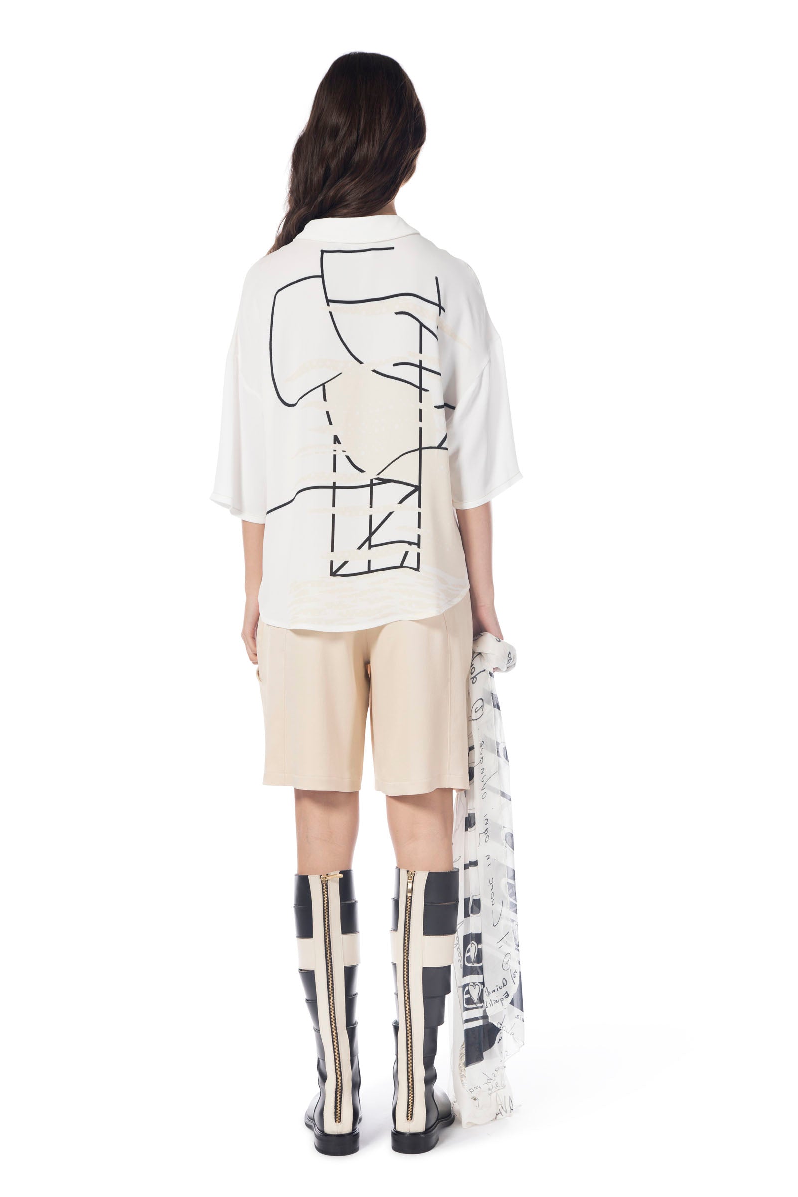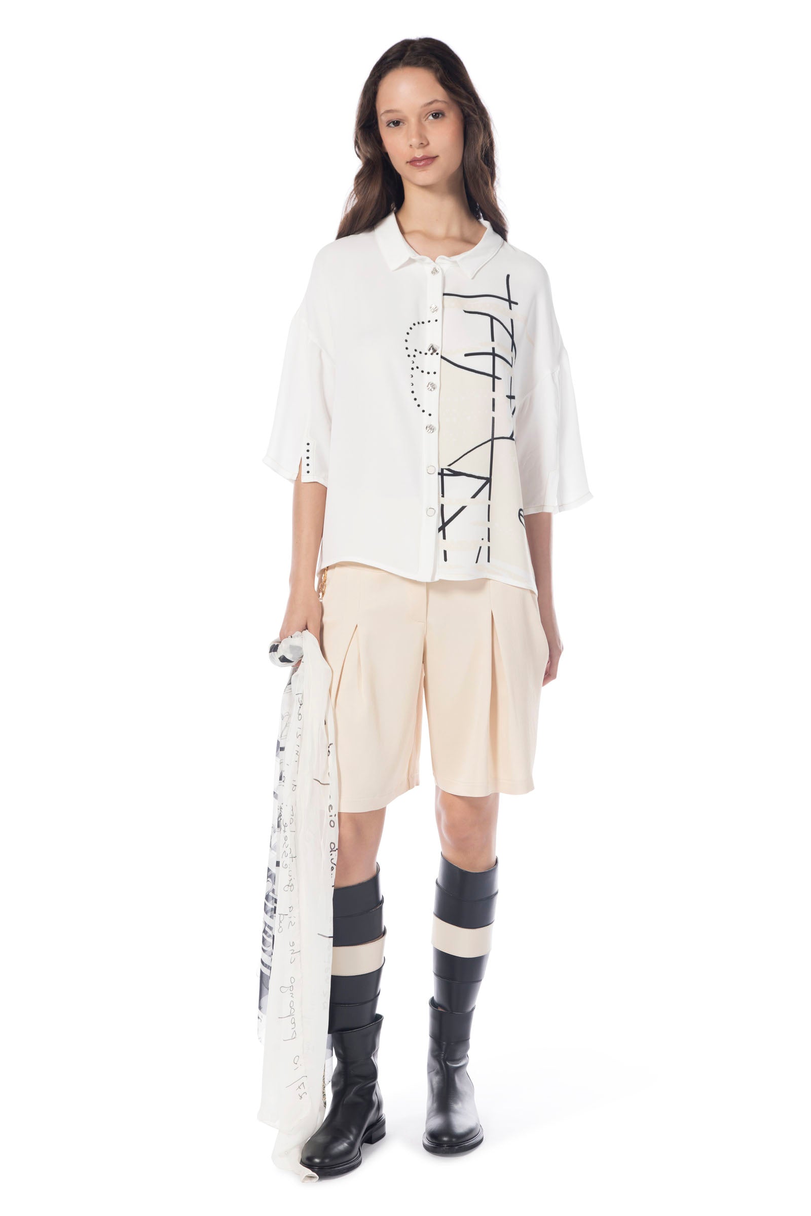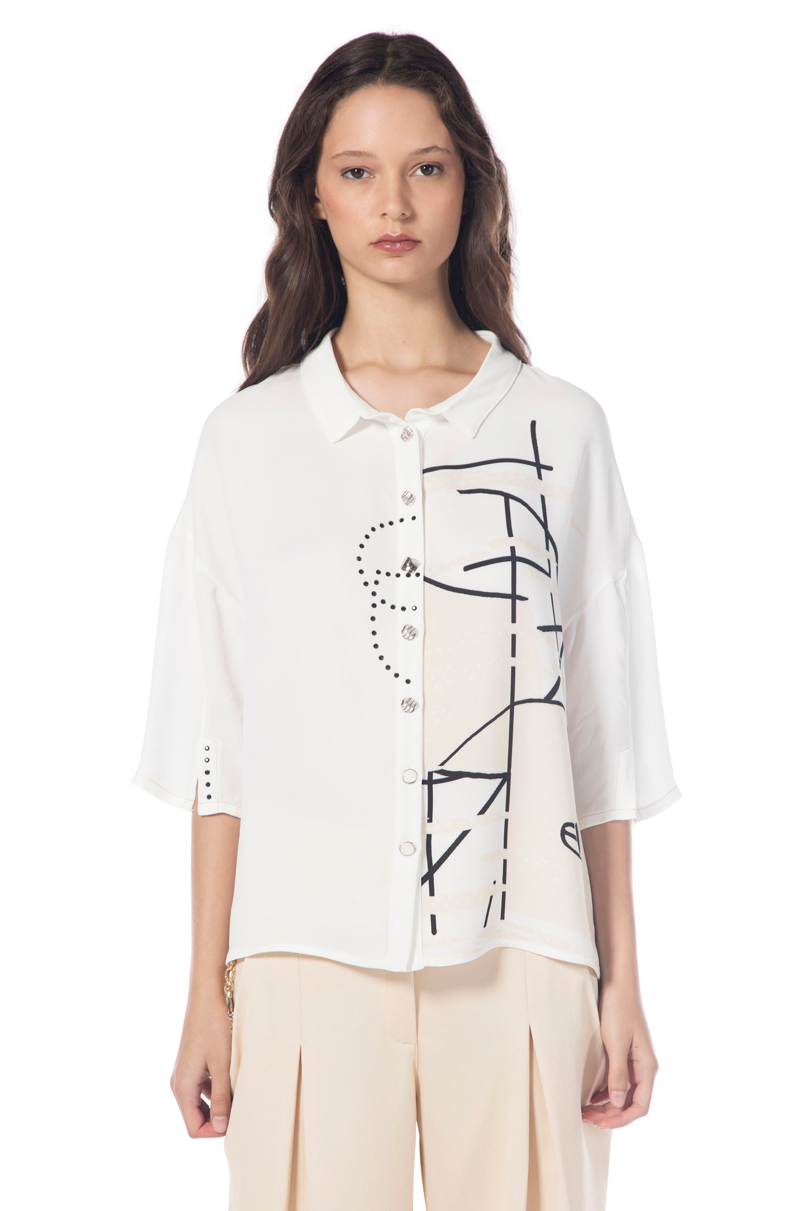 This versatile cream-colored blouse from ELISA CAVALETTI, featuring a playful pattern, creates an elegant and appealing look. Perfect for any occasion, it adds a touch of playful chic to your outfit. Let yourself be enchanted by the beauty and sophistication of the St. Archi blouse!
