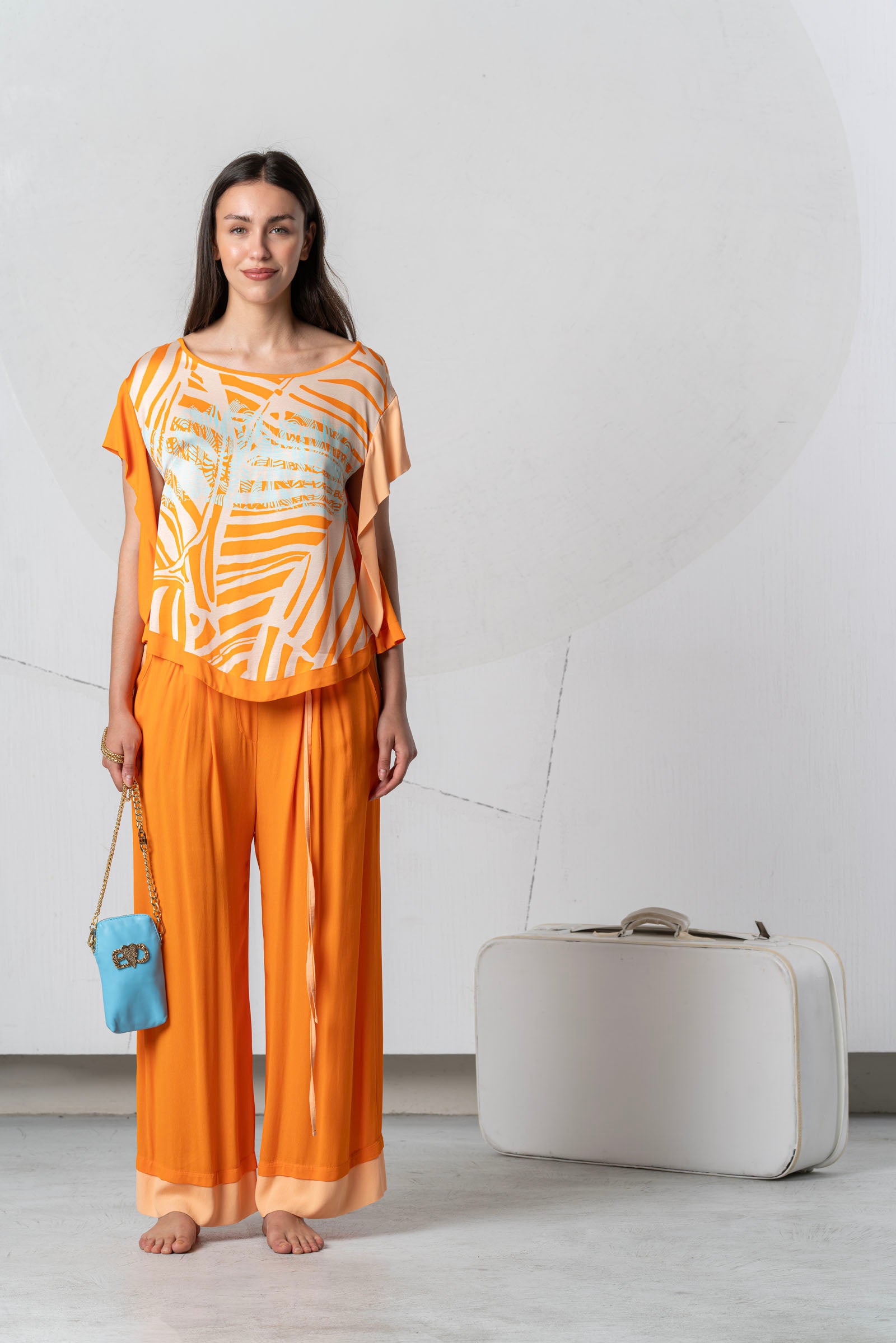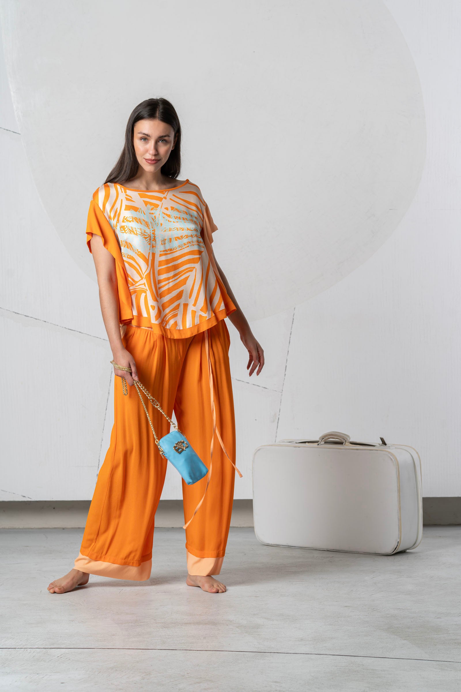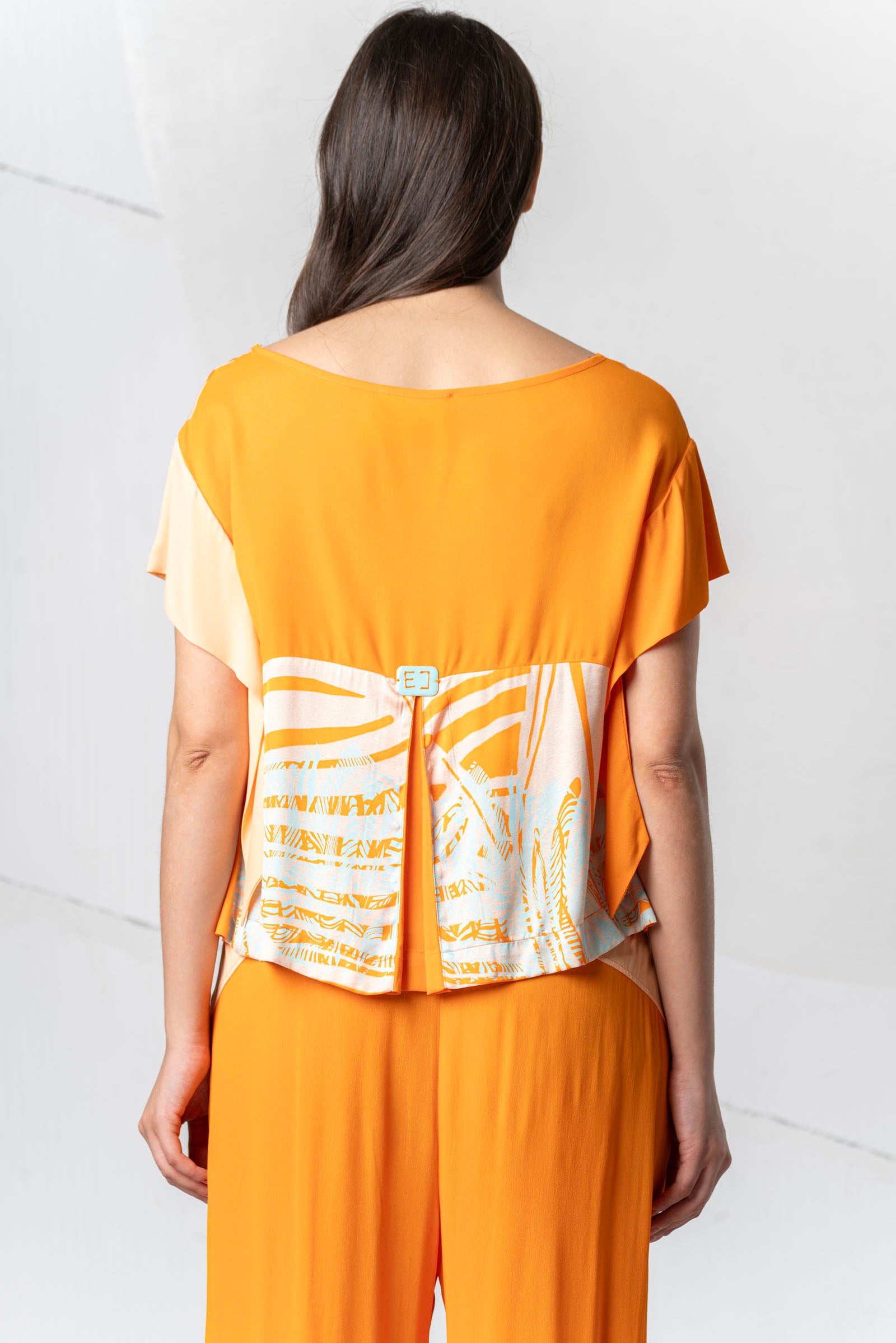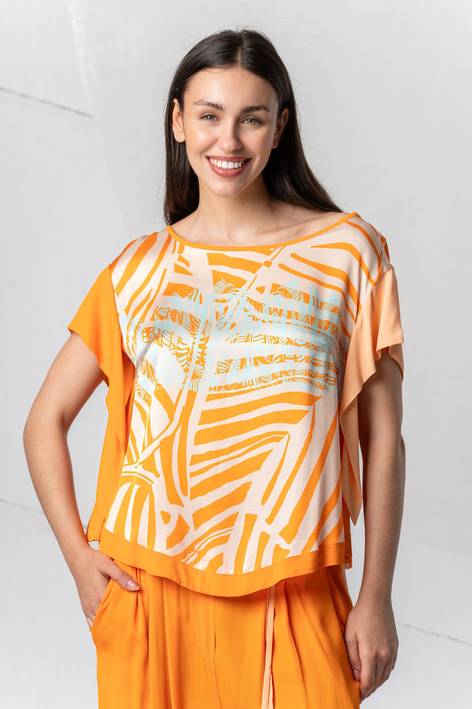 Discover the lightness of summer with the ELISA CAVALETTI St. Foglie Marea blouse! This short-sleeved blouse in orange and white will bring a breath of fresh air to your wardrobe. Let yourself be inspired by the colors of nature and enjoy the comfort of this blouse.