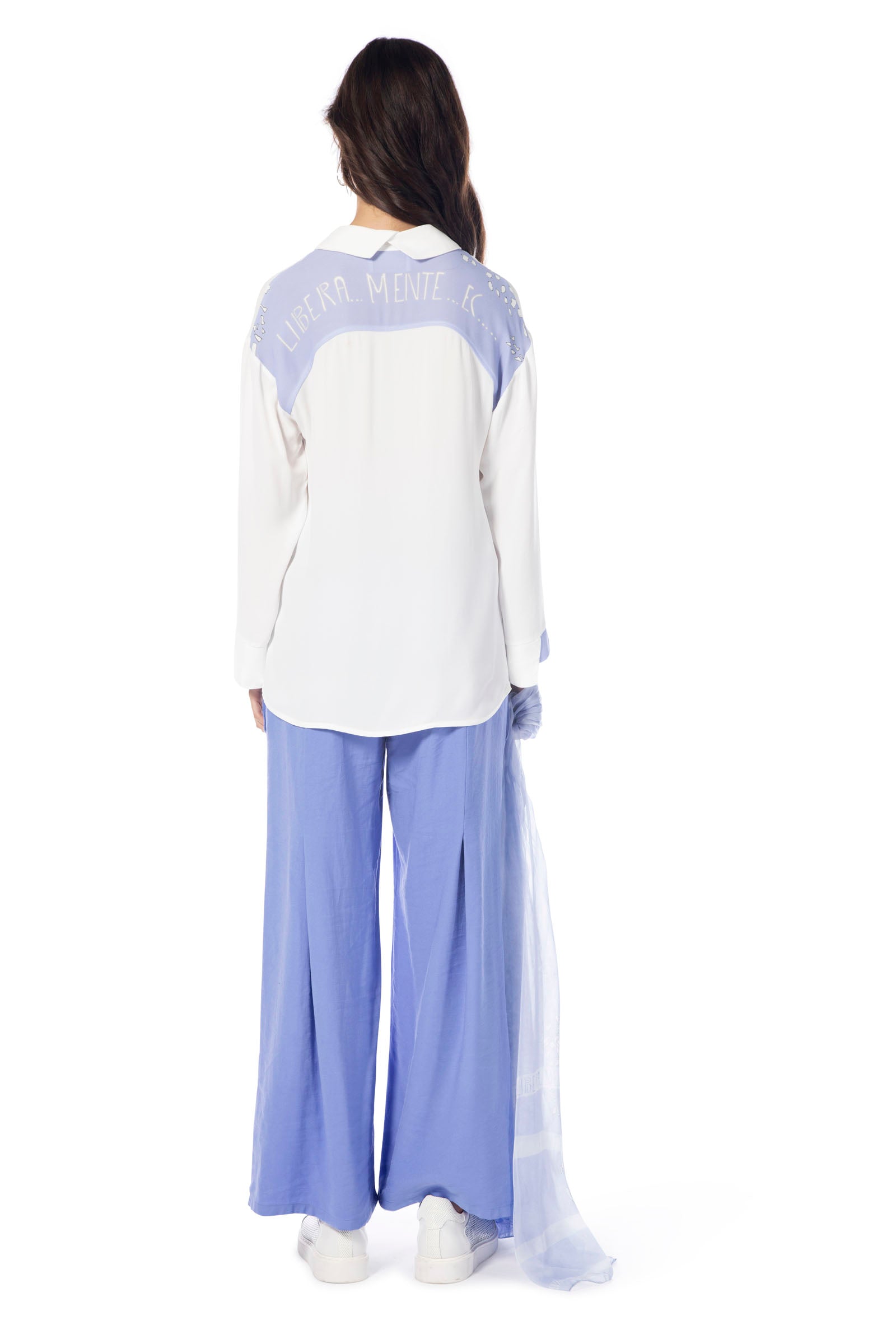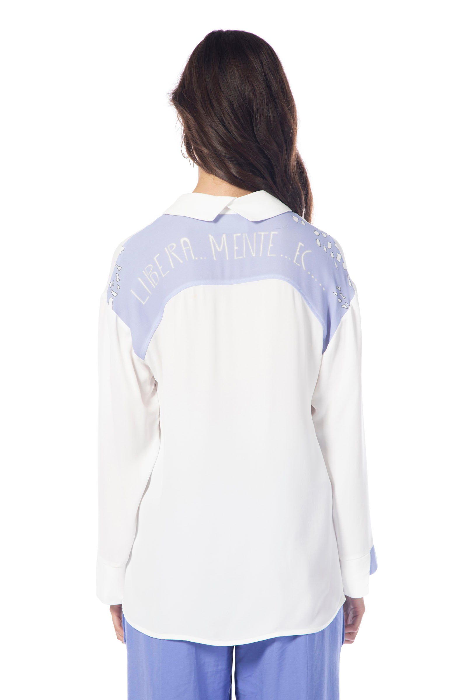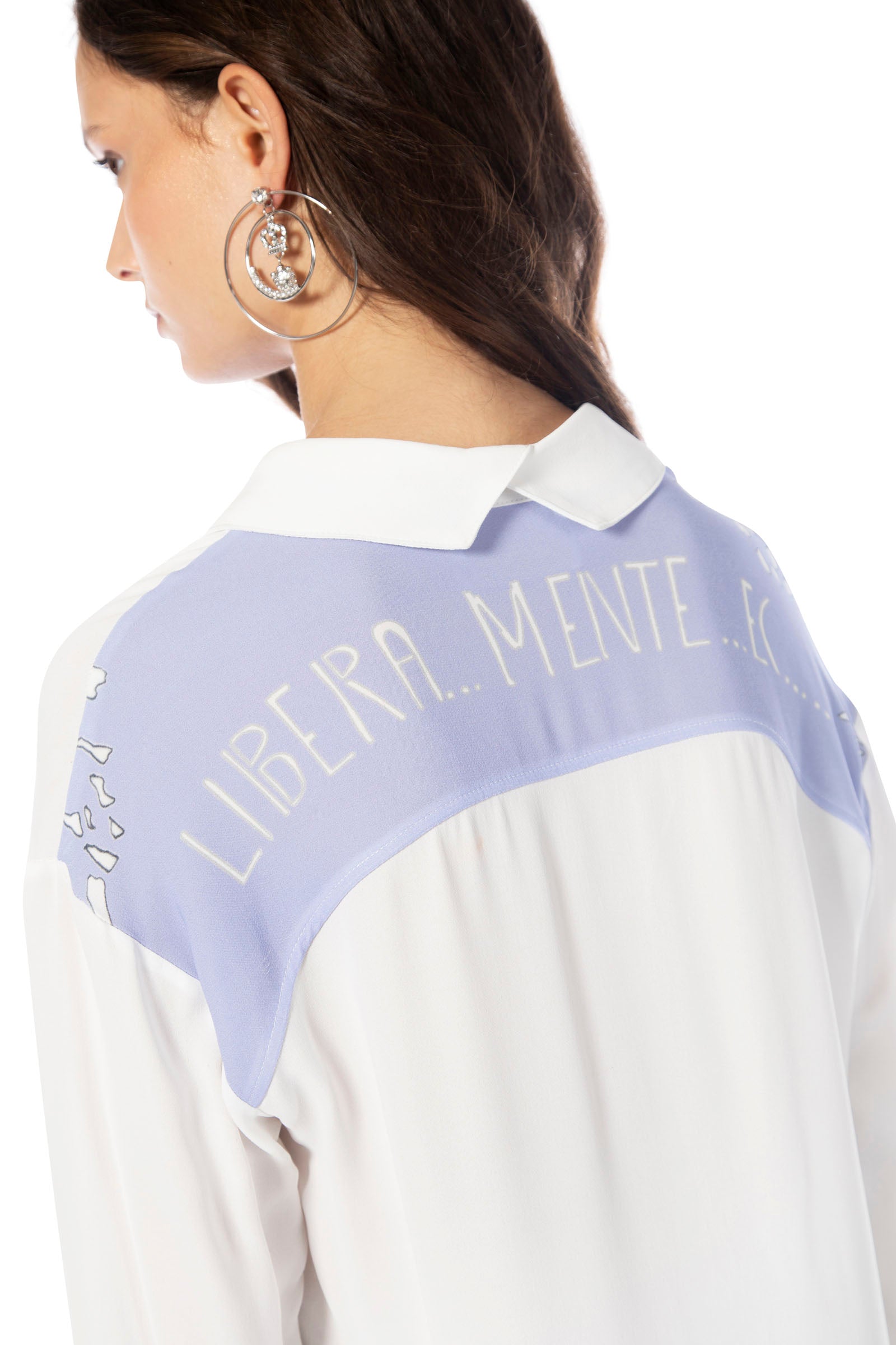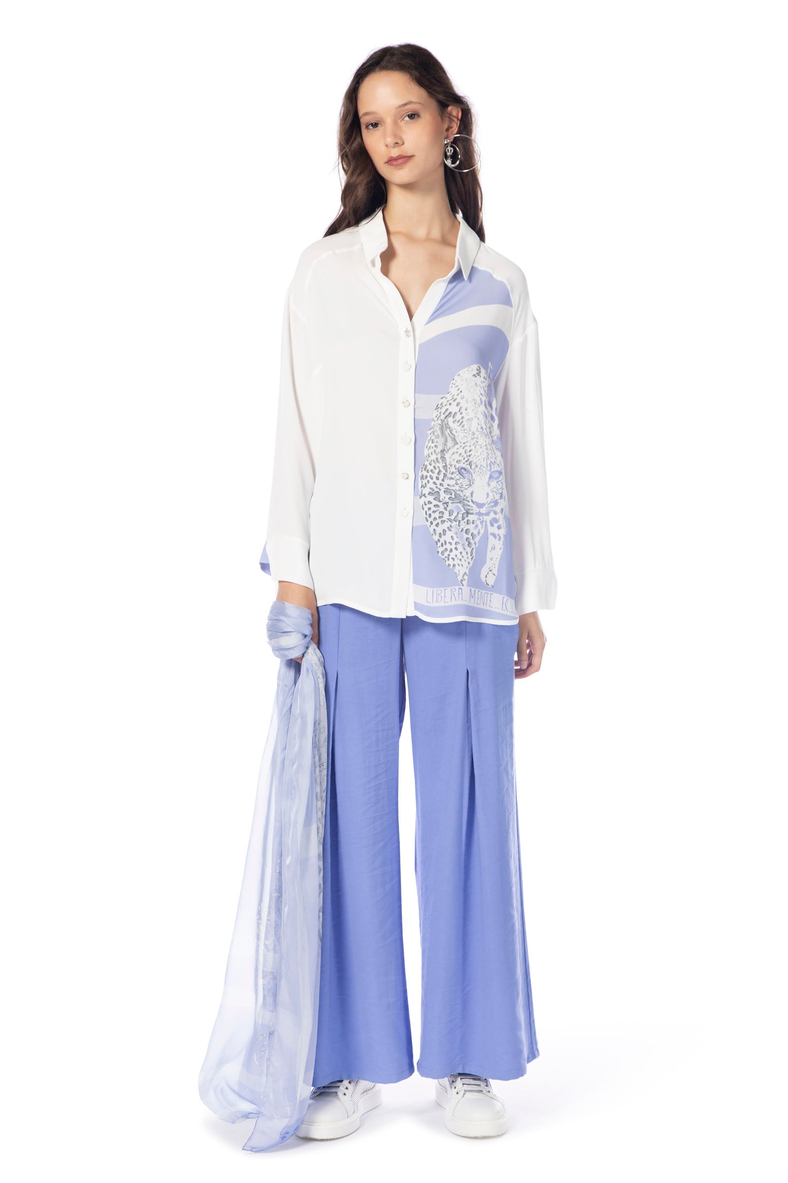 This stunning white and purple blouse from ELISA CAVALETTI is a real eye-catcher! The stylish leopard print adds a touch of wildness to the classic design. Perfect for a unique look and a special appearance. Experience the feeling of luxury and elegance with the St. Lince blouse from ELISA CAVALETTI!