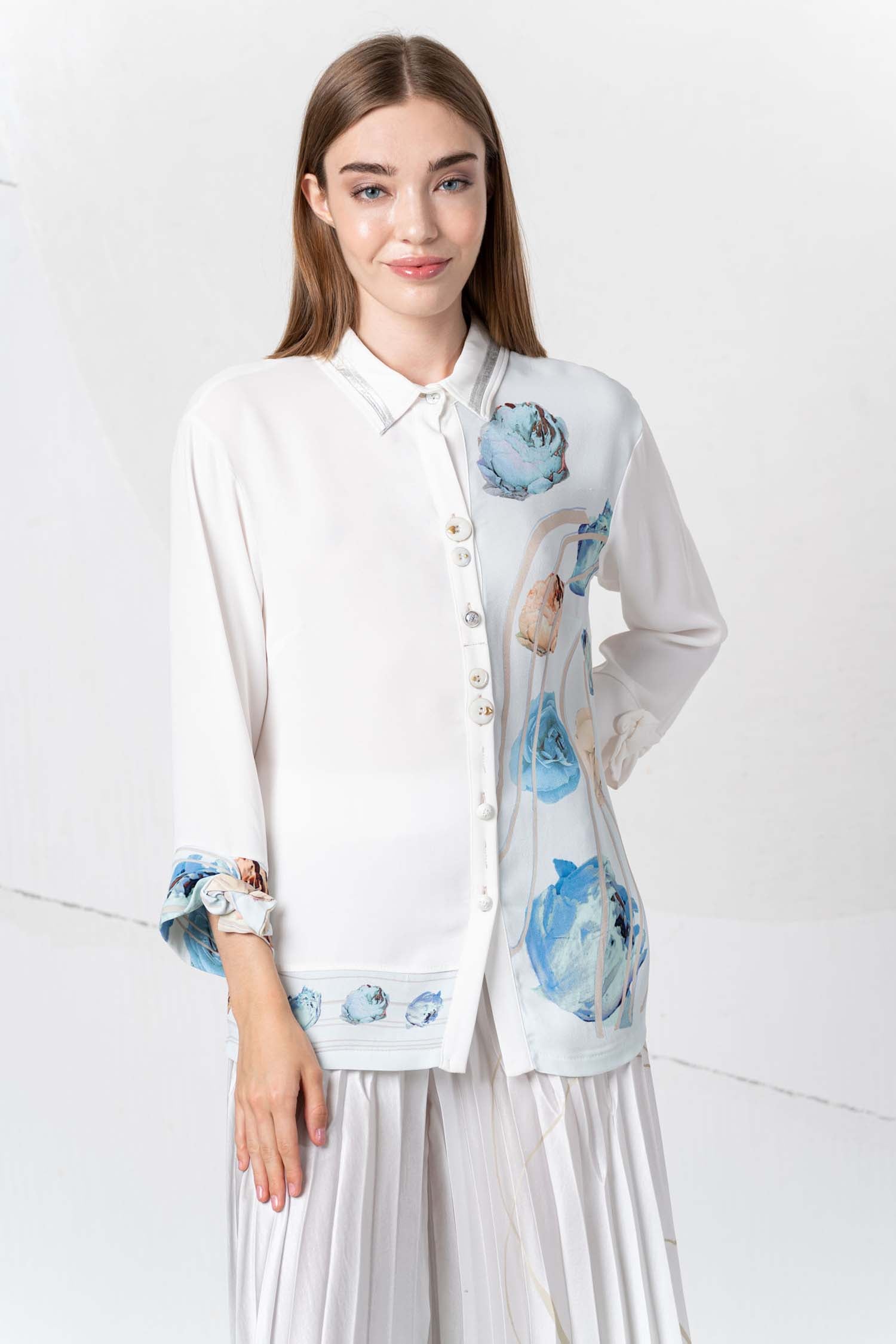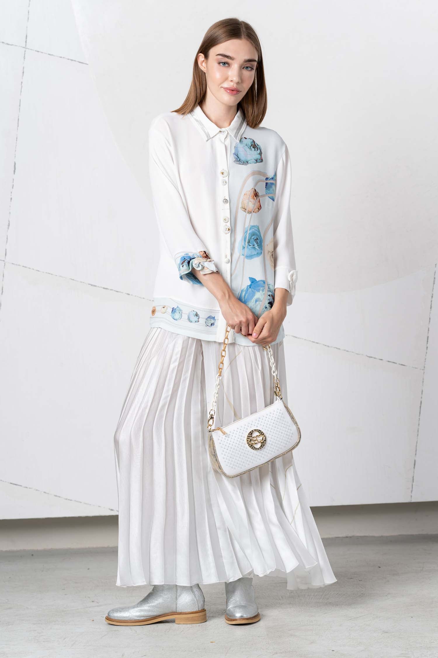 This ELISA CAVALETTI blouse in trendy white impresses with its stylish yet abstract pattern. The St. Rose Idillio collection creates a fashionable and individual look. Perfect for women who appreciate stylish details.