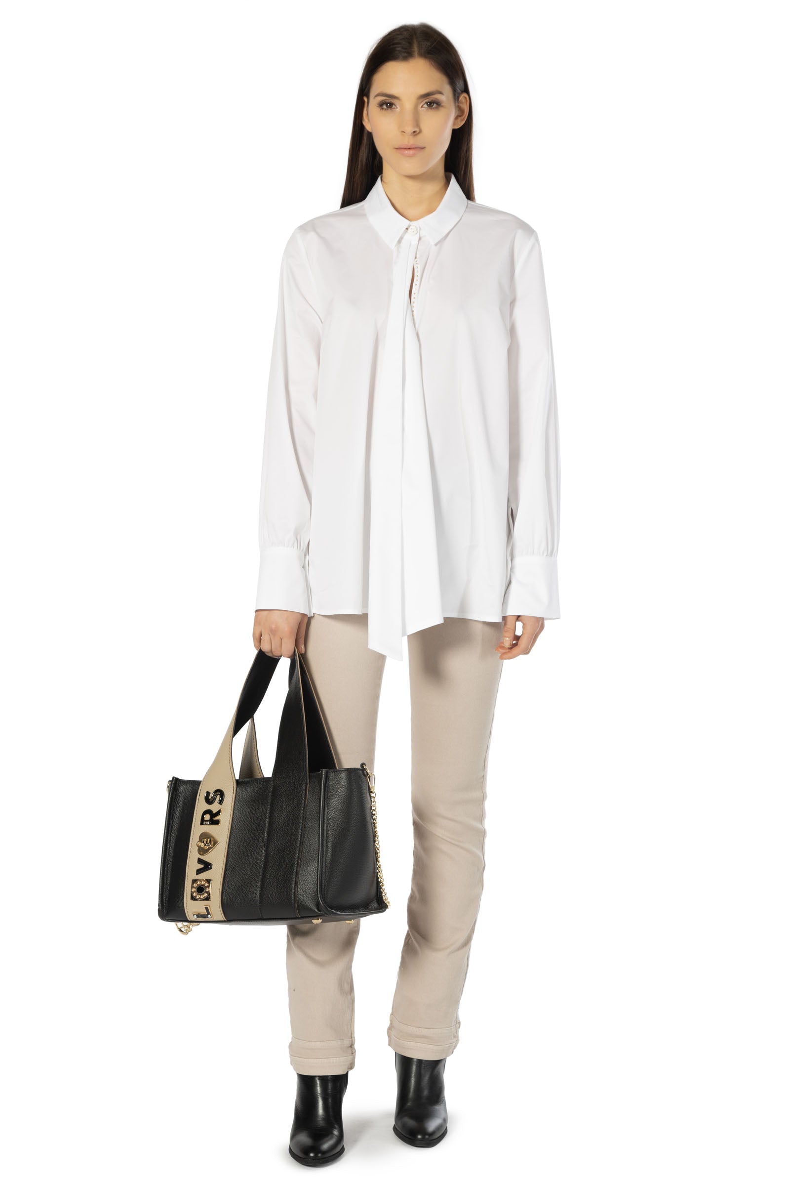 The Incontro blouse is a unique, cream-colored design that accentuates femininity and creates a modern, stylish look. The striking print on the back adds a special charm and brings out the best in your style. A must-have for every fashion-conscious woman!