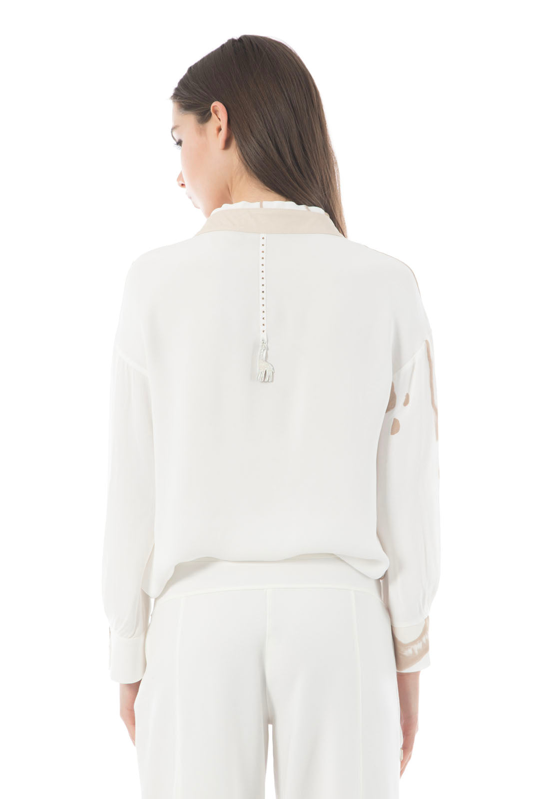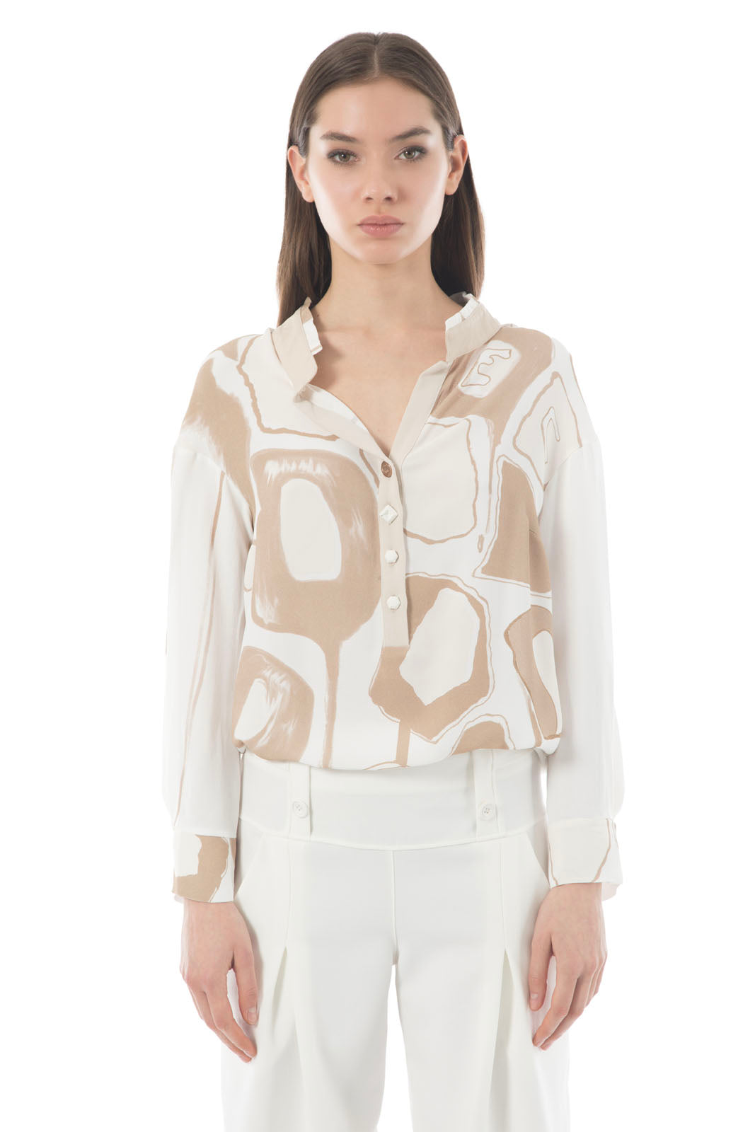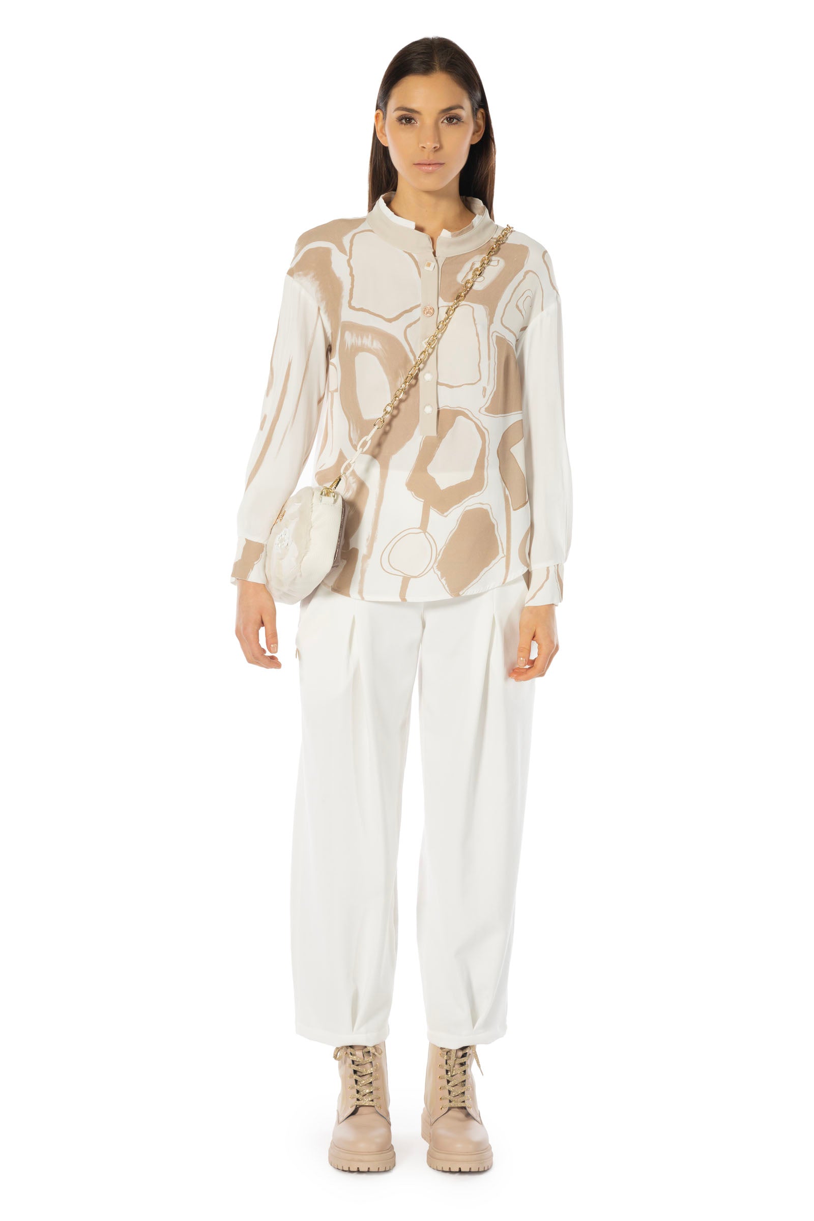 Discover your individual look with the stylish St. Giraffa blouse in white and beige! This intricately patterned blouse is a real eye-catcher and features long sleeves. Create countless outfits with it and show off your passion for fashion and your impeccable style!