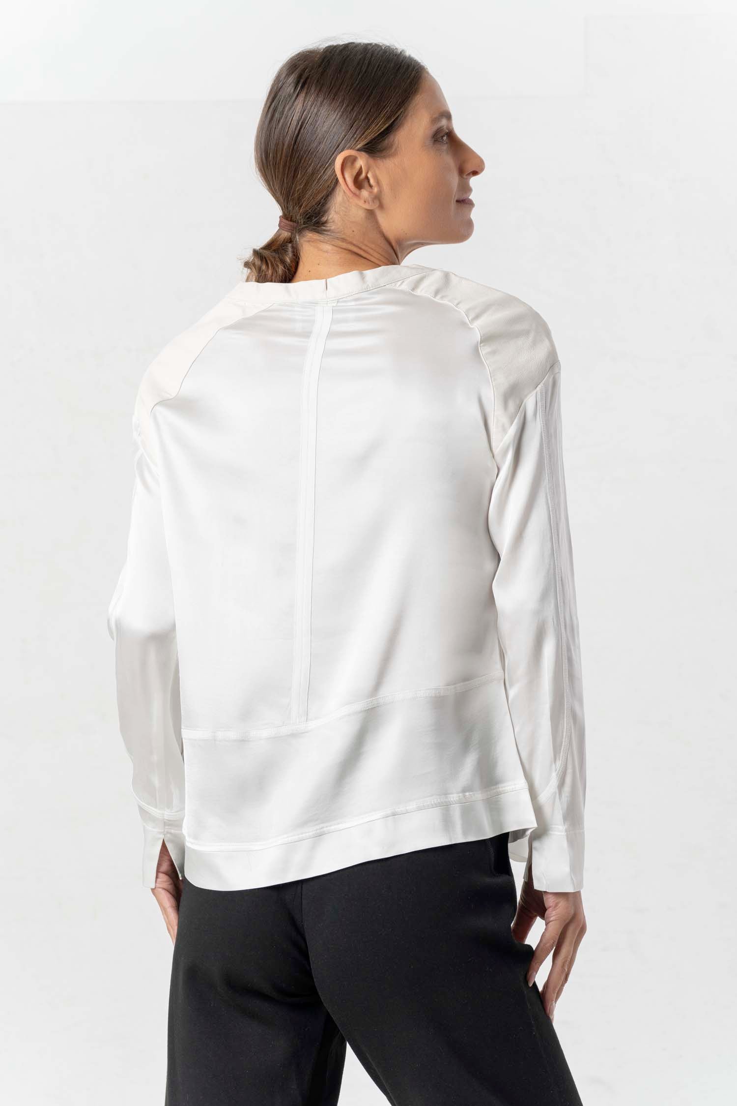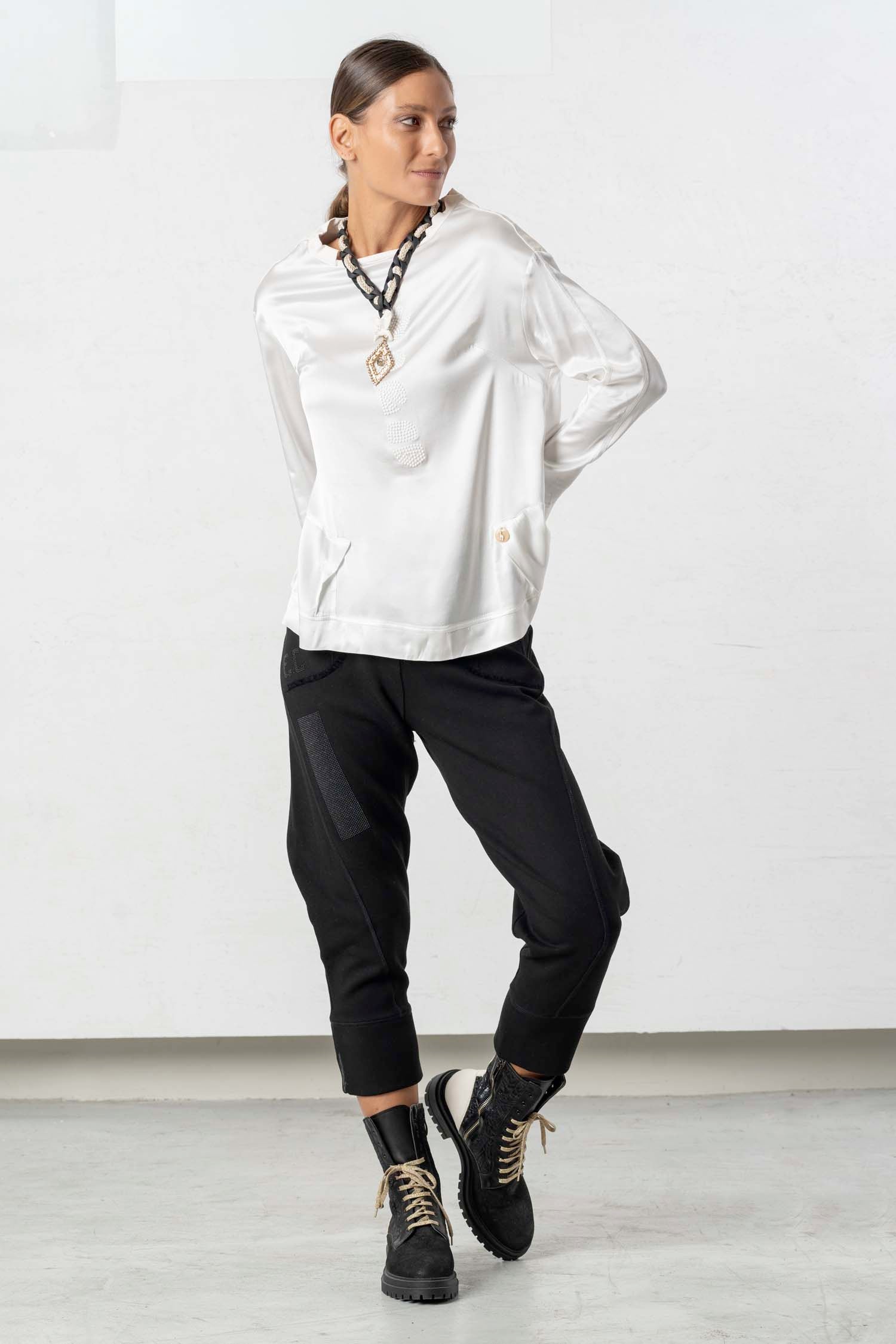 Discover this enchanting blouse with a small stand-up collar and luxurious velvet look! Available in white, beige, and black, it adds an elegant touch to any outfit. Perfect for stylish appearances and incredibly versatile. Get this must-have for your wardrobe now!