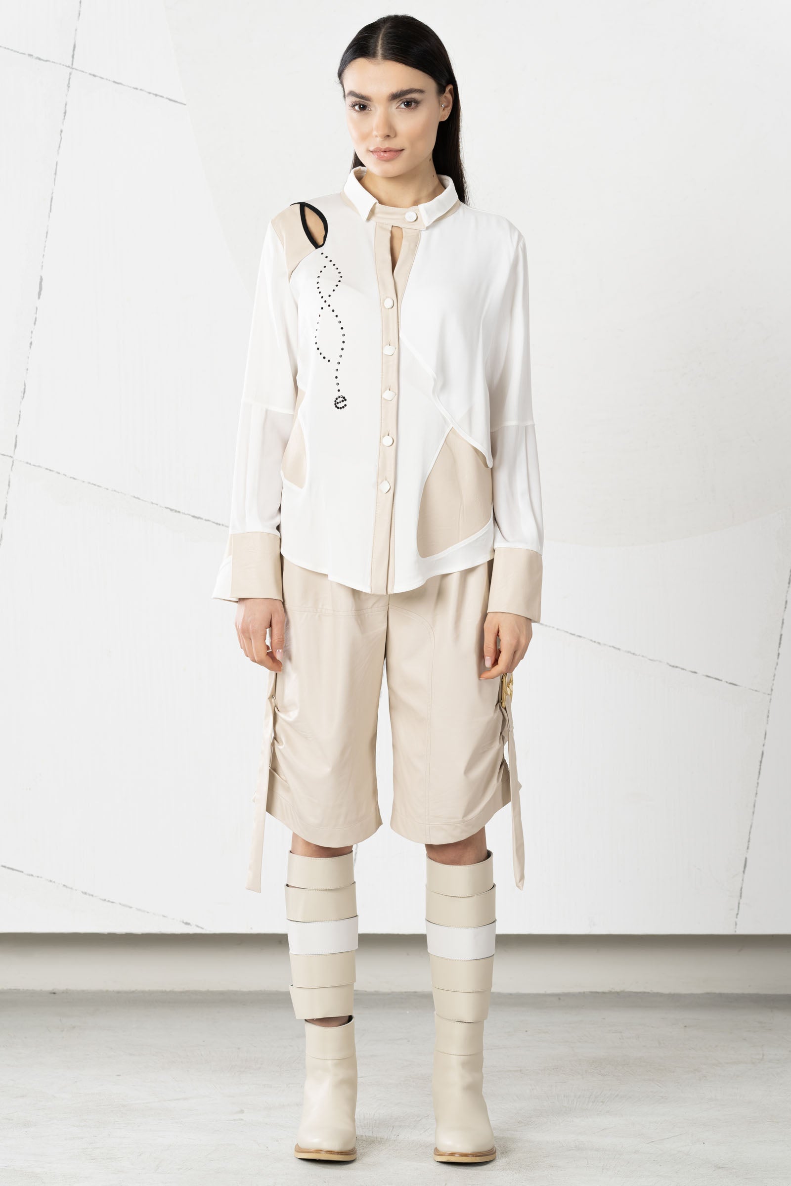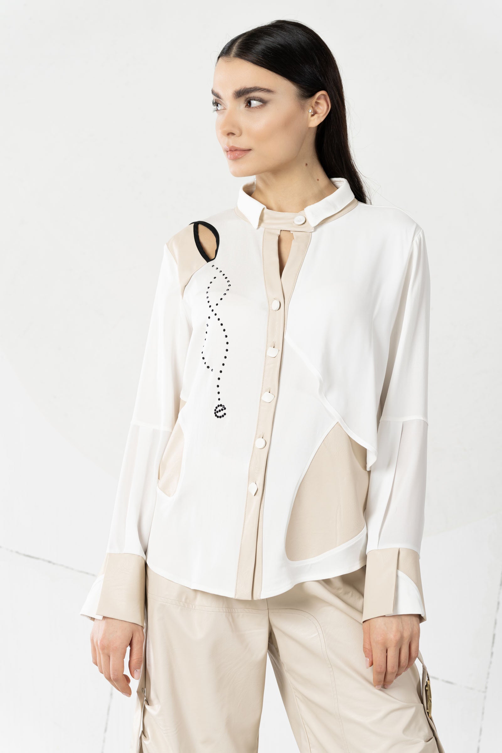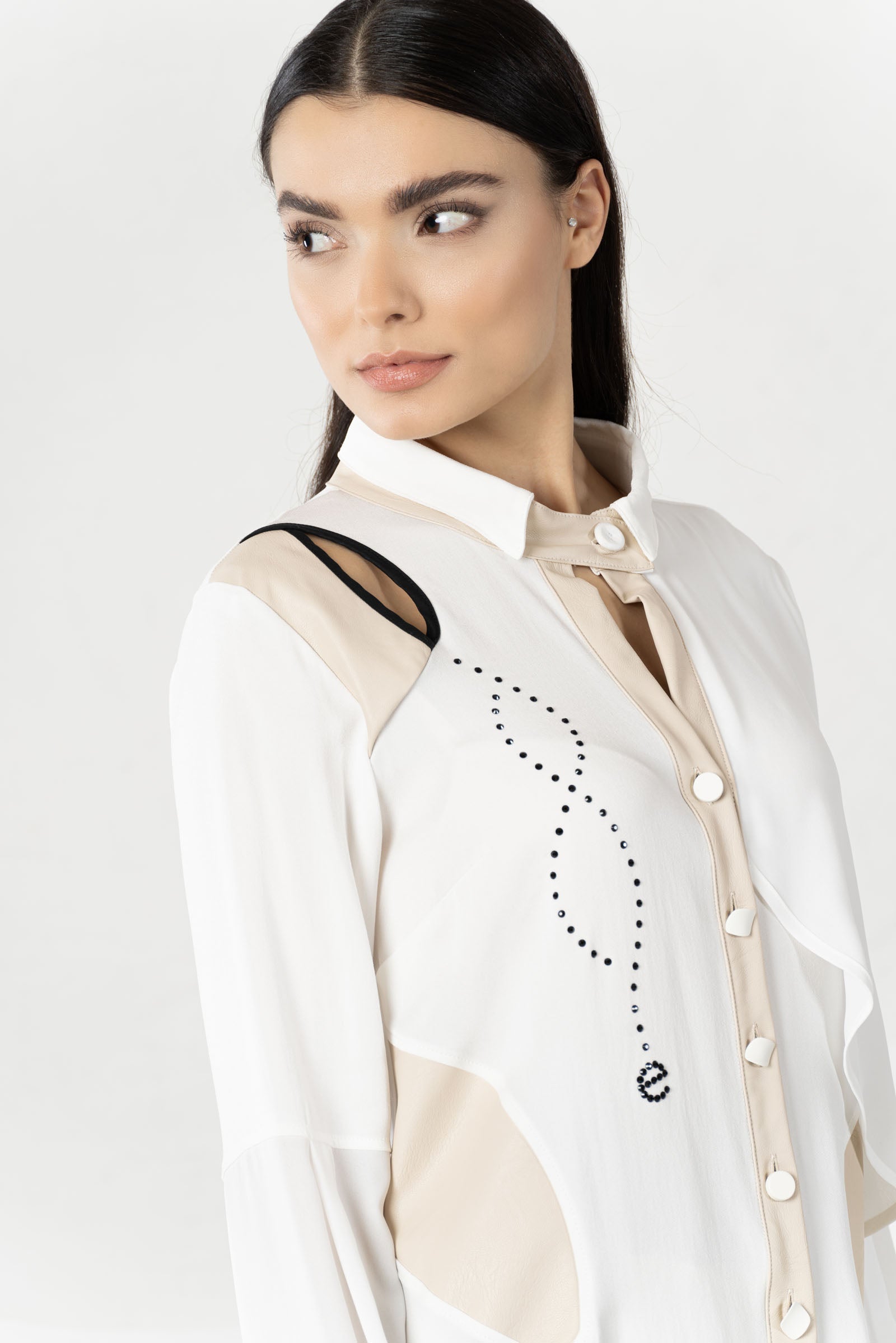 Give your look an extravagant touch with the ELISA CAVALETTI Incontro Raggio blouse in white and beige! The sparkling rhinestones add real glamour and make you shine. A must-have for anyone who wants to stand out from the crowd!