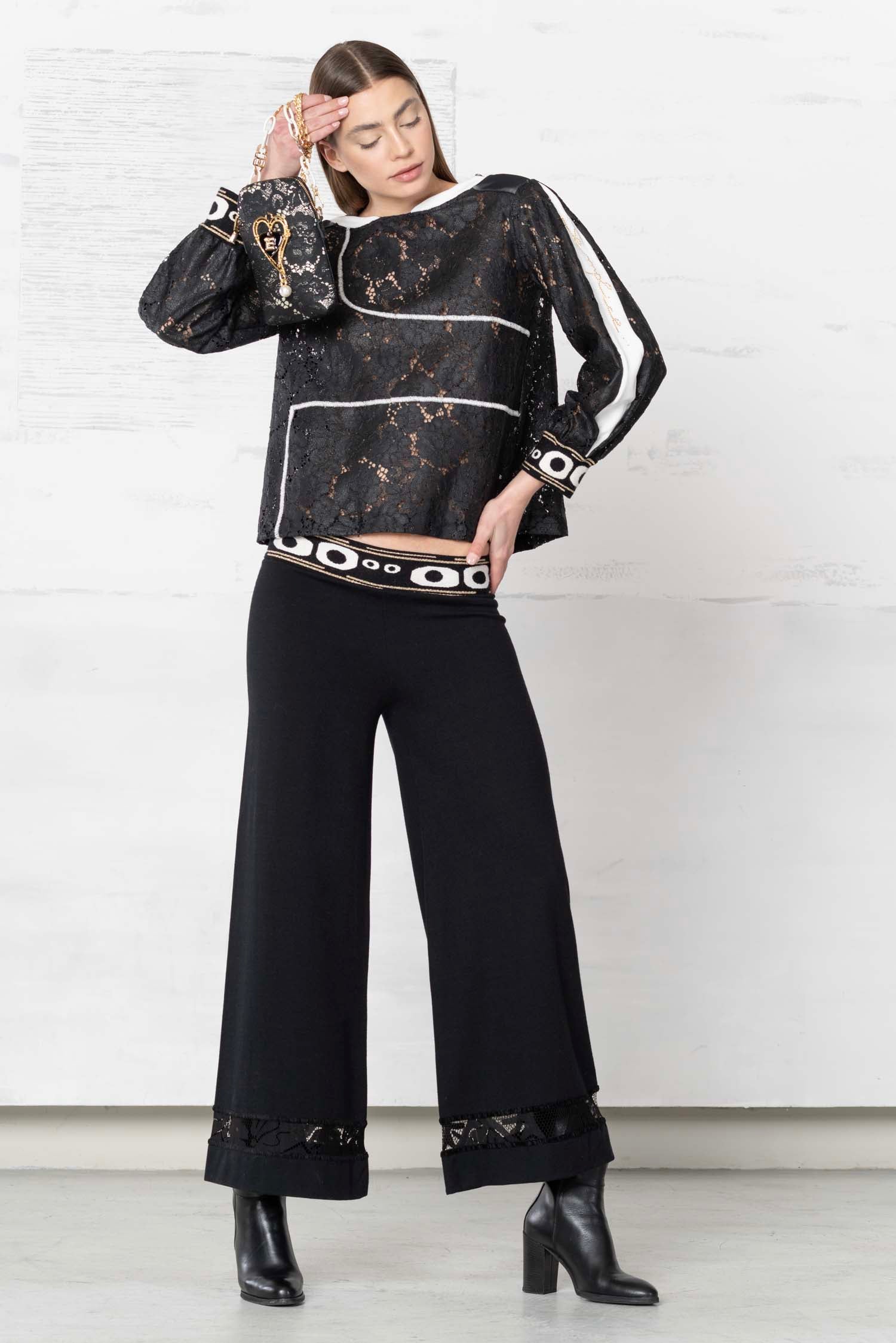 This beautiful ELISA CAVALETTI blouse in elegant black is adorned with delicate lace. The timeless design adds a touch of sophistication to any outfit. The high-quality materials ensure exceptional comfort. Perfect for any occasion, whether festive or everyday wear!