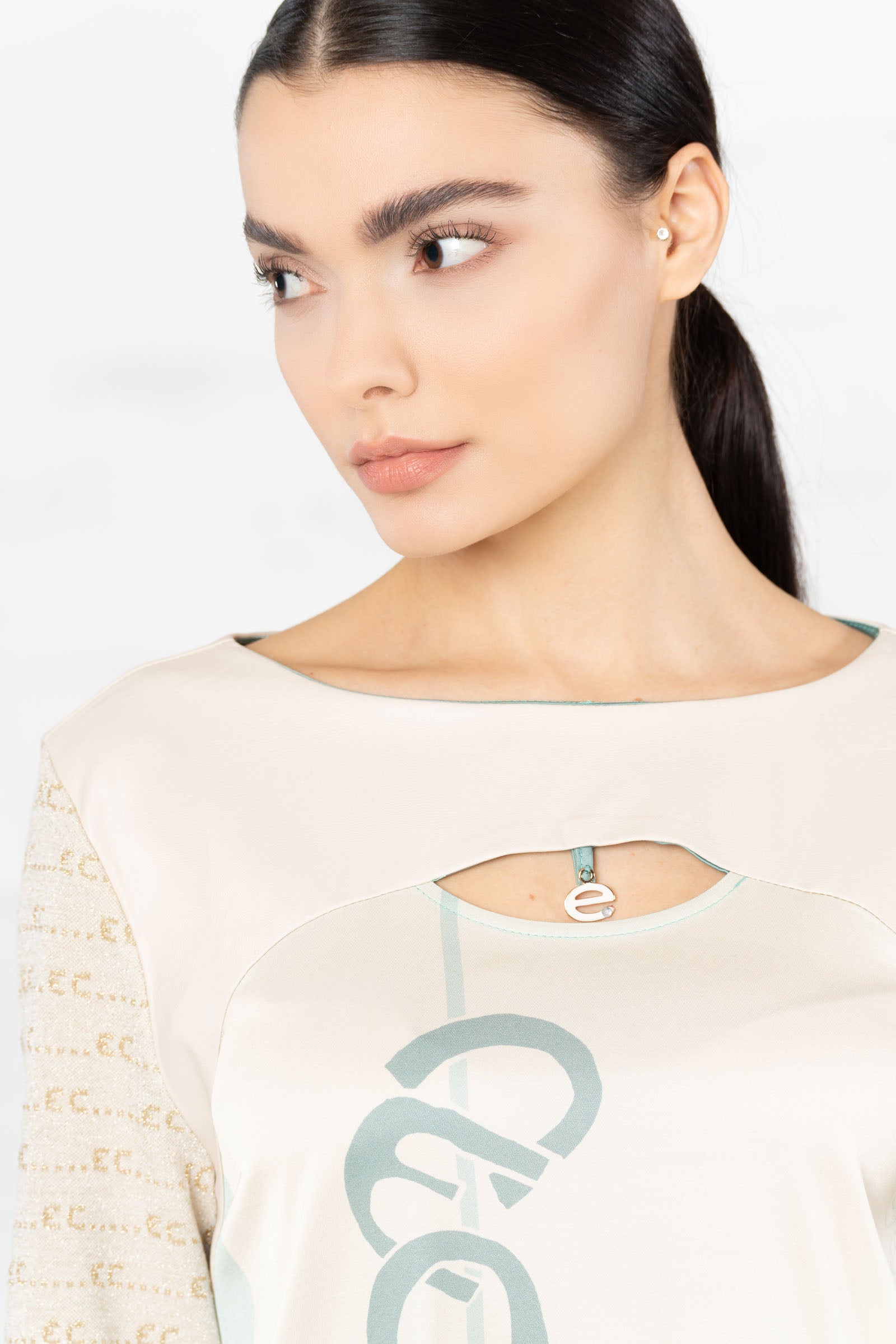 Bring your outfit to life with the ELISA CAVALETTI Quadrifoglio tunic! The stylish beige and turquoise fabric gives you an elegant look. A must-have for anyone looking for a beautiful and unique garment. Secure this highlight now and become a head-turner!
