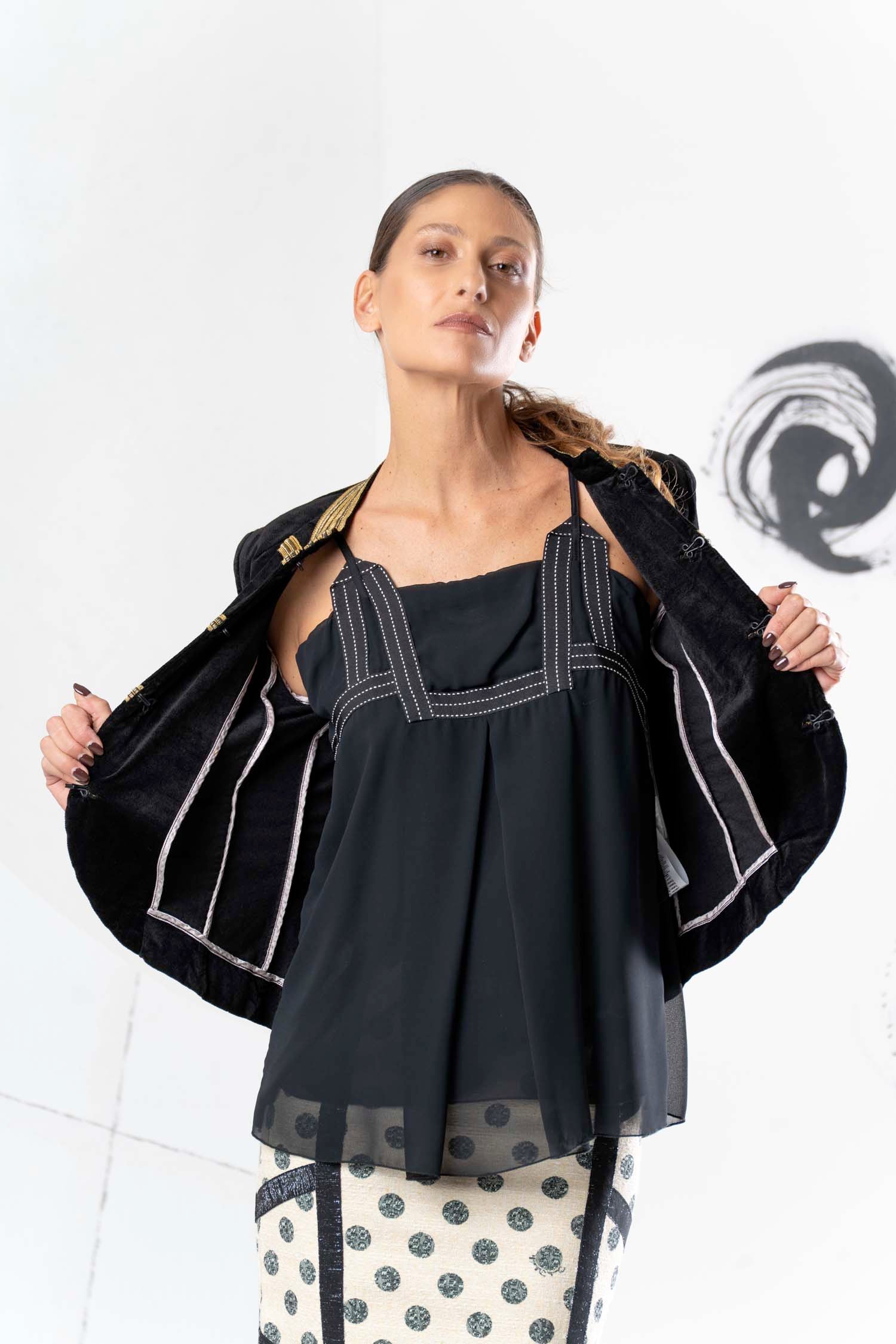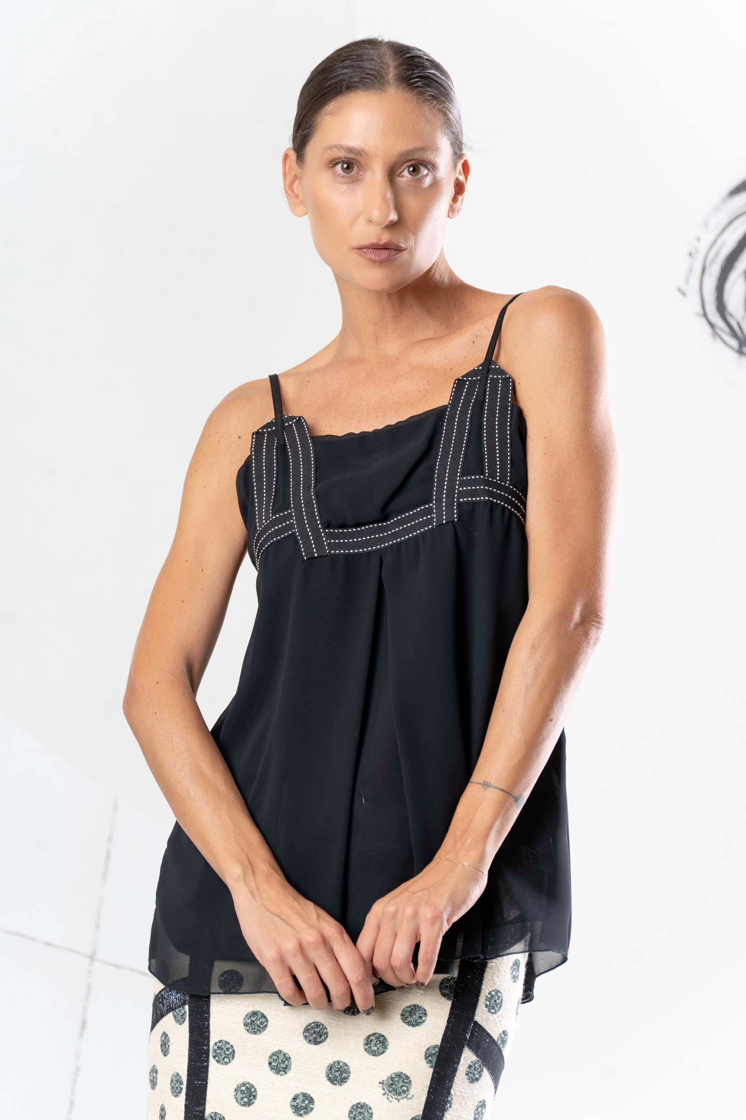 Add a touch of elegance and color to your look with the DANIELA DALLAVALLE camisole in black and yellow. Made from breathable viscose, it offers both comfort and style. Perfect for summer and available in two trendy colors. Show off your fashion sense with this top!