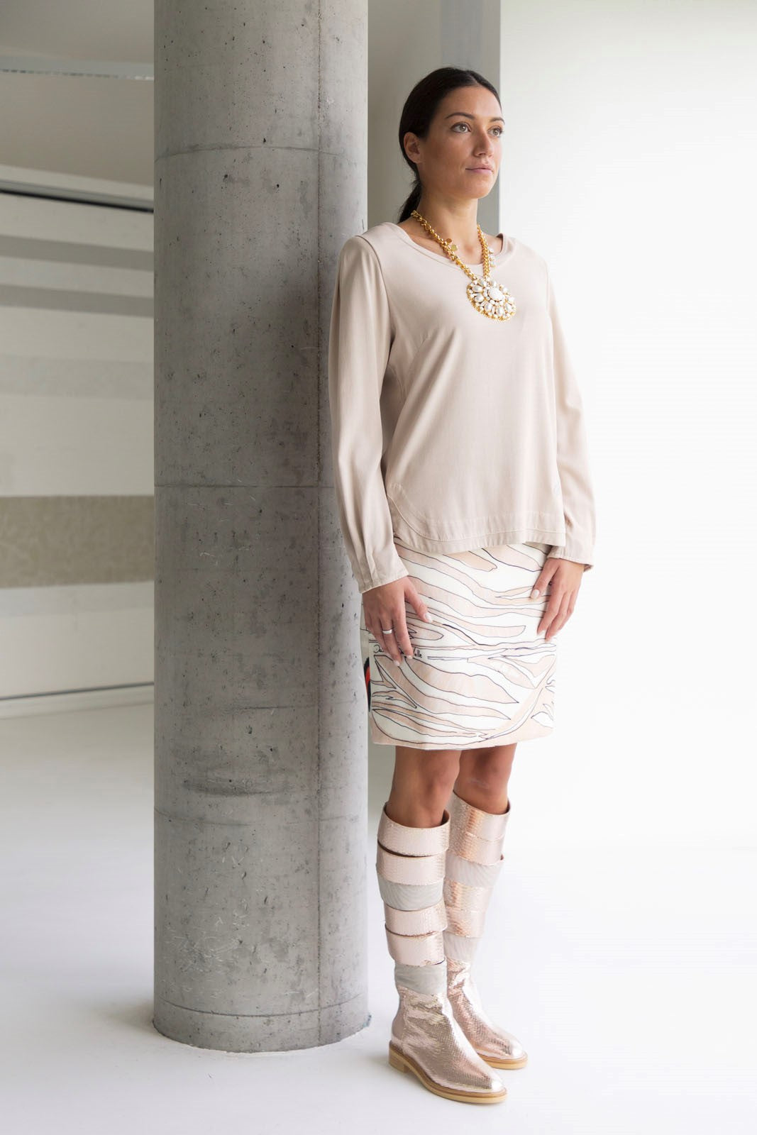 An elegant skirt with a striking zebra print in warm beige – a timeless statement piece for a sophisticated wardrobe. The subtle pattern lends a modern dynamism to the classic cut and can be combined in a variety of ways. High-quality workmanship guarantees lasting comfort and will remain a reliable favorite for style-conscious women season after season.