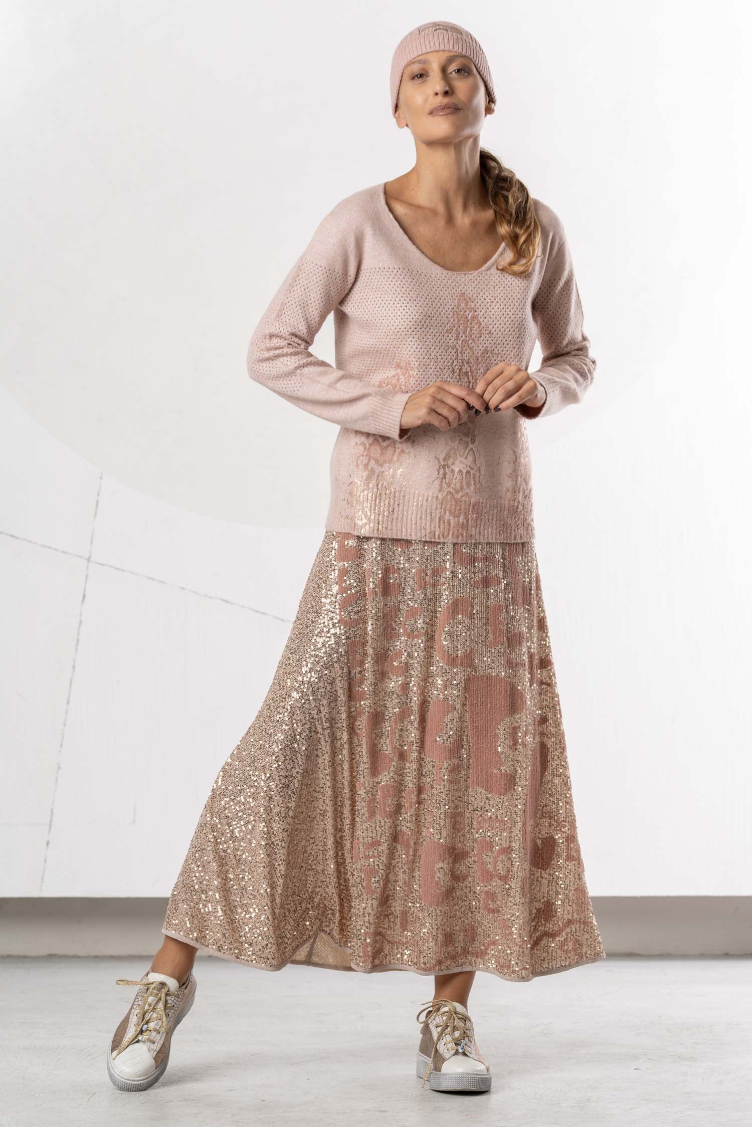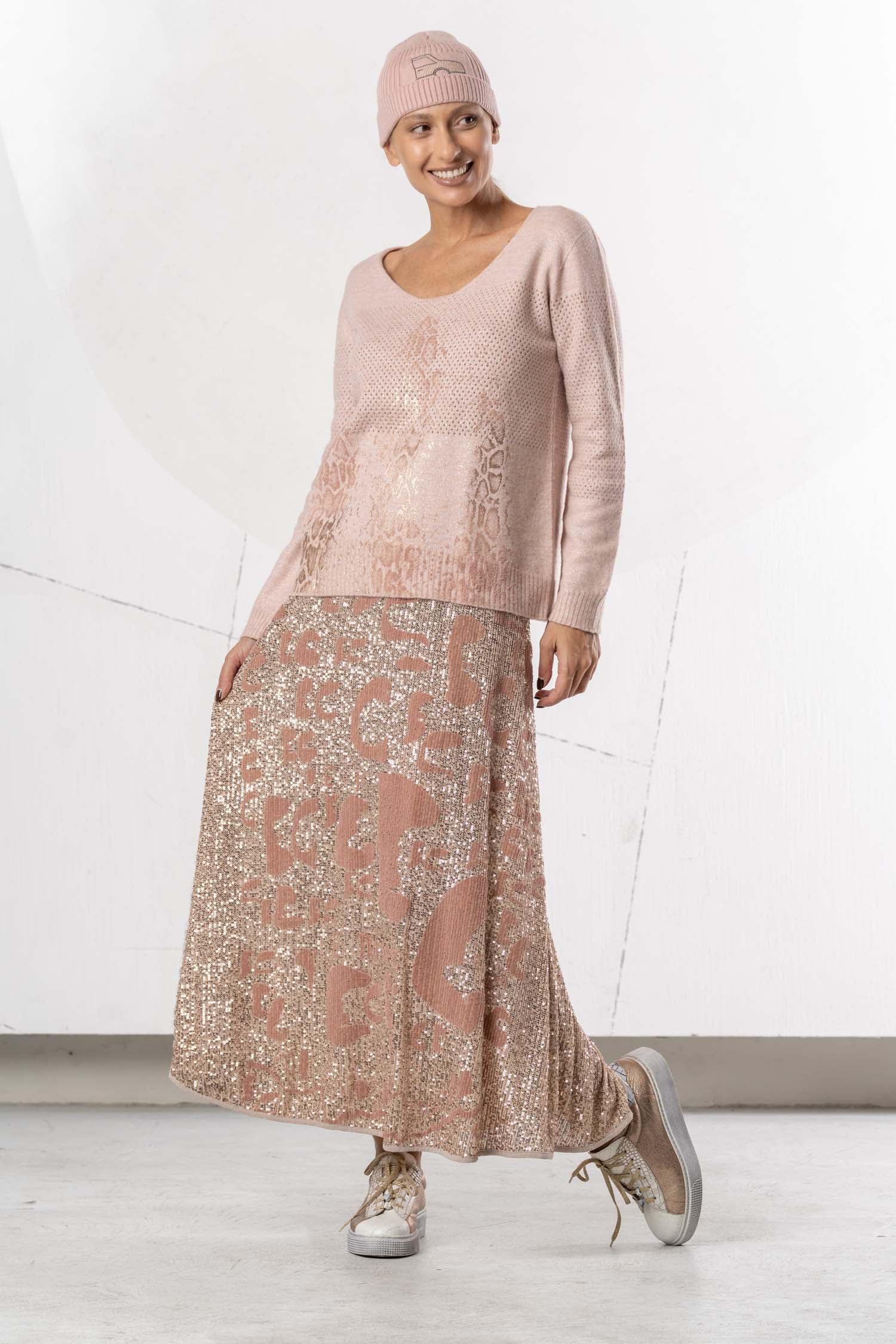 Treat yourself to our stylish, long glitter skirt Carezze by ELISA CAVALETTI! The beautiful sequins give the pink skirt a touch of glamour and will make you shine on every occasion. A true must-have for every fashion-conscious woman!
