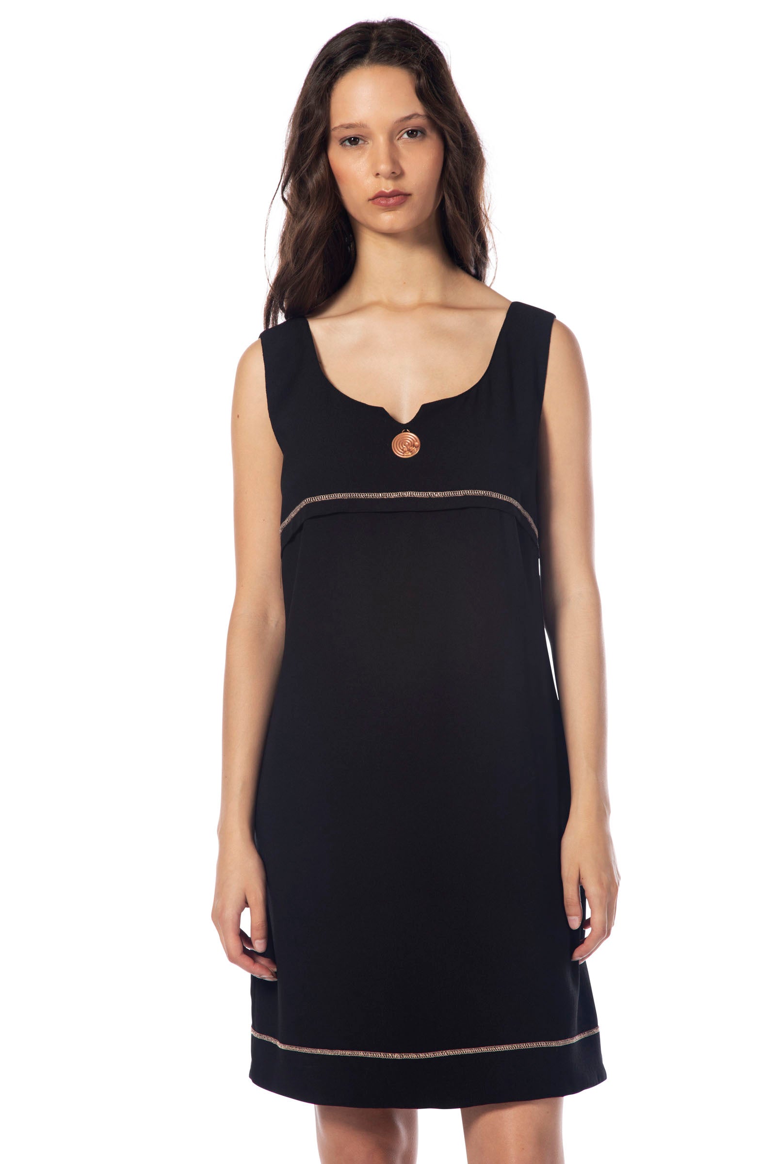 Enchant in this beautiful, sleeveless, black dress from ELISA CAVALETTI. This knee-length dress is not only visually stunning but also comfortable and versatile. A must-have for every woman who wants to look stylish and elegant!
