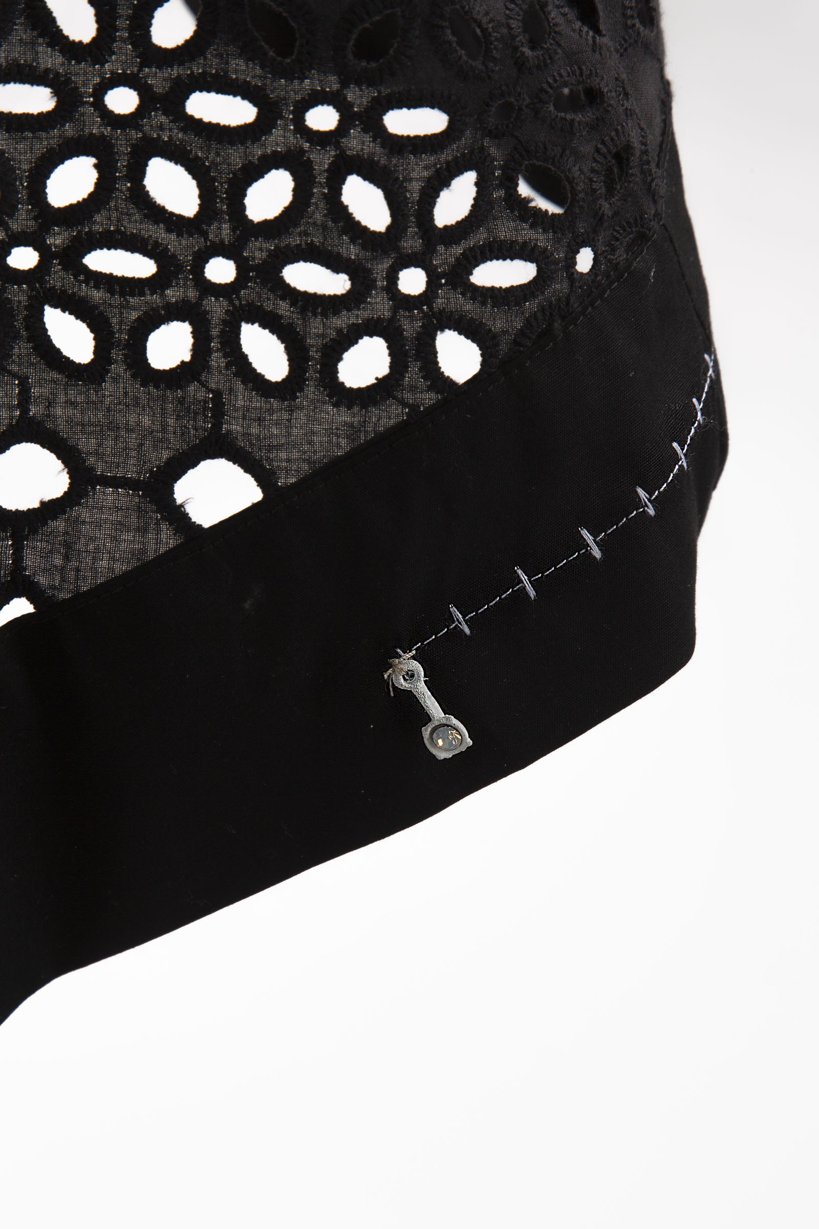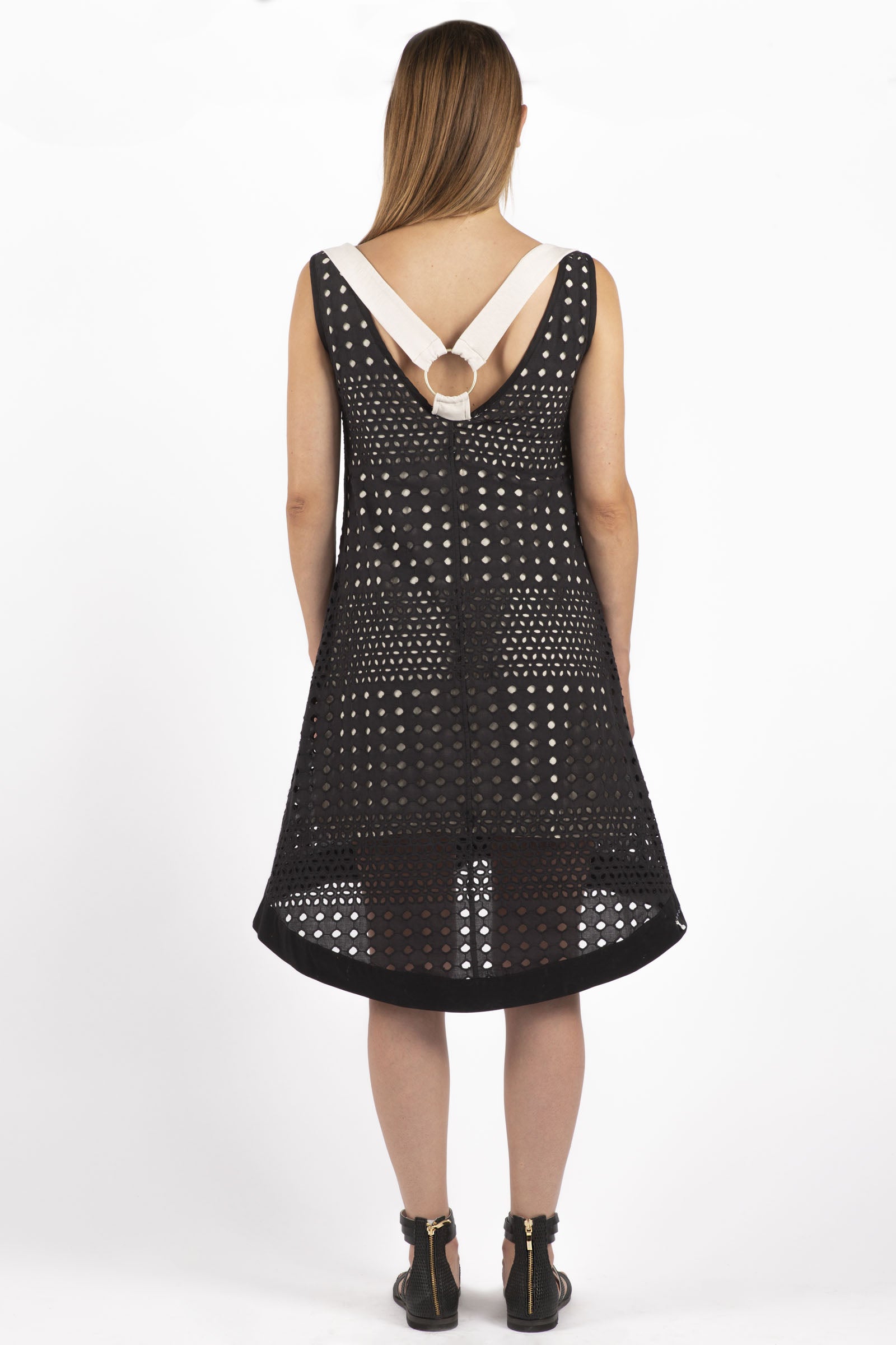 This asymmetrical knit dress in elegant black features a delicate openwork pattern for a sophisticated look. The cut creates a flattering silhouette, making it a versatile piece for creating stylish and contemporary looks. Perfect for a confident and modern style.