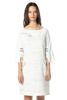 Experience pure elegance with the ELISA CAVALETTI St. Ambra dress! This white dress with a beige pattern gives you a sophisticated look. Perfect for special occasions or simply for enjoying every day in style. Let its beauty enchant you!