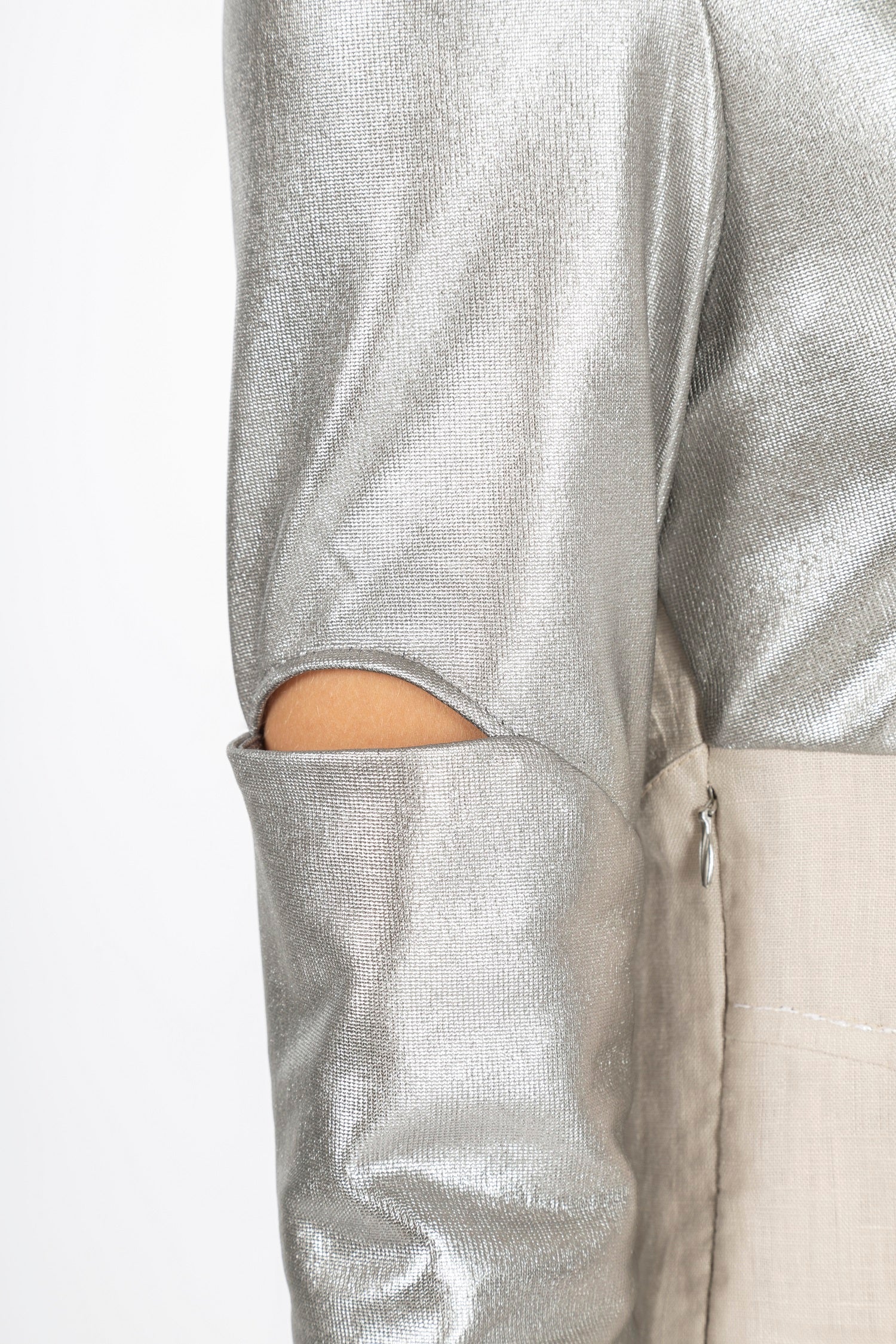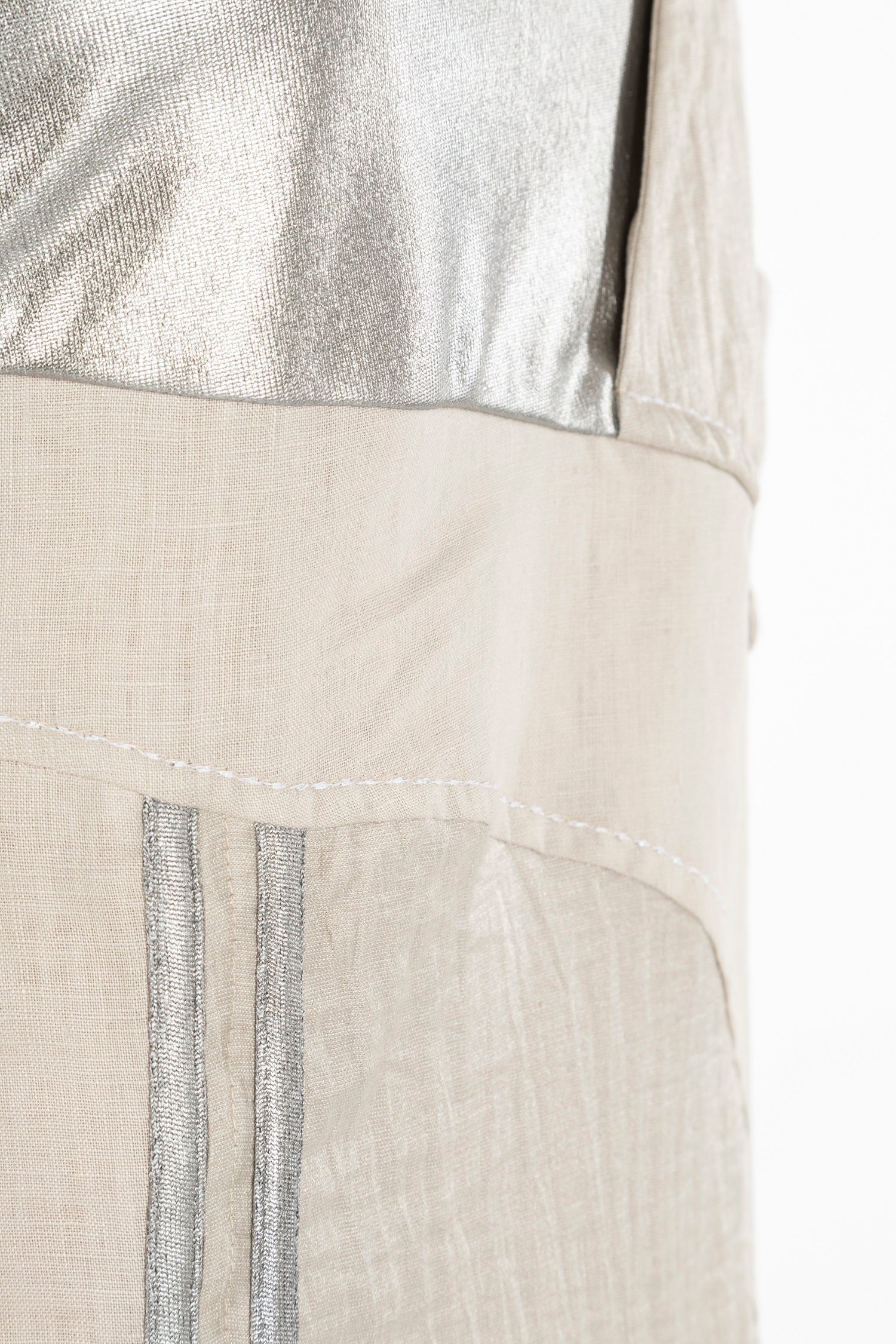 The ELISA CAVALETTI Svago long dress impresses with its stylish cut, featuring three-quarter sleeves and an elegant color combination of beige and silver. This dress combines timeless elegance with modern accents and is ideal for special occasions where you want to make a subtle yet striking impression. The high-quality workmanship guarantees comfortable wear and a perfect fit.