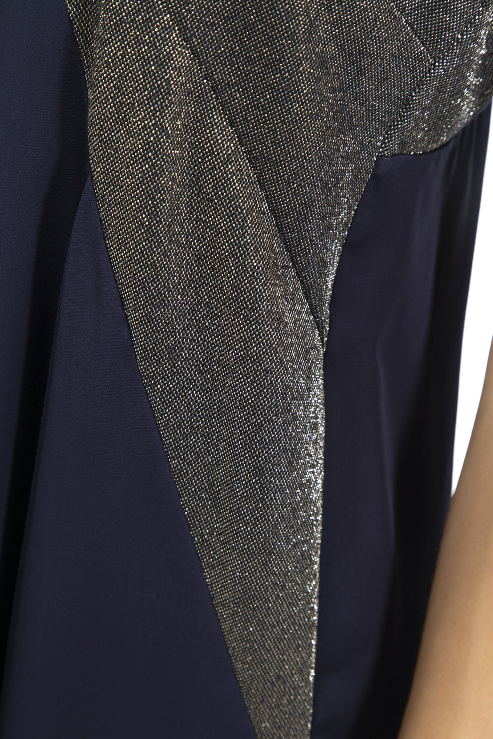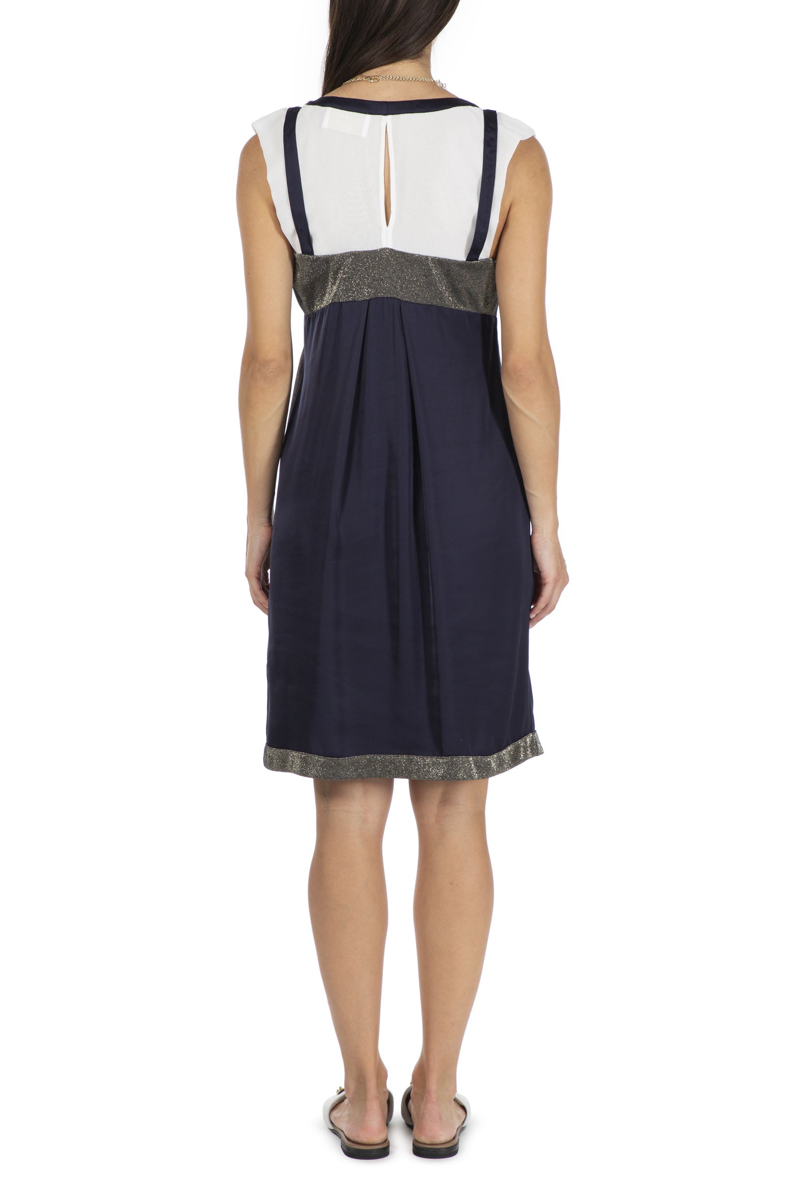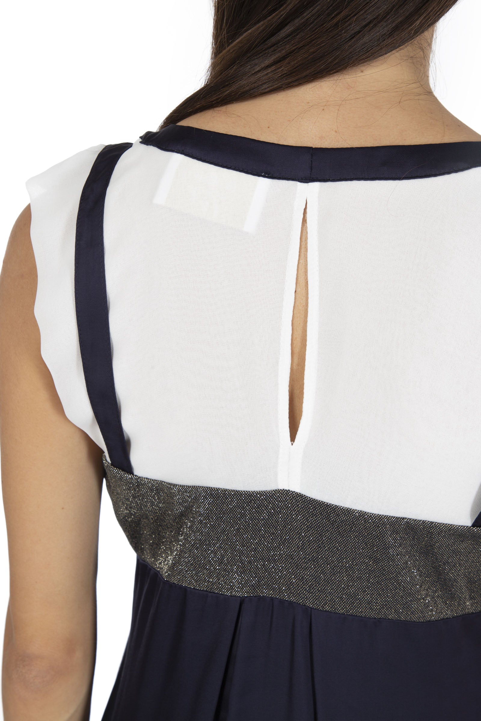 This beautiful summer dress impresses with its elegant color combination of dark blue, gold, and white. The wide straps ensure optimal comfort and a secure fit, while the design accentuates a stylish silhouette. Ideal for warm days, the dress combines lightness with a sophisticated look.