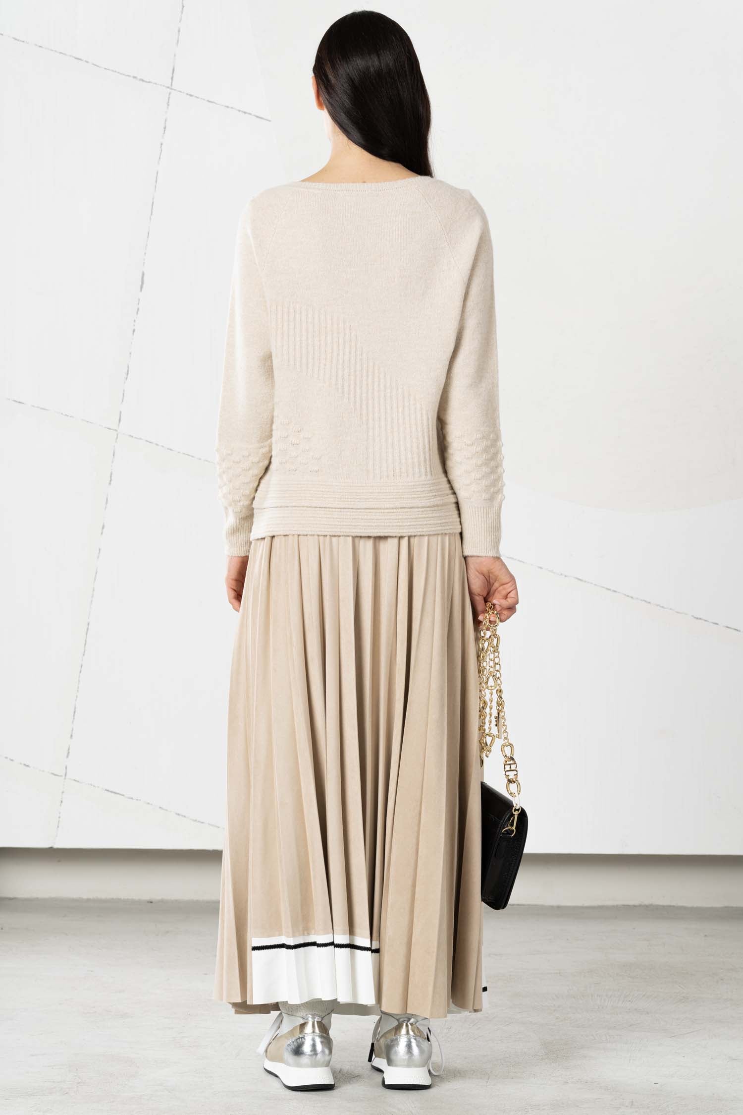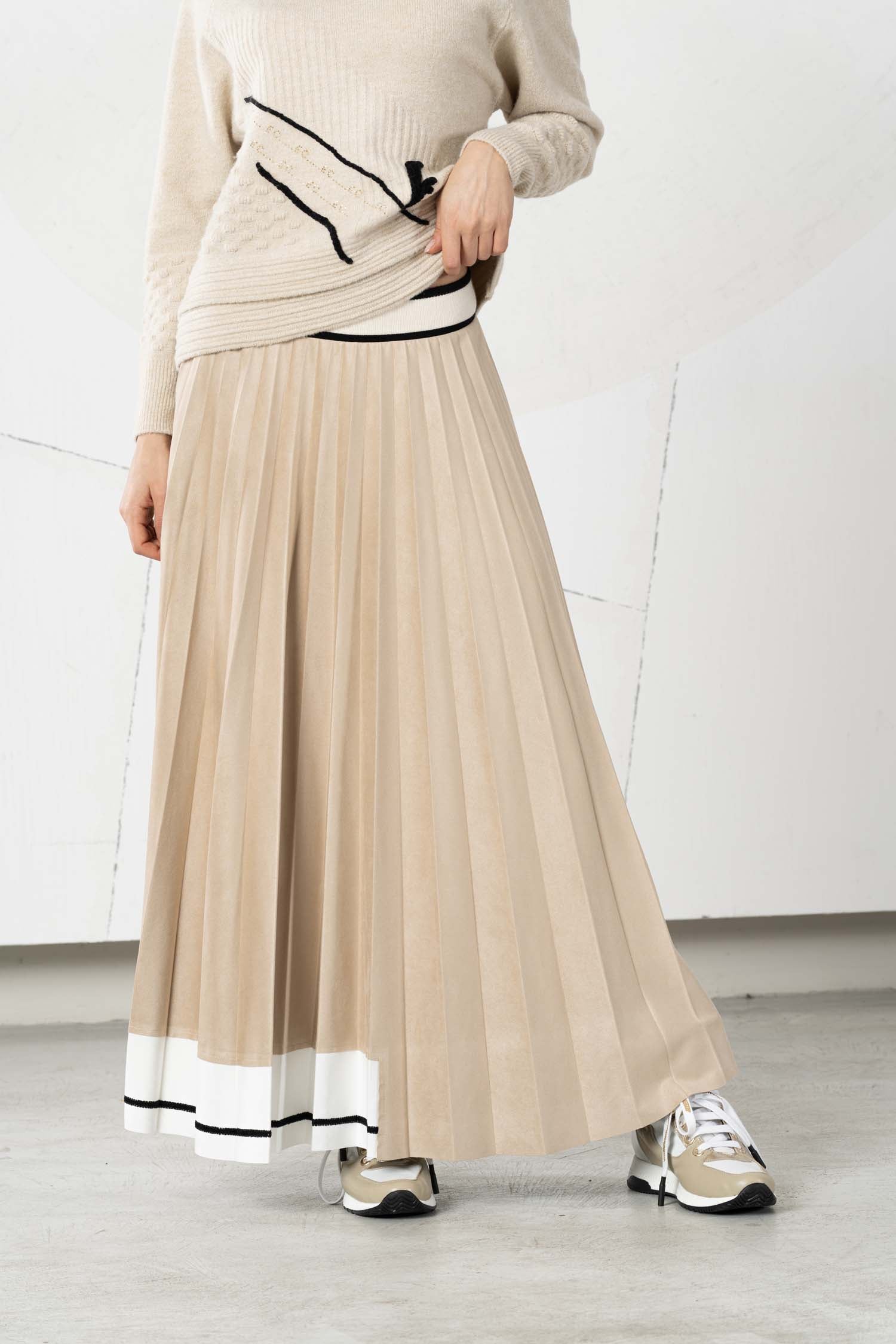 Enjoy the warm days to the fullest in this beige, long pleated skirt from ELISA CAVALETTI! This elegant skirt not only offers exceptional comfort but also creates a beautiful silhouette. Perfect for summer and any occasion. Get your new favorite skirt now!