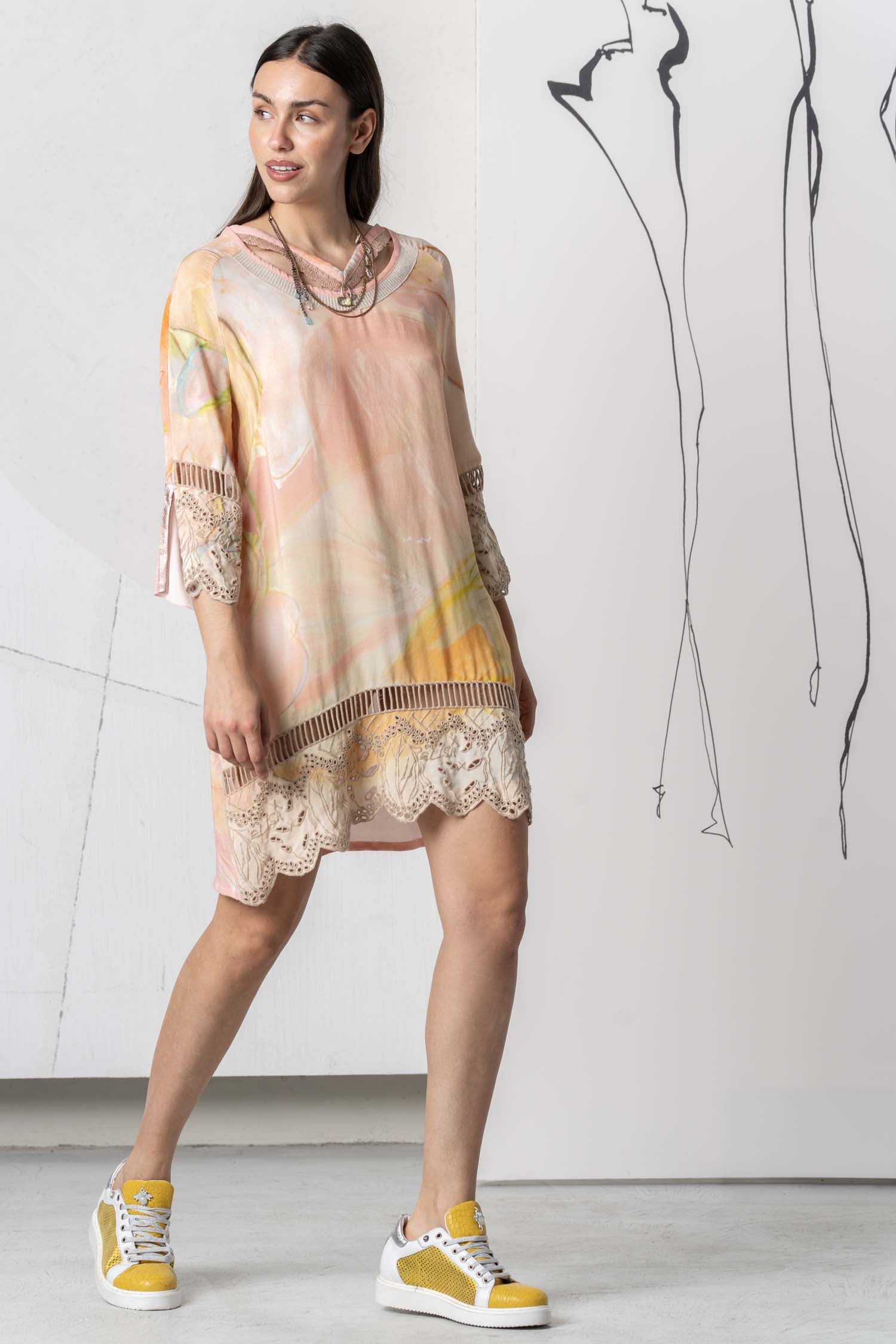 Experience summer with the ELISA CAVALETTI St. Immaginario tunic! With vibrant, bright colors and delicate lace, this tunic is perfect for sunny days. Enjoy the summery look while feeling elegant and stylish. A must-have for every fashion-conscious woman!