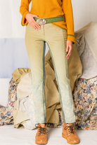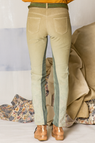 Stylish trousers in beautiful green tones and bright floral patterns.