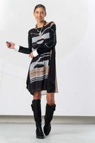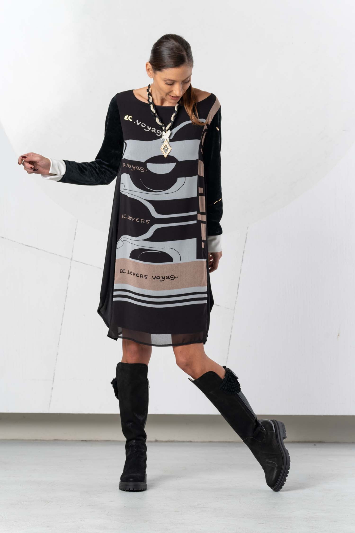 Discover the stylish ELISA CAVALETTI St. Voyager dress in black. With its extraordinary patterns reminiscent of a journey to an exotic location, it exudes a particularly romantic atmosphere. A perfect companion for your adventures.