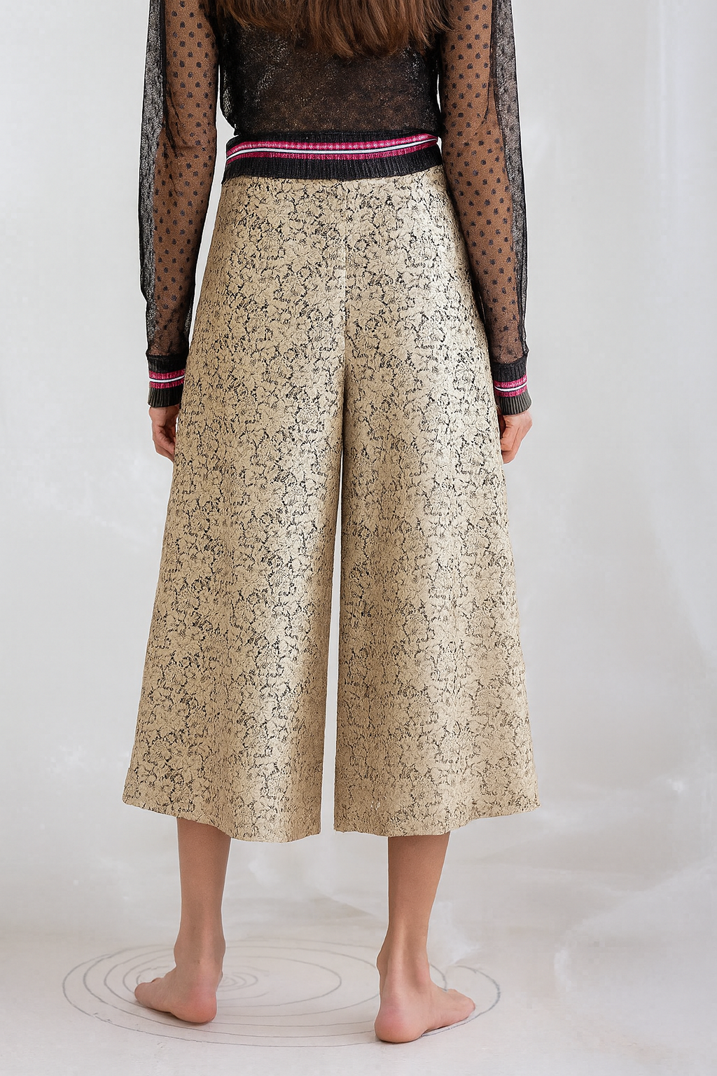 Beautiful calf-high gold lace pants.
