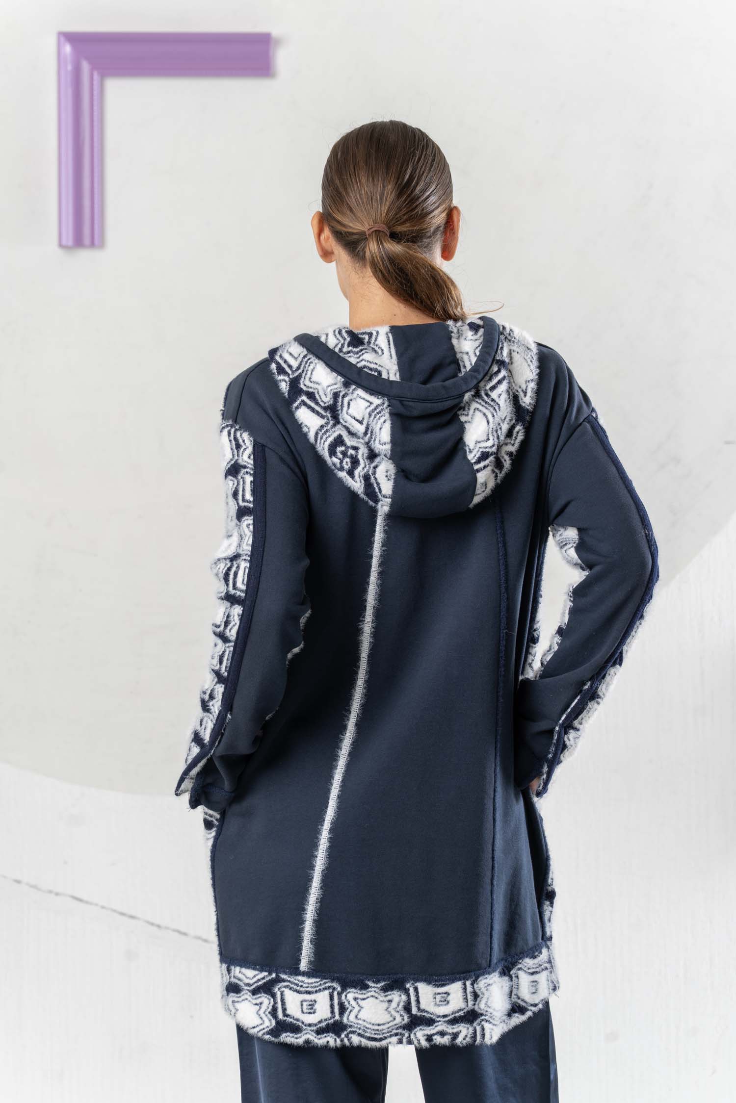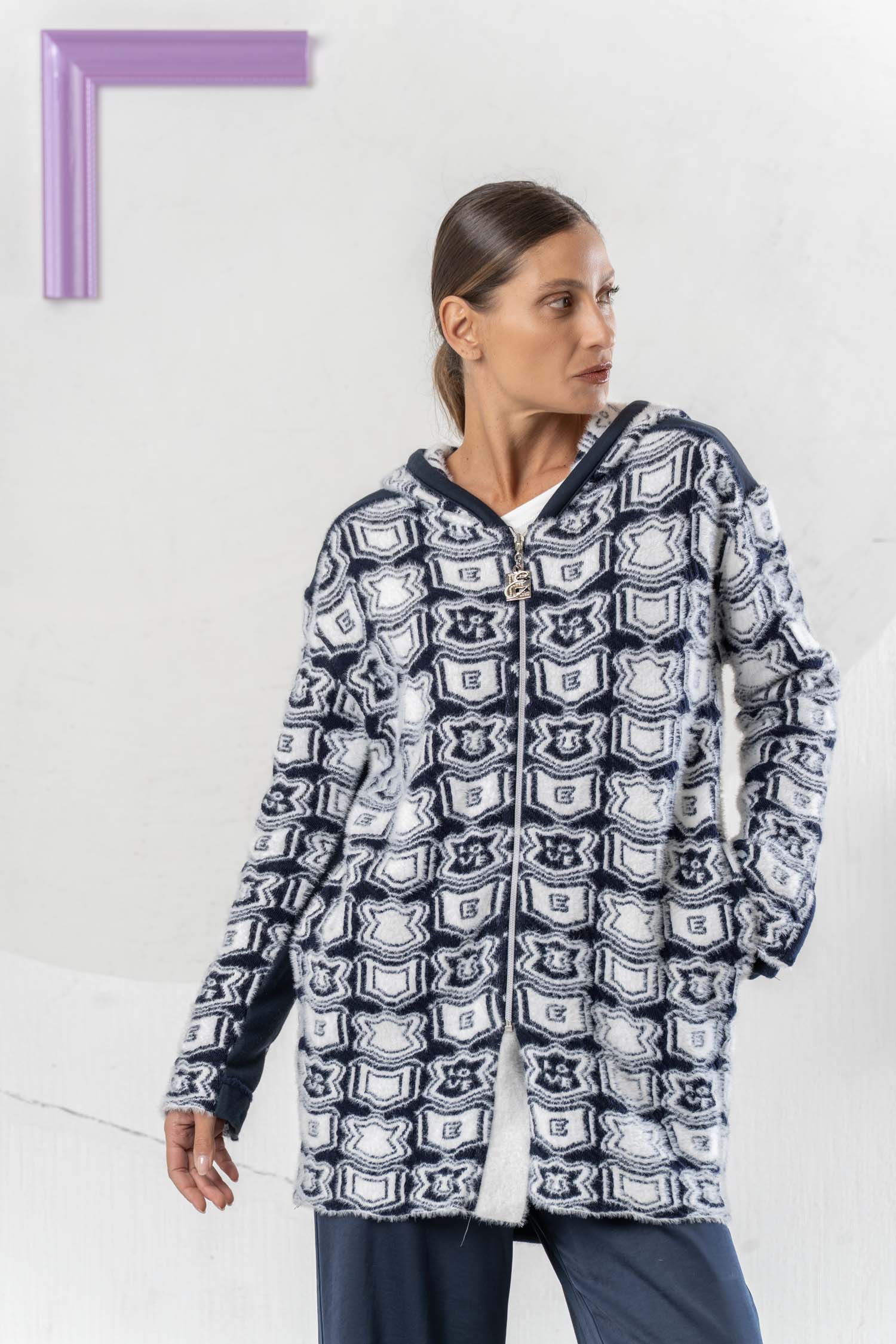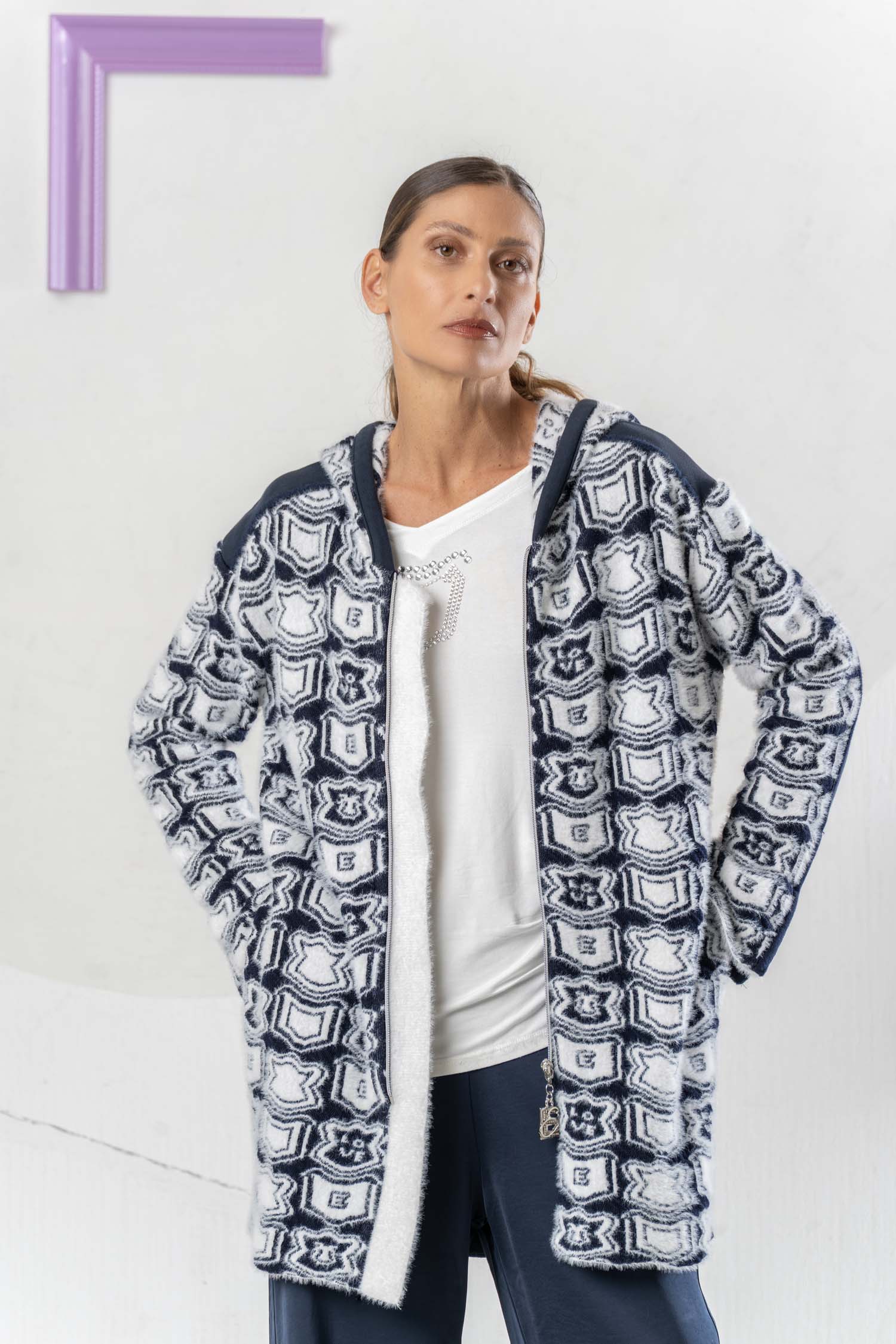 The ELISA CAVALETTI Stemmi Donna cardigan is not only stylish but also incredibly cozy and perfect for chilly days. In classic blue and white, it adds a touch of sophistication to any outfit. Its practical hood keeps you well protected even in the rain. Get your new favorite piece now!