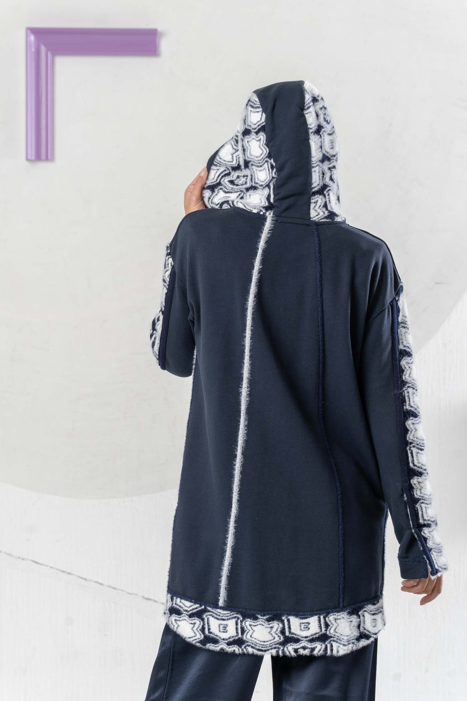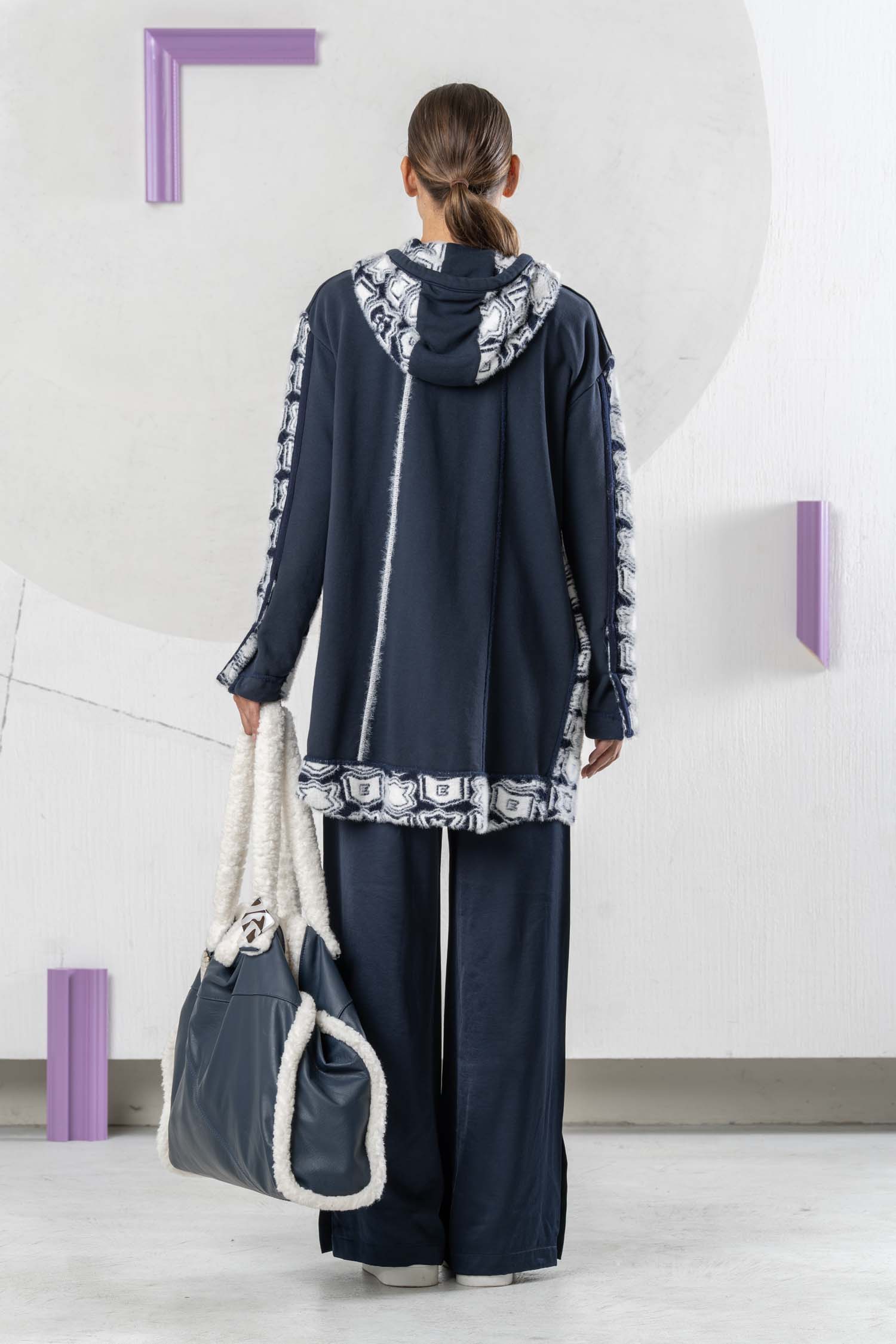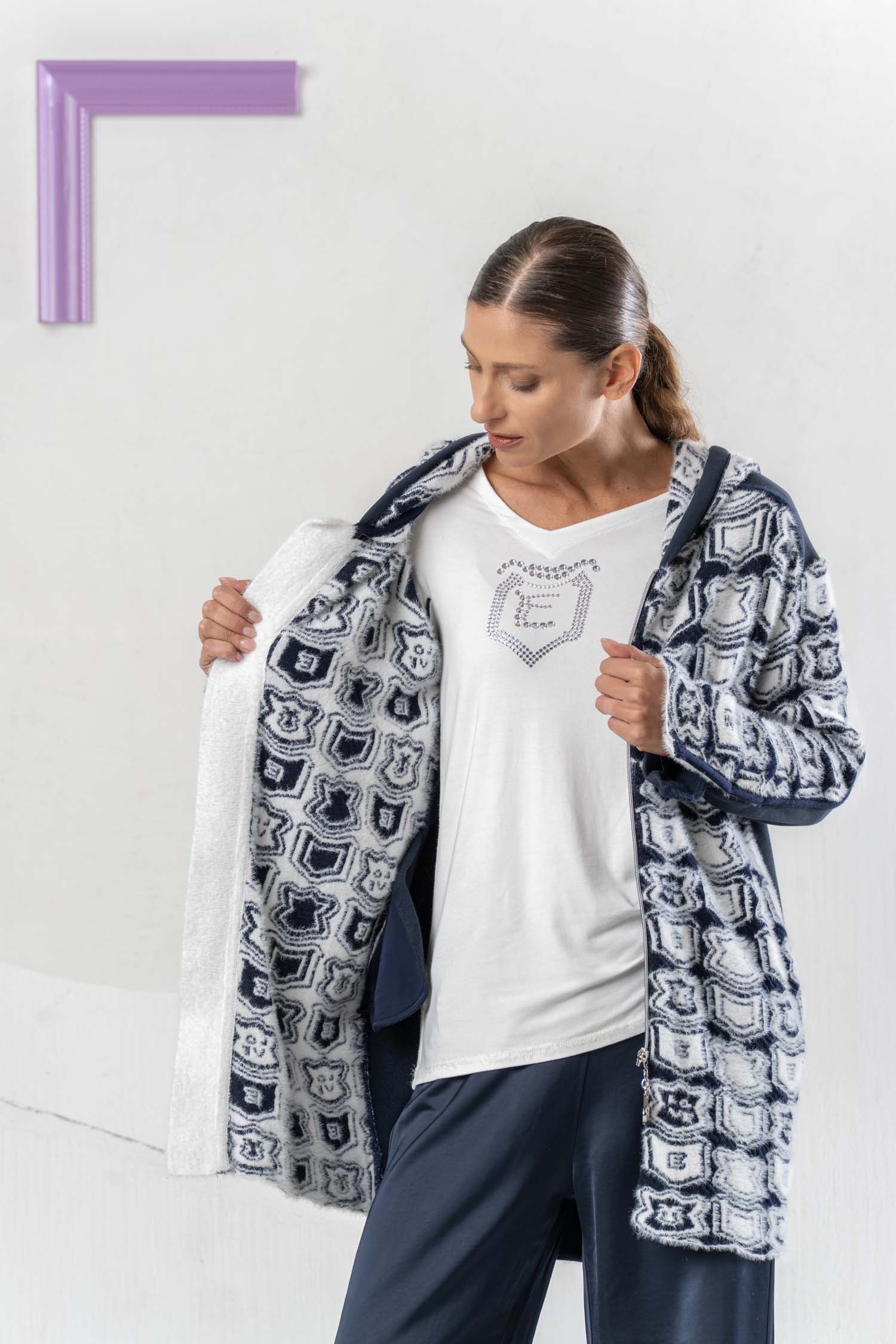 The ELISA CAVALETTI Stemmi Donna cardigan is not only stylish but also incredibly cozy and perfect for chilly days. In classic blue and white, it adds a touch of sophistication to any outfit. Its practical hood keeps you well protected even in the rain. Get your new favorite piece now!