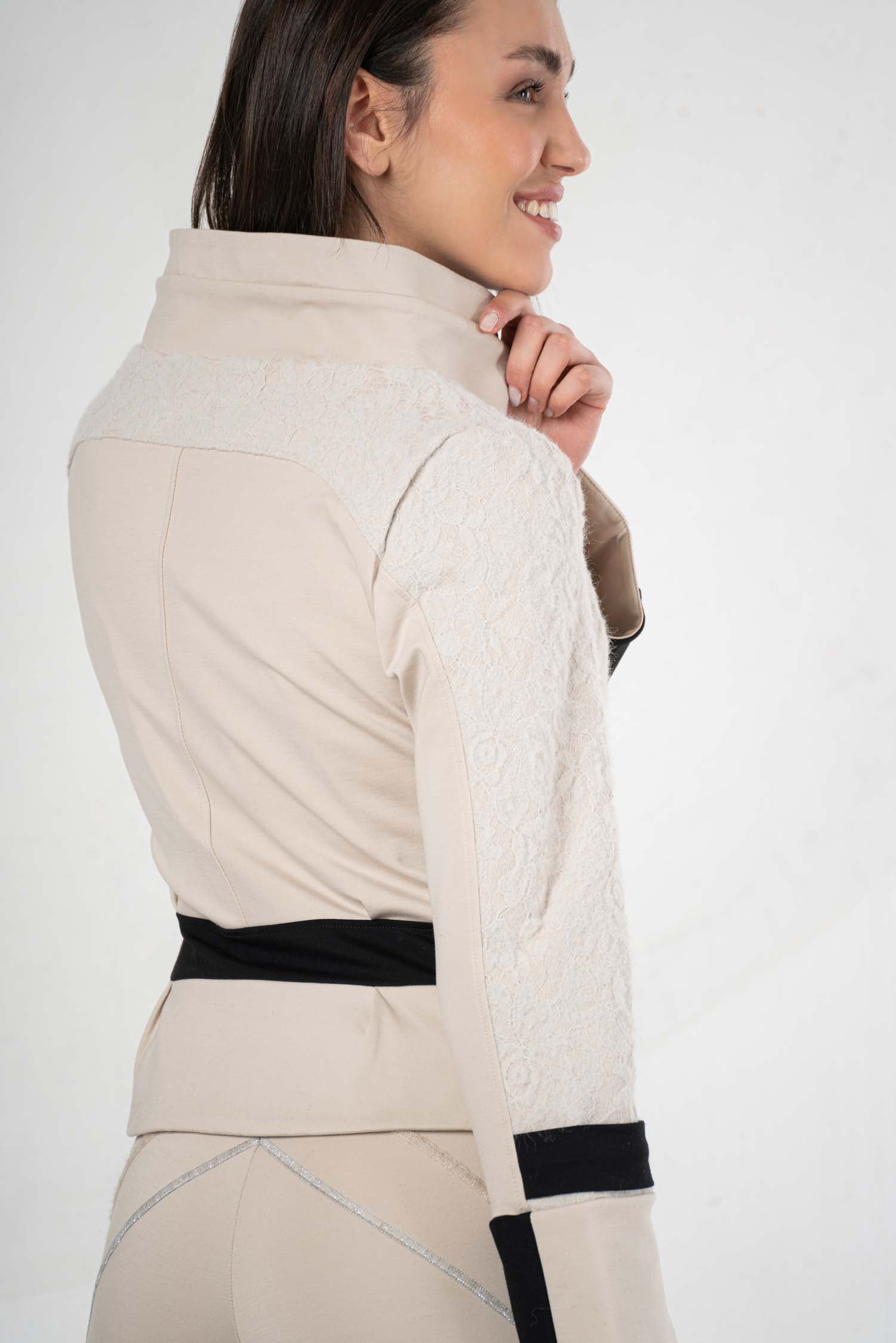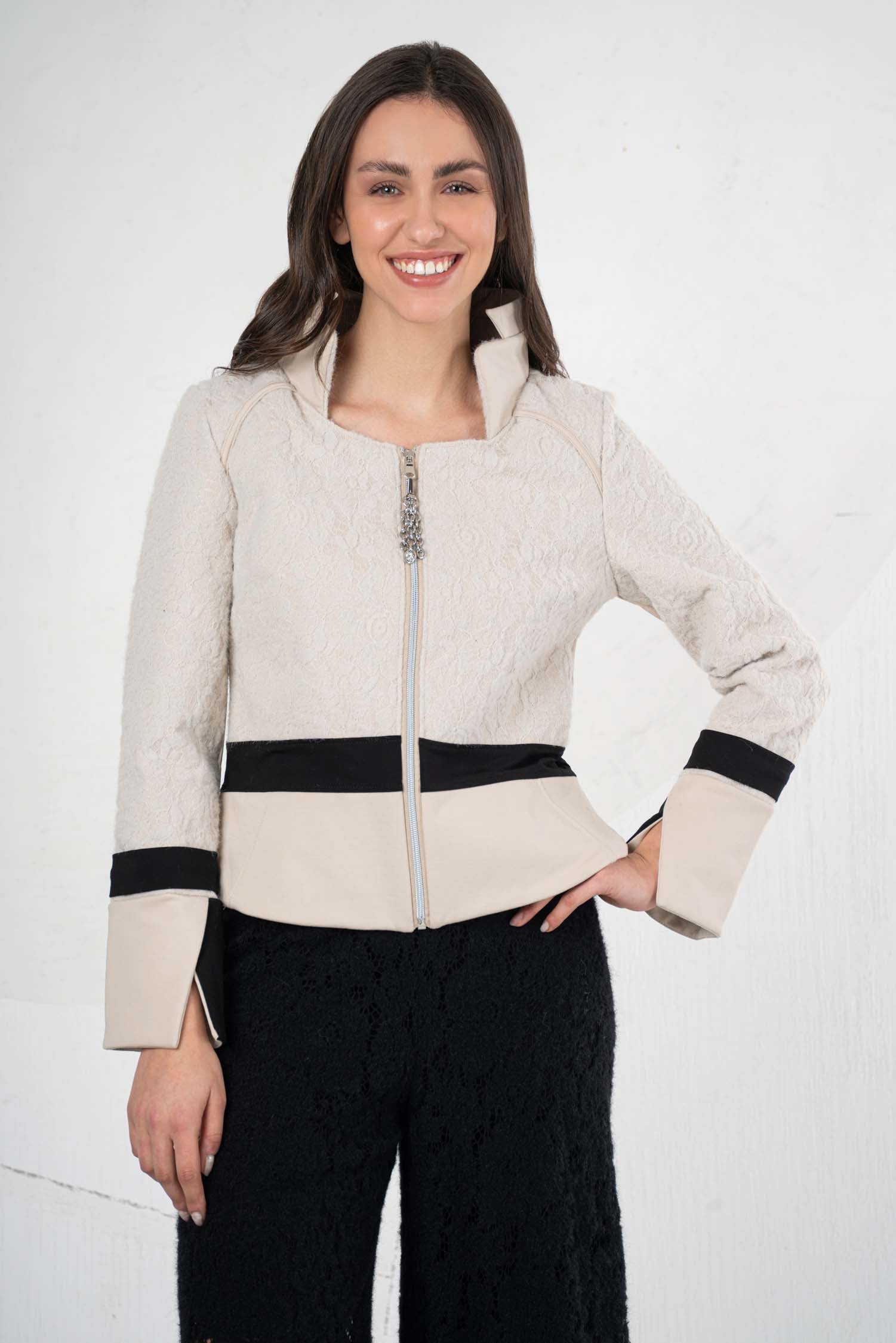 This stand-up collar jacket impresses with its stylish design in classic white and black. It combines timeless elegance with modern versatility, making it easy to pair with a variety of looks. The stand-up collar creates a sophisticated silhouette and provides added comfort, ideal for discerning style enthusiasts.