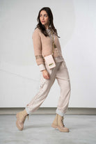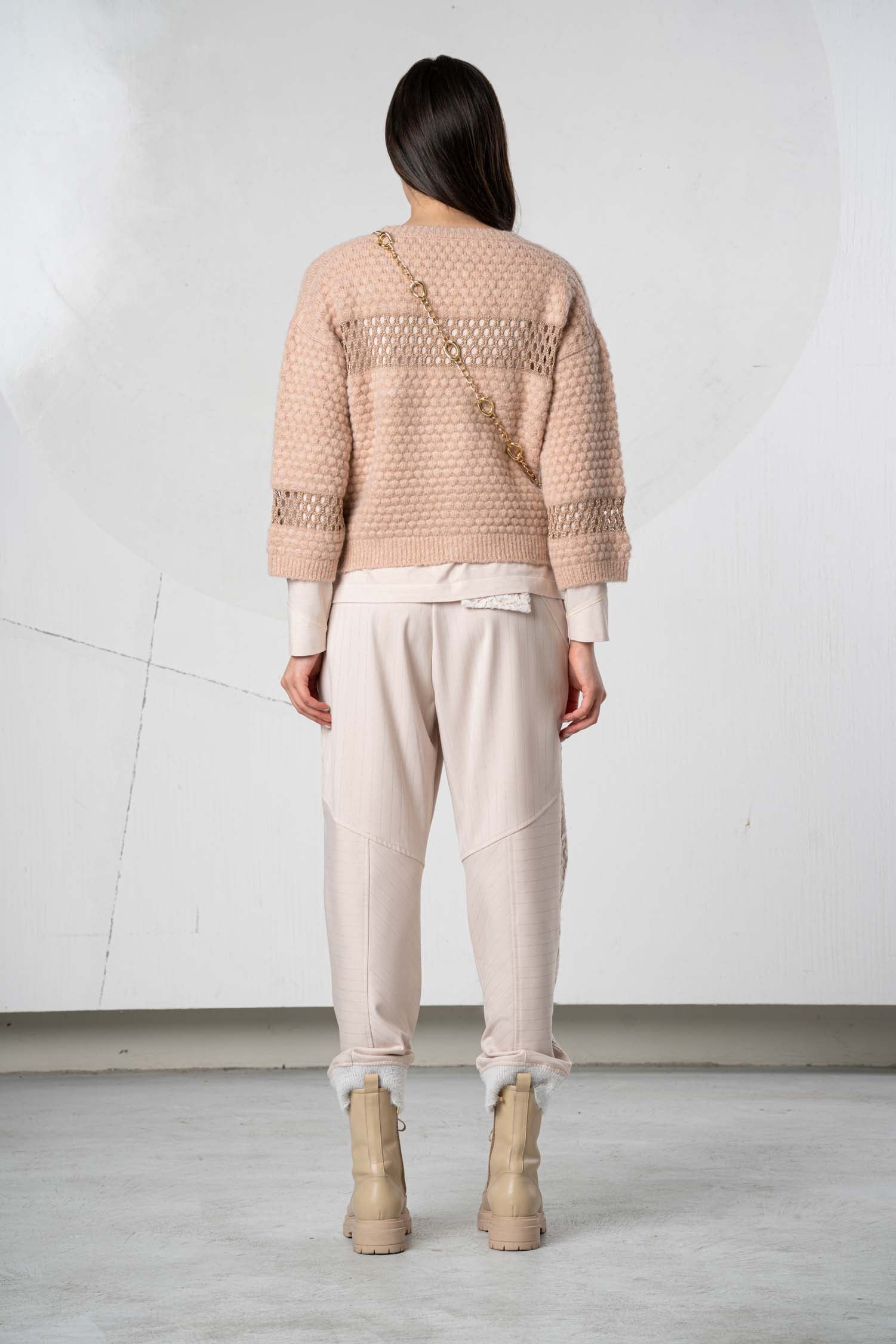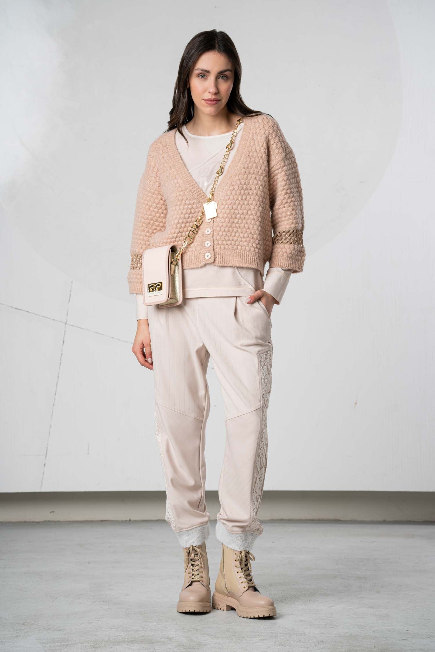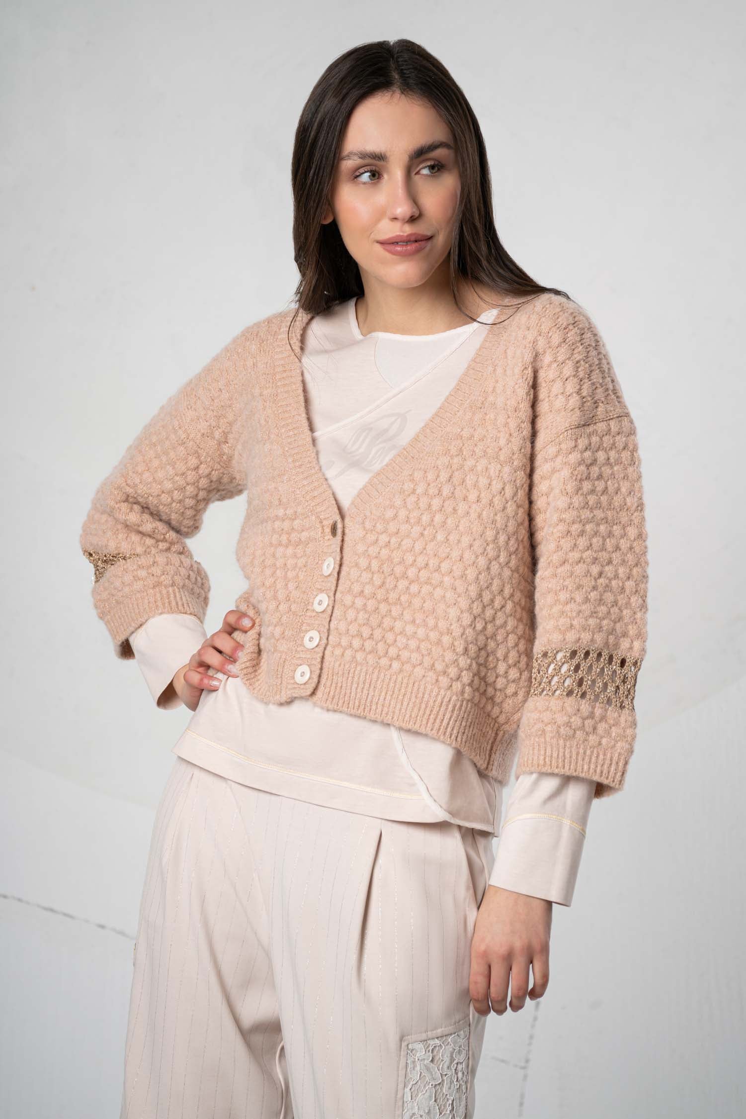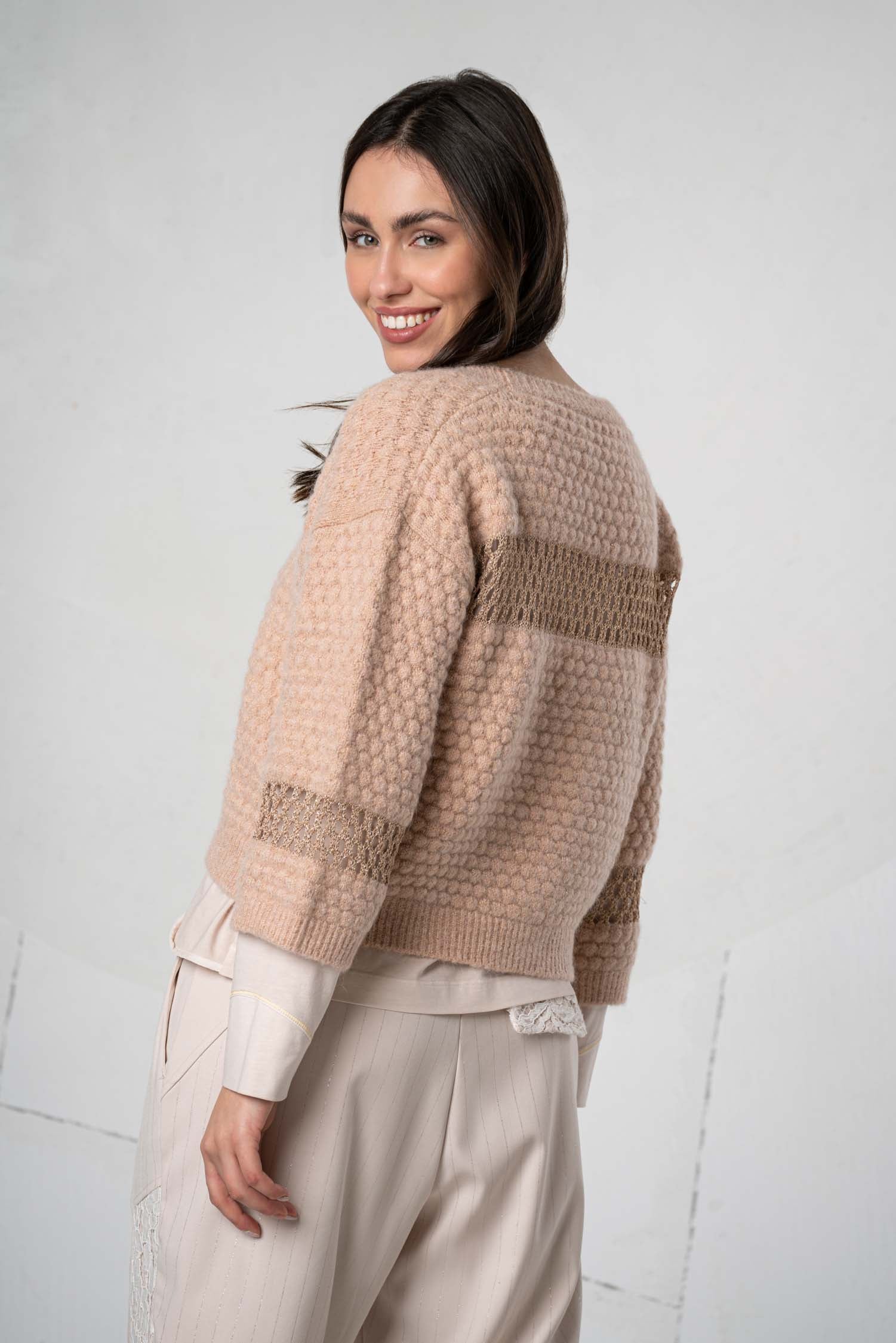 This stylish cardigan features a beautiful, intricate knit pattern in elegant beige. It combines fashionable sophistication with comfortable wear and is ideal for adding a high-quality and trend-conscious touch to any outfit. Perfect for sophisticated looks in the cooler months.