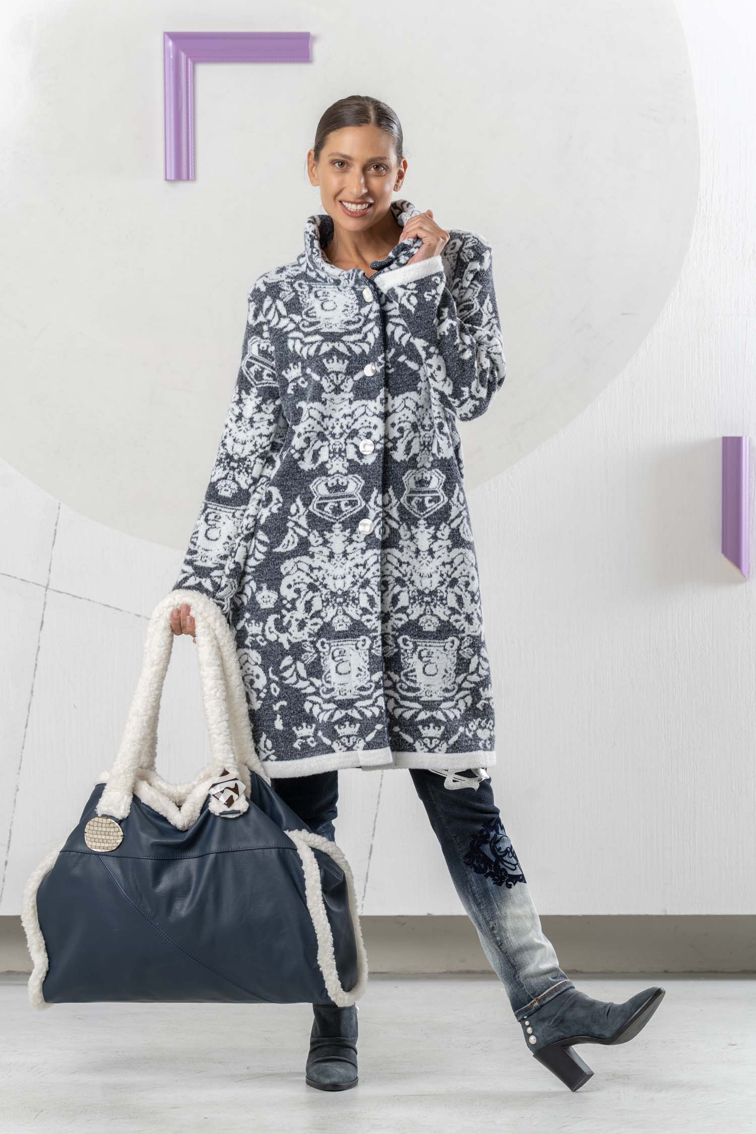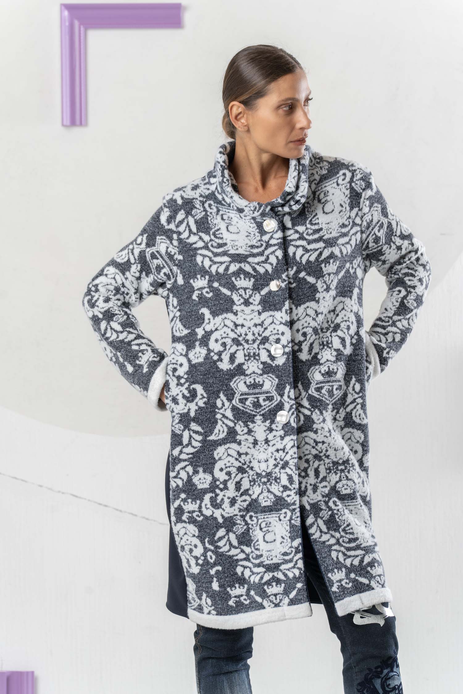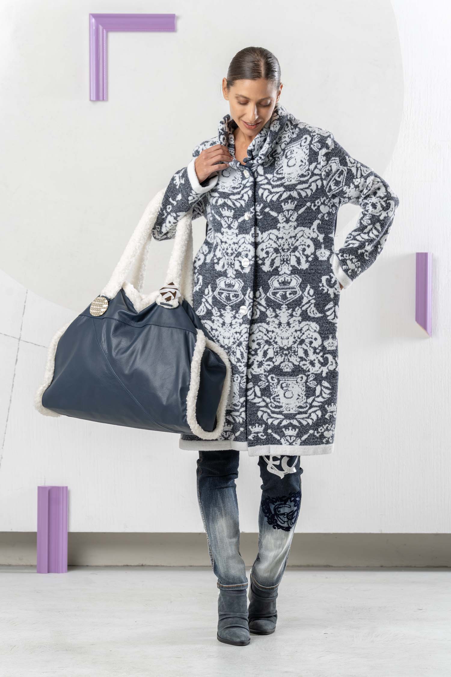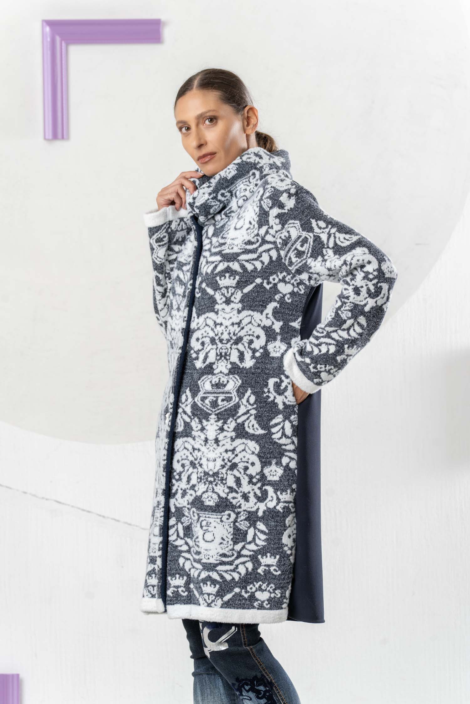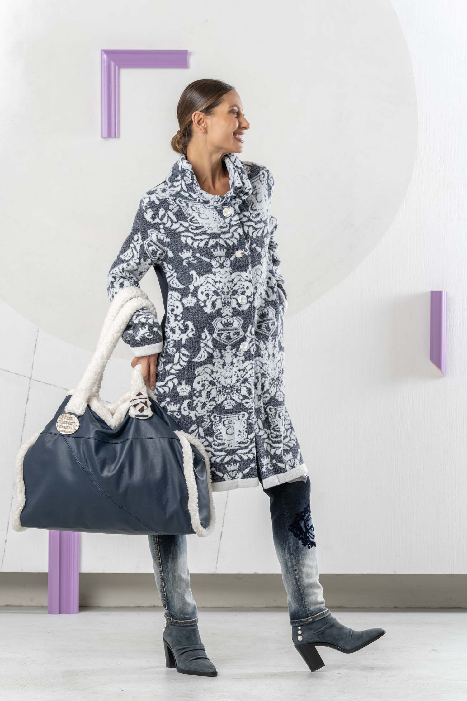 A cozy companion for cold days! The ELISA CAVALETTI 'Donna Incotro' knit coat impresses with its timeless design in white and dark blue. The high collar keeps you wonderfully warm and gives the coat an elegant touch. A must-have for every style-conscious woman!