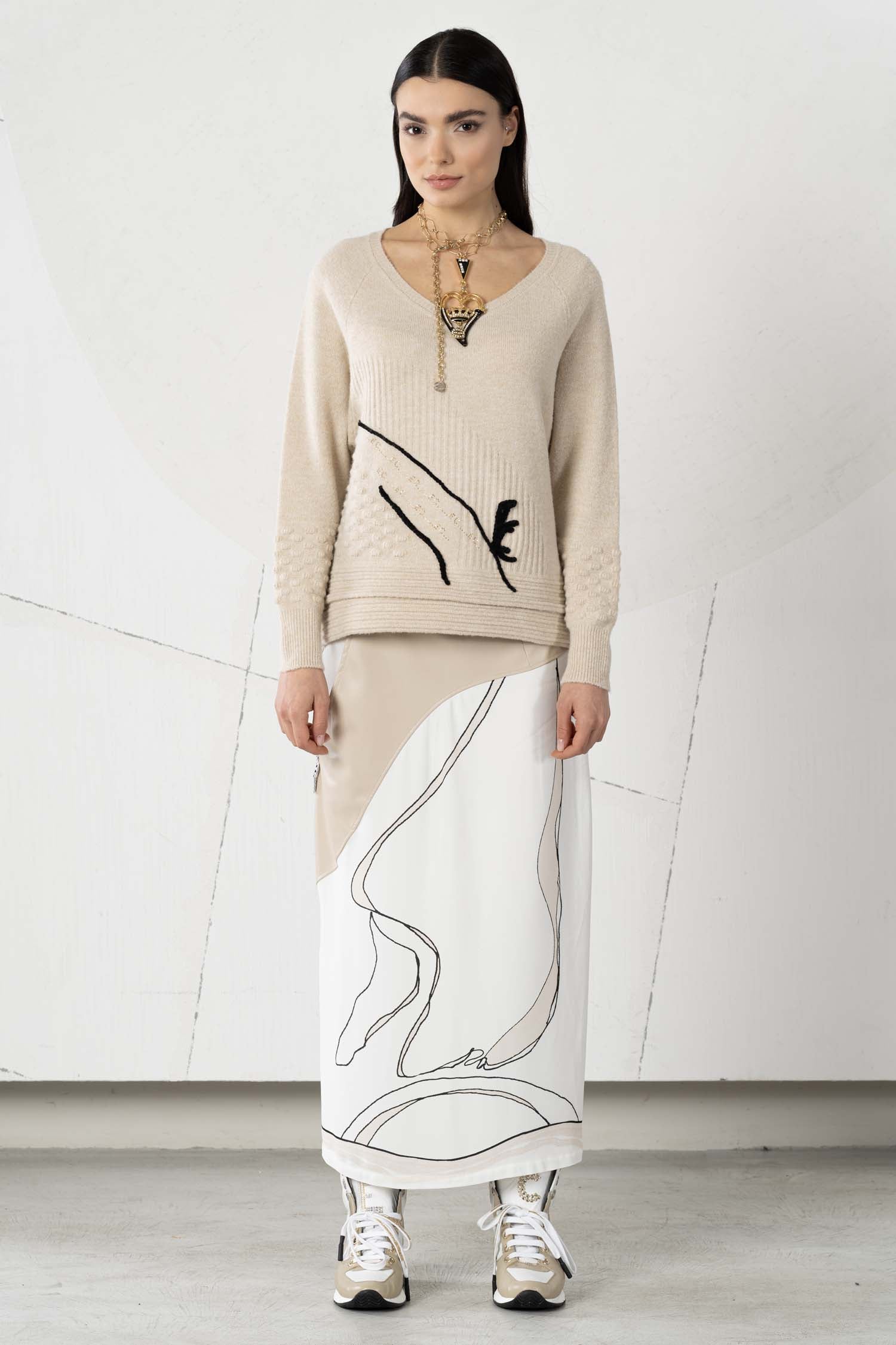 Refresh your wardrobe with the ELISA CAVALETTI St. Fluida skirt! Flowing fabric in white and beige creates a carefree, elegant look. Perfect for summer and incredibly versatile. Order now and feel beautiful and free!