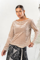 Dieses feminine Longsleeve überzeugt mit einer edlen Samt-Optik und dezentem Glanz. Der gerade Schnitt und der weite Rundhalsausschnitt sorgen für eine zeitlose Silhouette, während feine Glanzdetails am Saum und an den Ärmeln elegante Akzente setzen. Ein stilvolles Basic, das sowohl solo als auch kombiniert vielseitig einsetzbar ist.