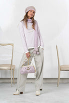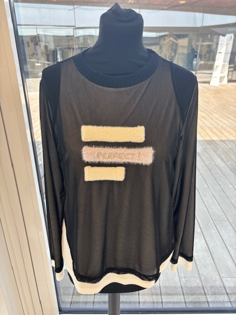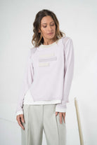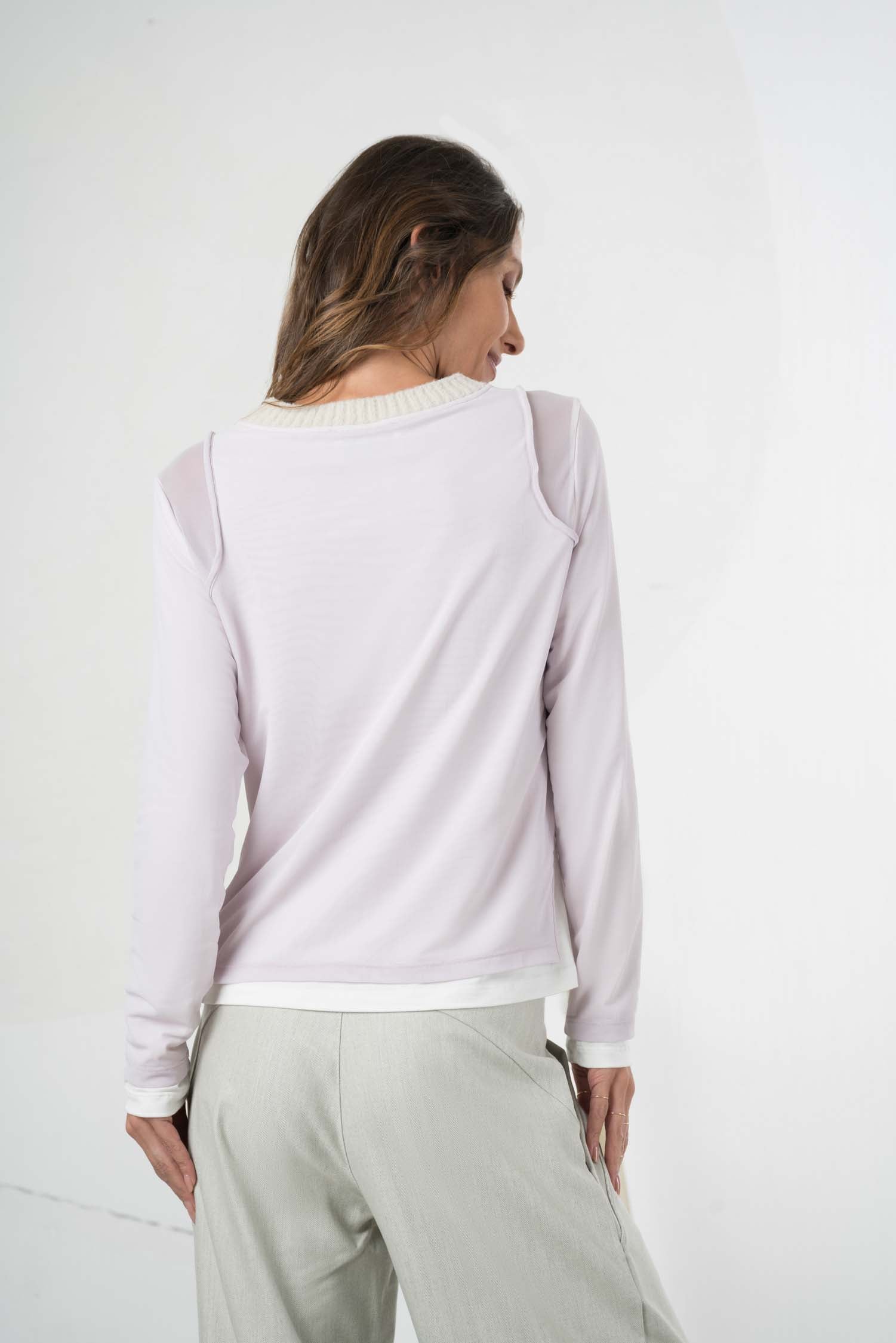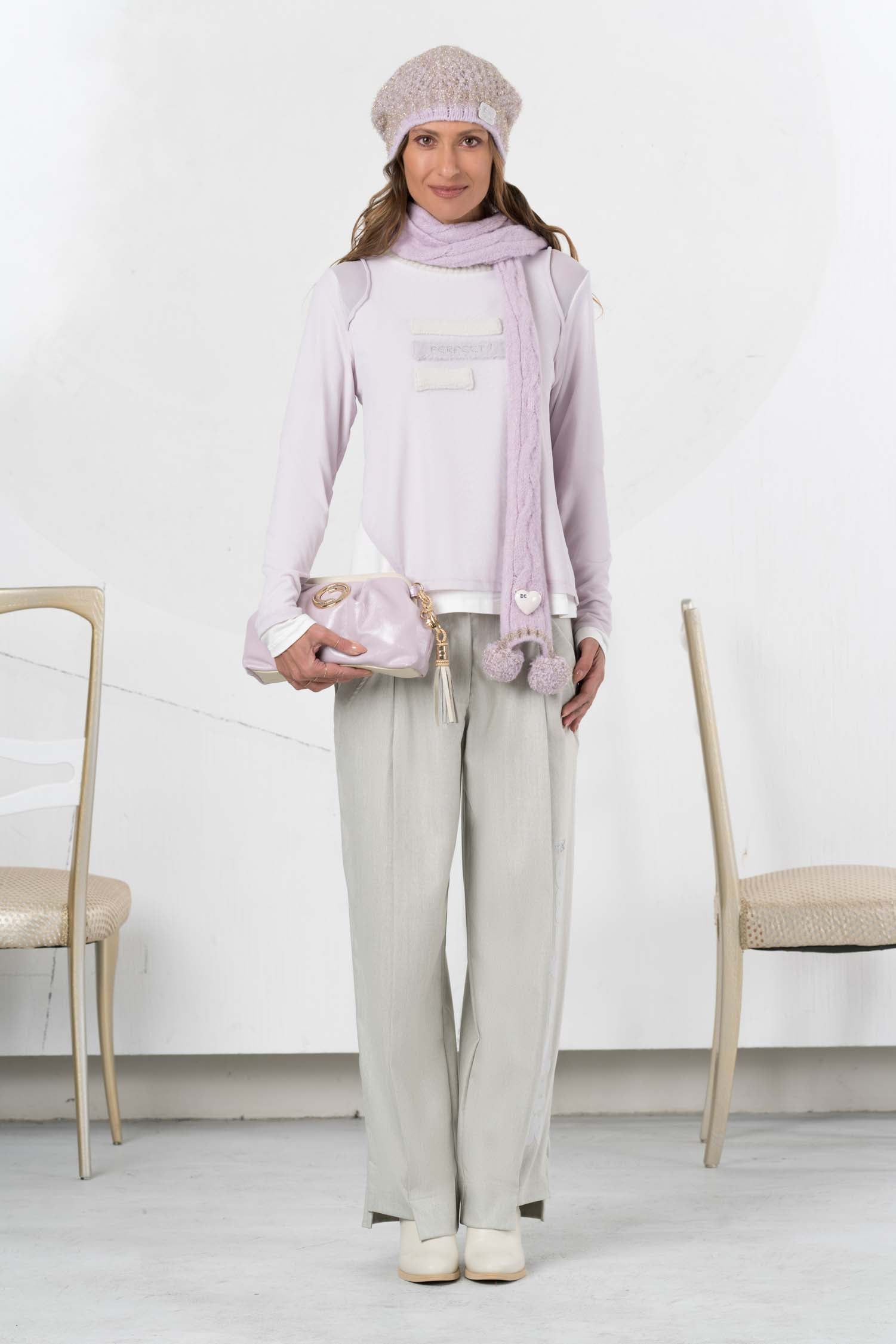 This long-sleeved sweatshirt combines stylish design with an interesting material combination that ensures comfortable wear. Available in purple and black, its versatile color choice complements any wardrobe. The eye-catching print gives the garment a modern character, ideal for fashion-conscious wearers who value a successful blend of comfort and individuality.