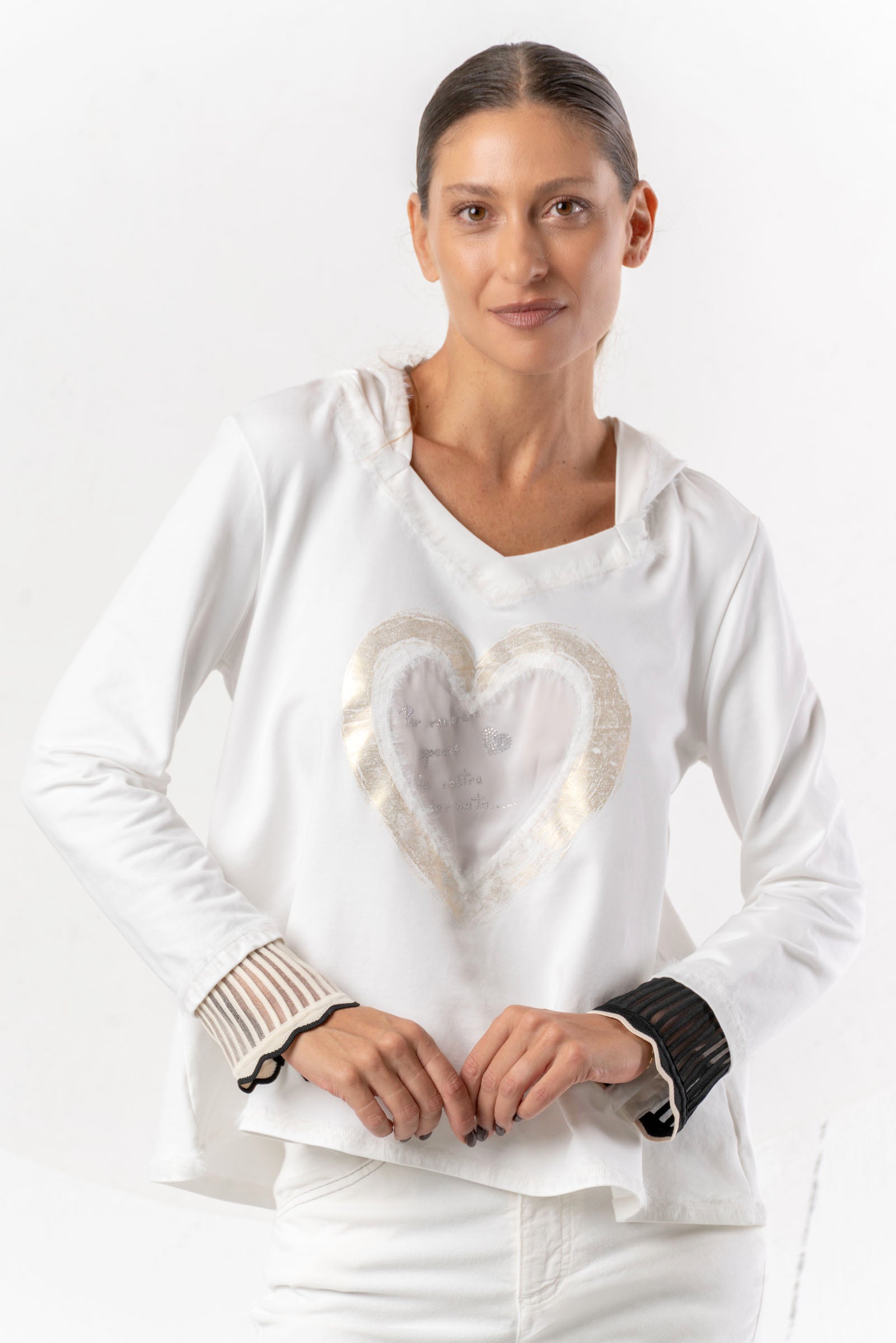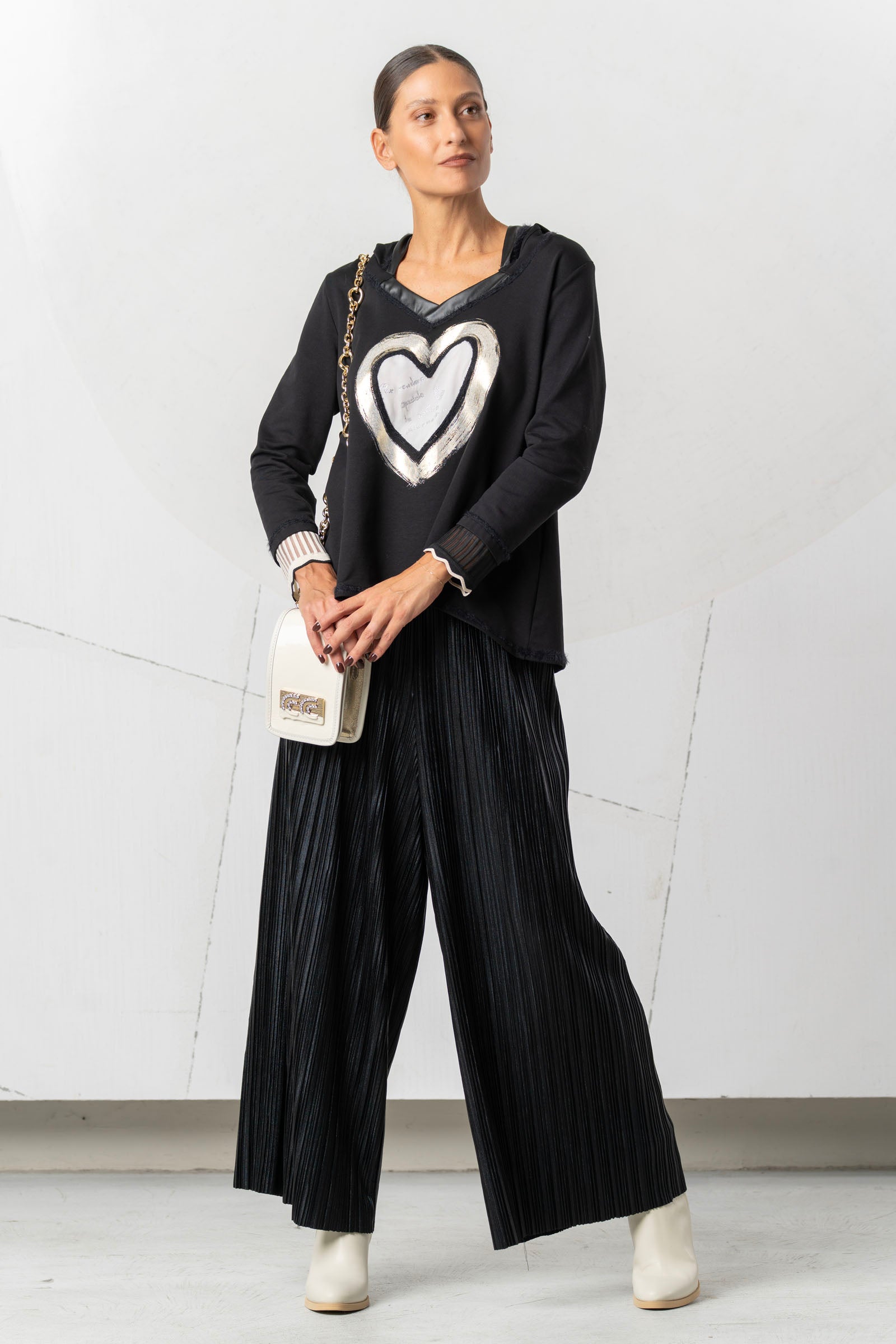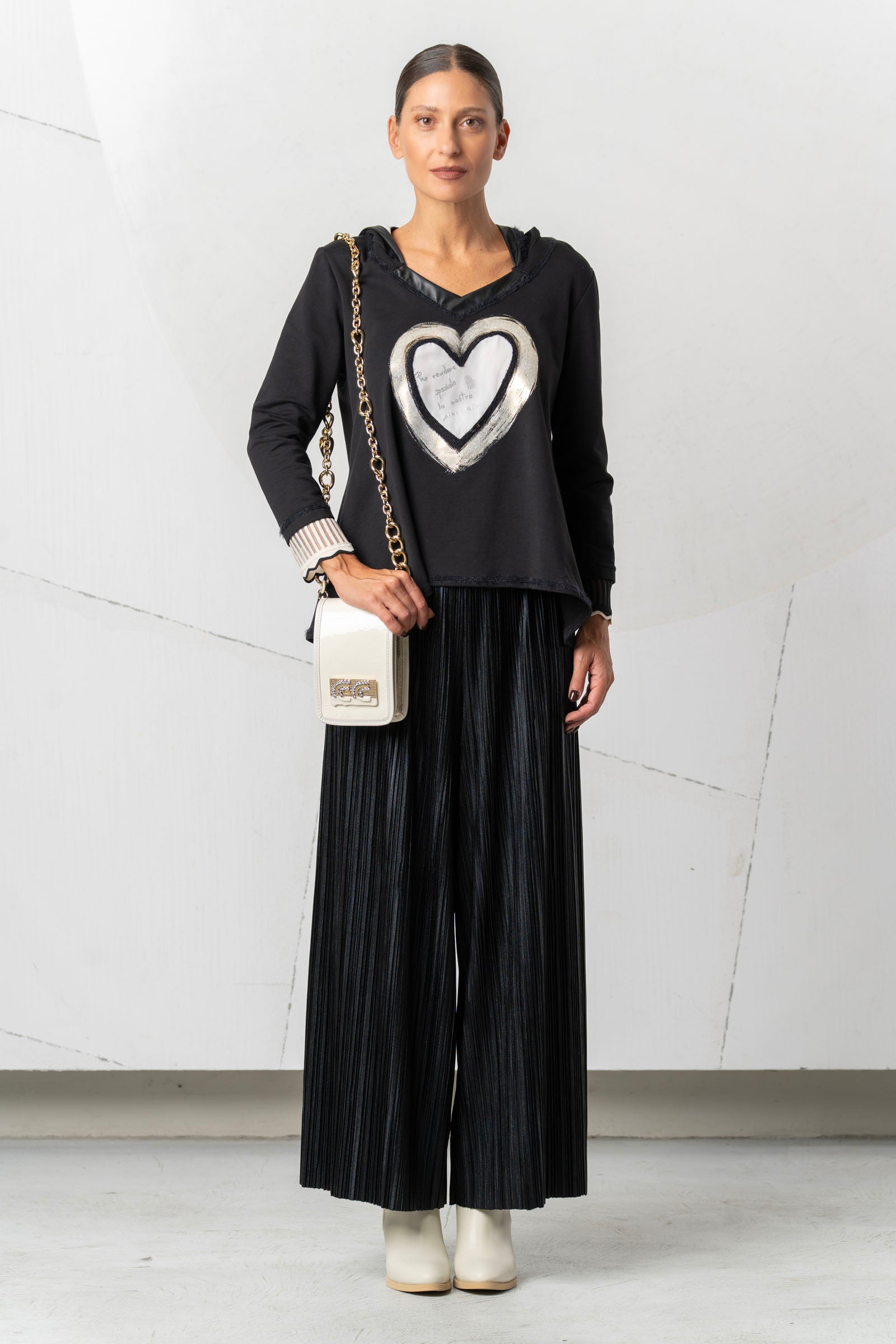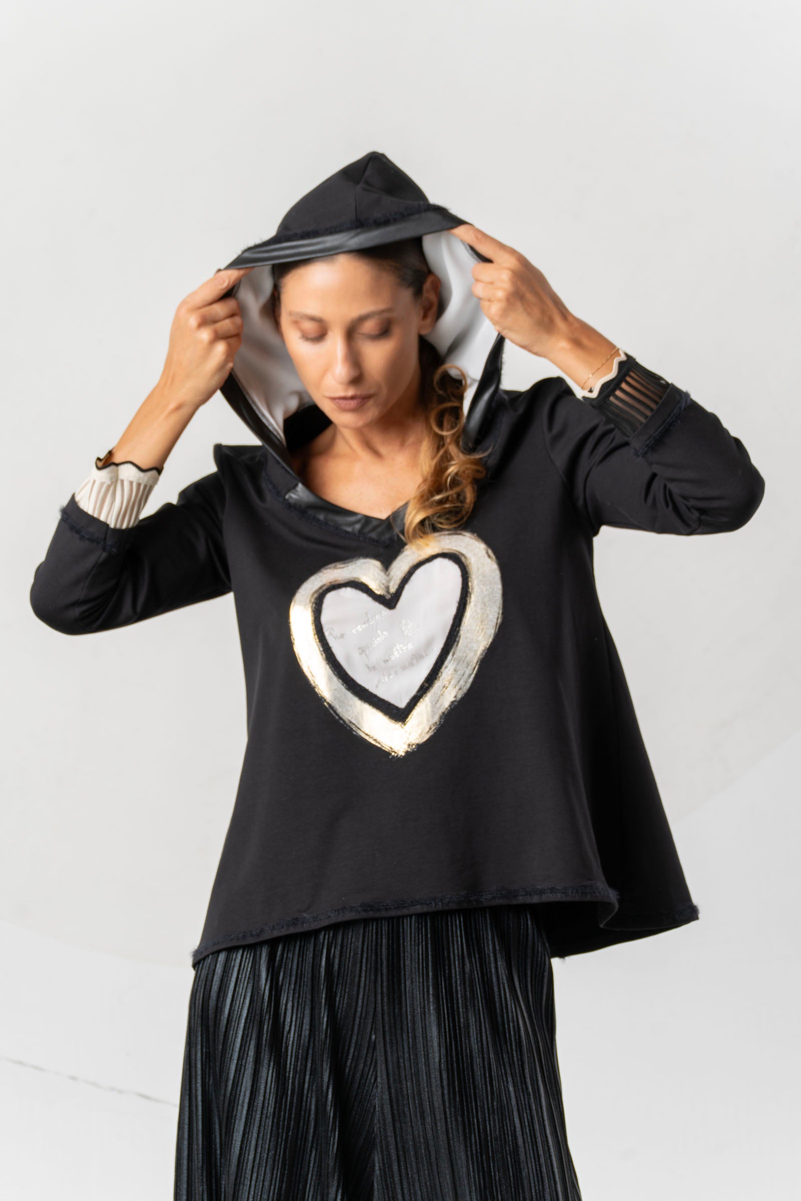 This stylish sweatshirt in timeless black impresses with its comfortable fit and hood, which offers extra comfort and protection. The heart print adds a fashionable touch, giving your outfit a personal flair. Ideal for relaxed days or casual looks.