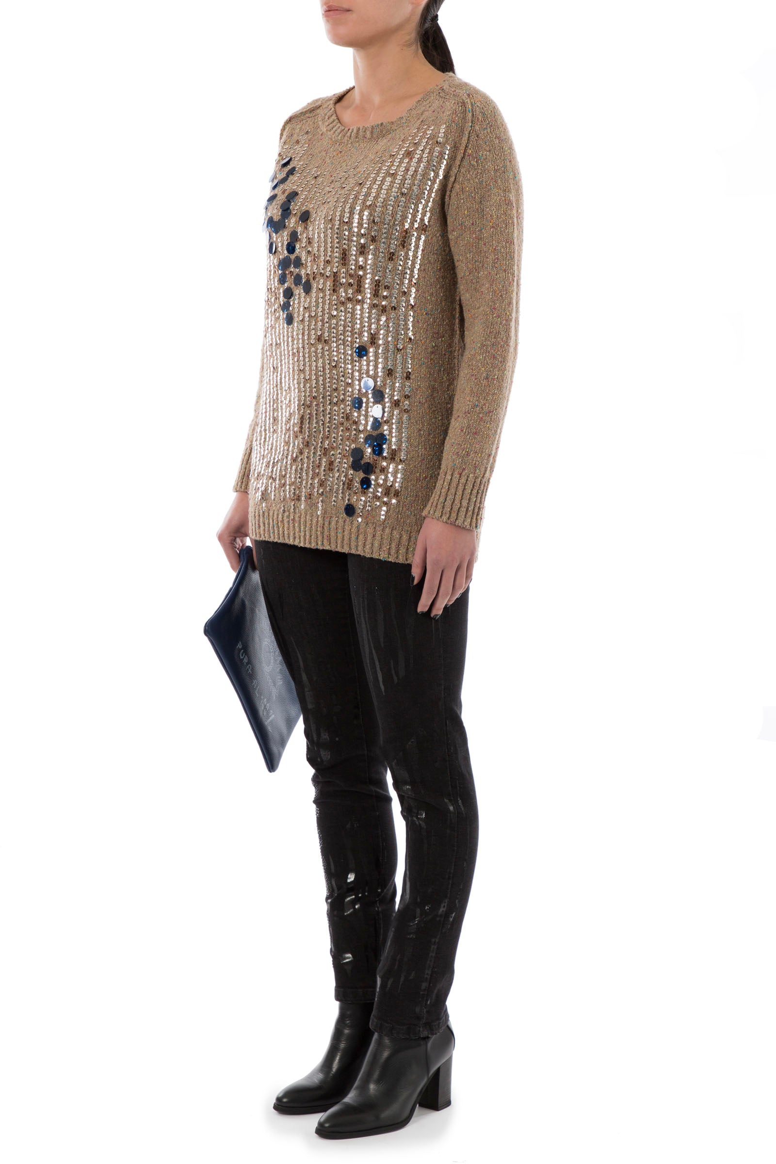 An elegant knit sweater in warm brown with intricately crafted sequins and subtle appliqués. The high-quality knit combines classic elegance with modern details. The carefully placed embellishments create a sophisticated look that is suitable for both festive and everyday occasions. A versatile favorite for a discerning wardrobe.