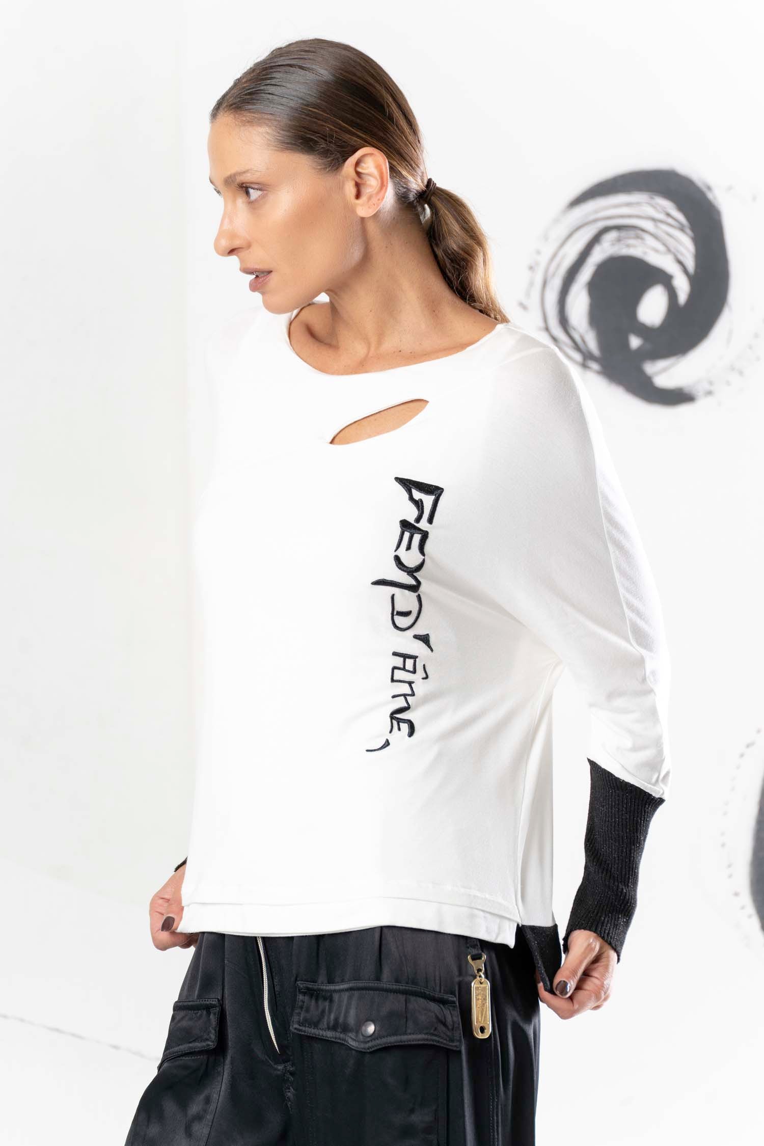 Discover the perfect companion for your casual look with the DANIELA DALLAVALLE T-shirt! This beautiful sweater features a narrow slit at the neckline, adding extra flair to your outfit.