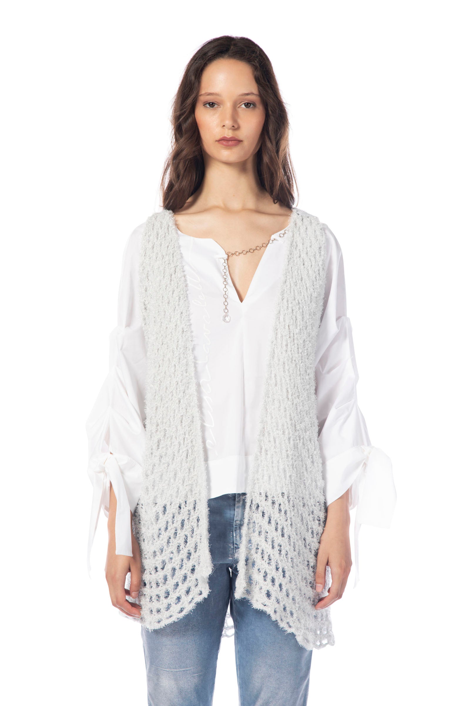 Discover elegance with the ELISA CAVALETTI Diamante cardigan! In delicate light gray and with a large knit, this cardigan is a real eye-catcher. Add that certain something to your outfit and enjoy the comfort and warmth this jacket offers. Get your own diamond of fashion now!