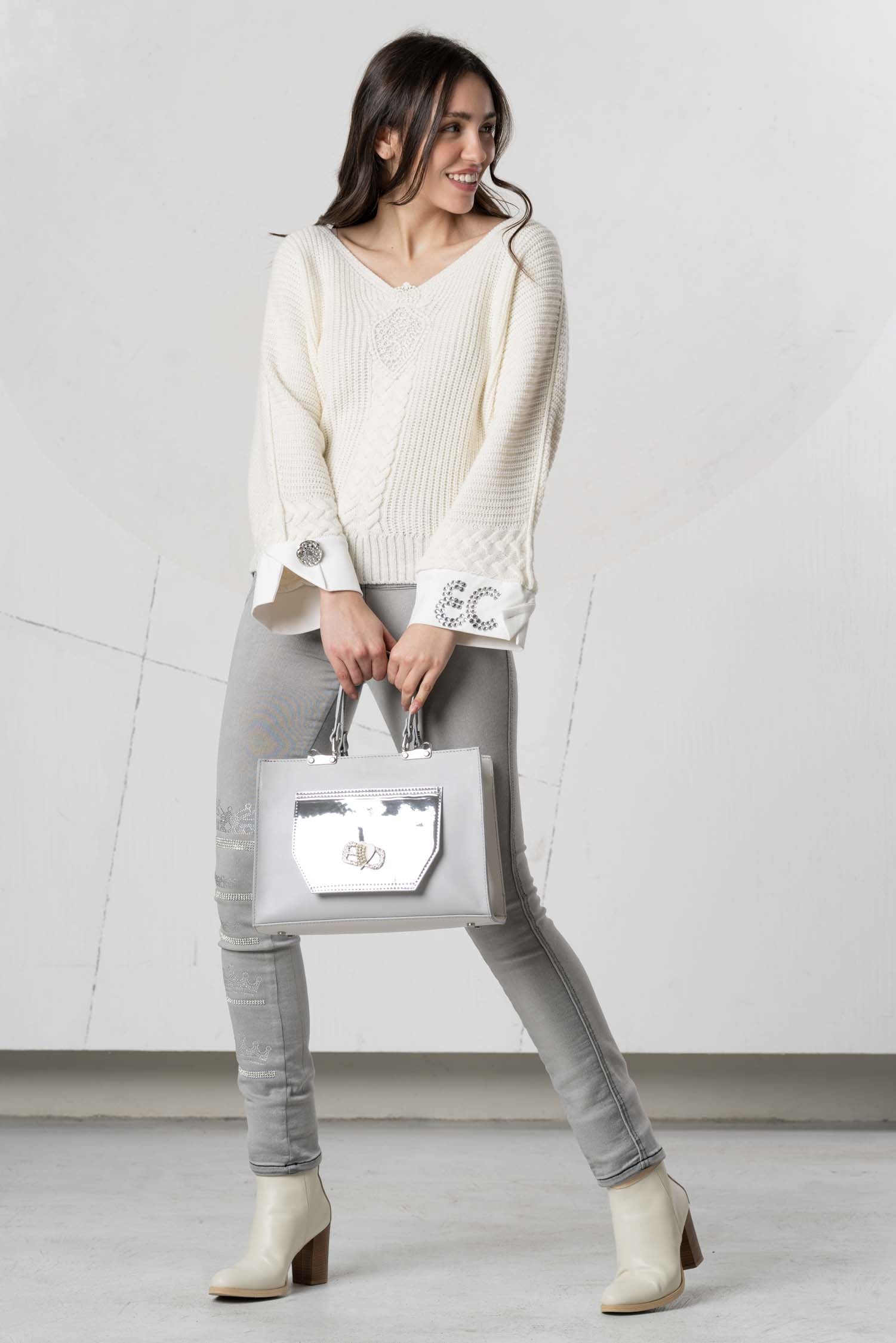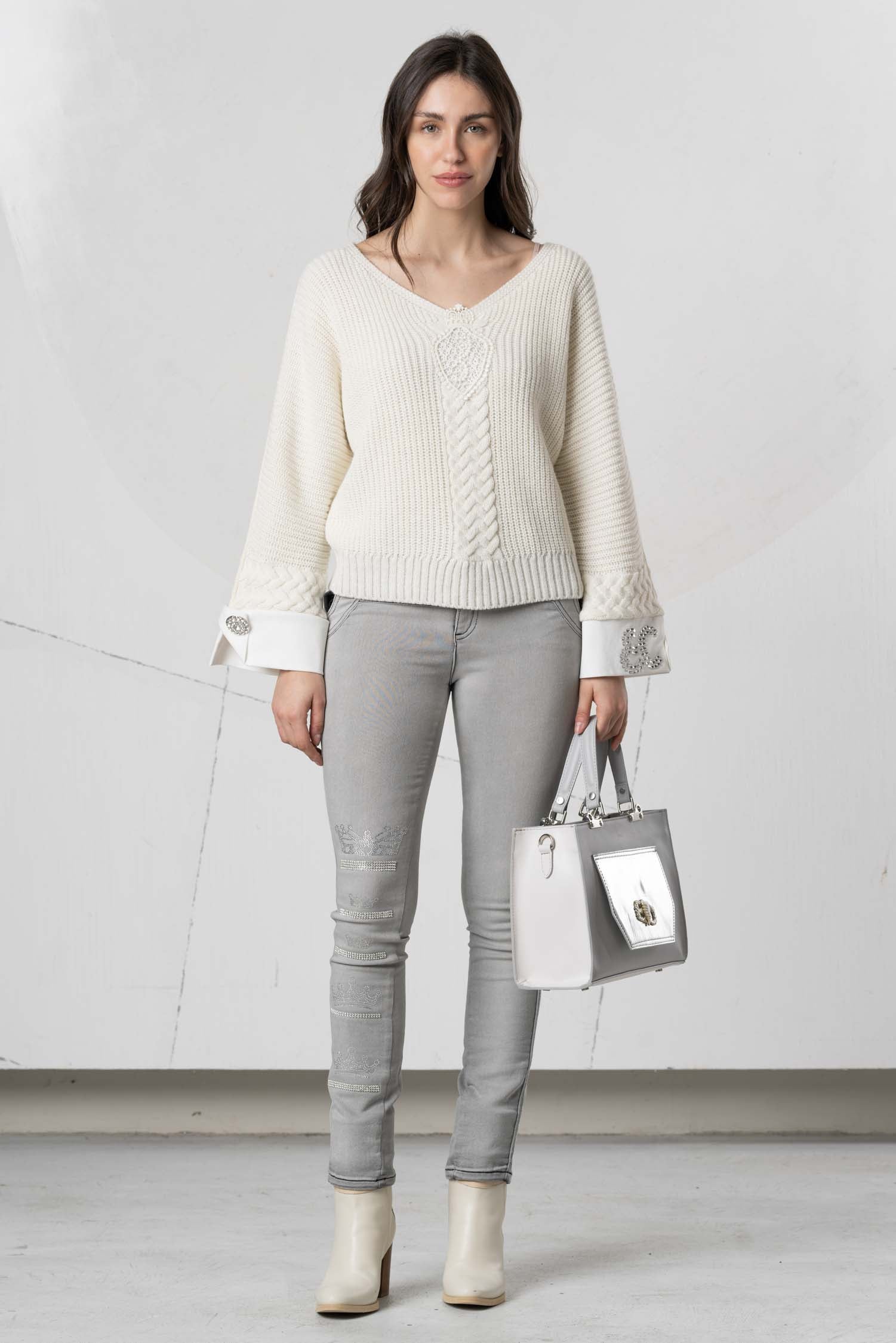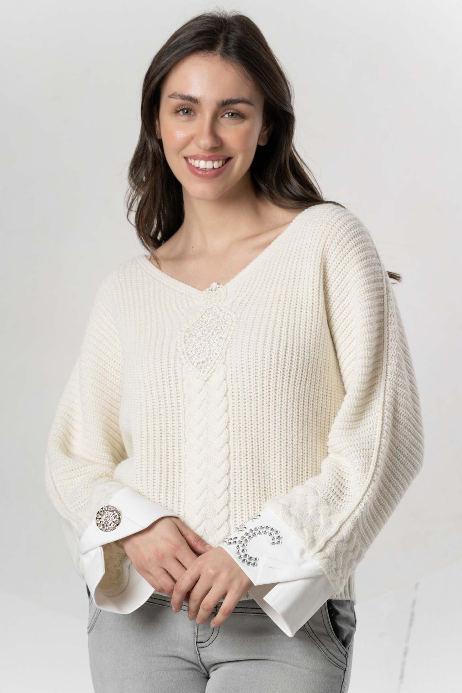 This V-neck knit sweater combines stylish design with exceptional comfort. The attractive knit pattern creates a sophisticated look, while the cozy material provides pleasant warmth. Available in various colors, the sweater is versatile and complements both casual and elegant outfits. Ideal for discerning fashion enthusiasts who value quality and style.