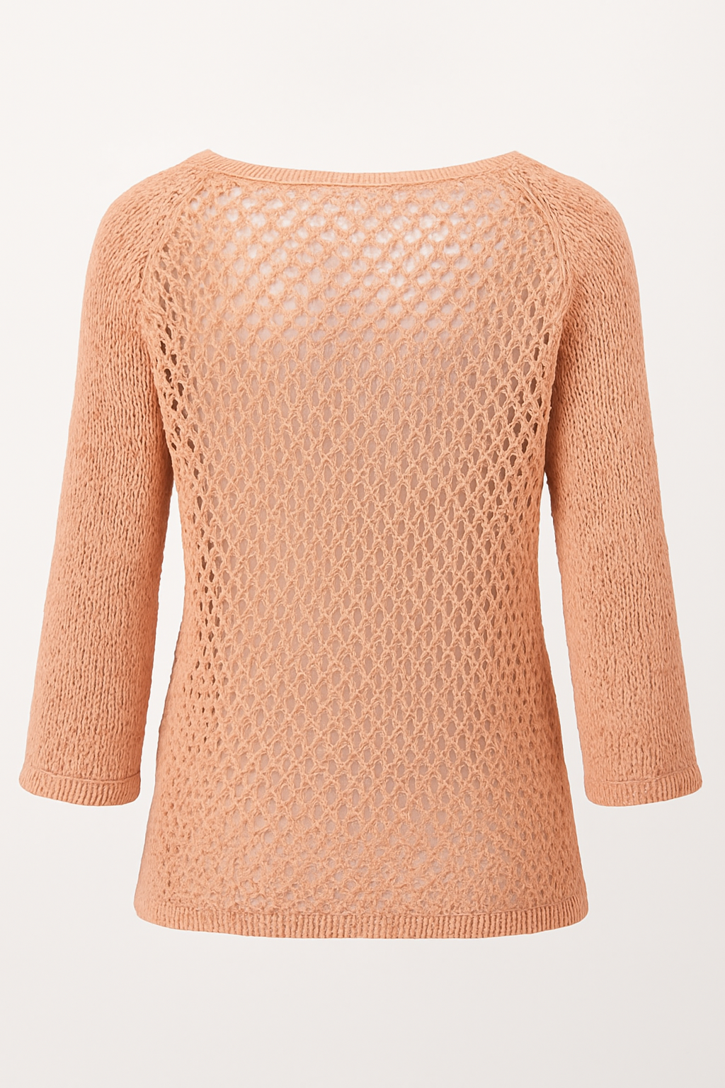 Elegant, sporty knitted sweater with a beautiful knitted pattern. In a delicate coral-beige color.