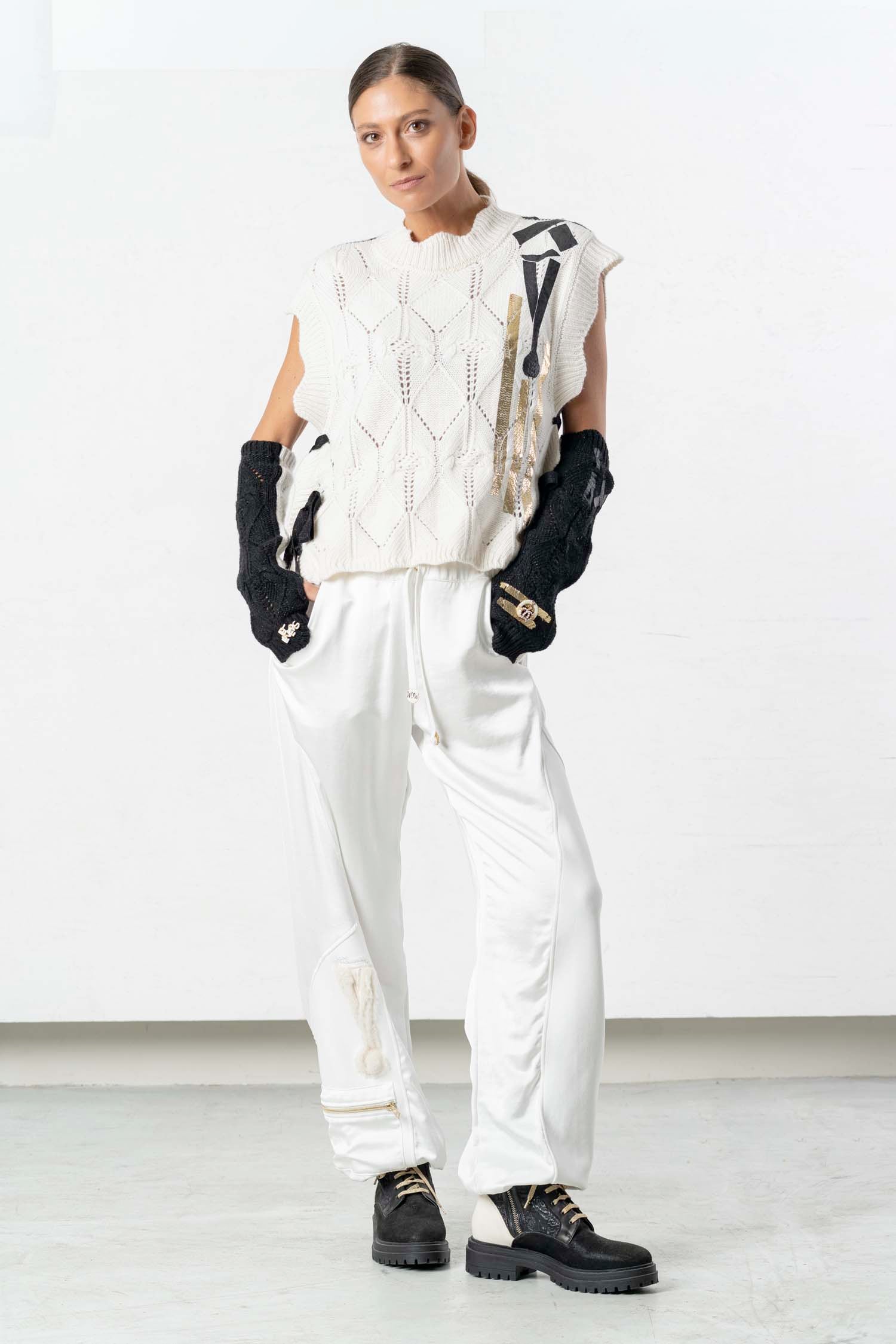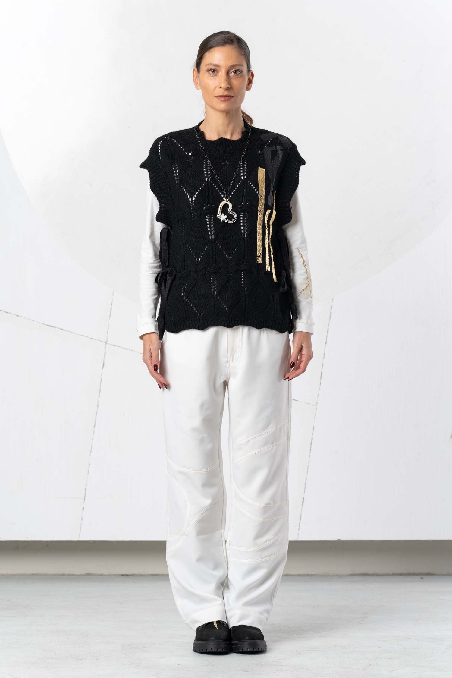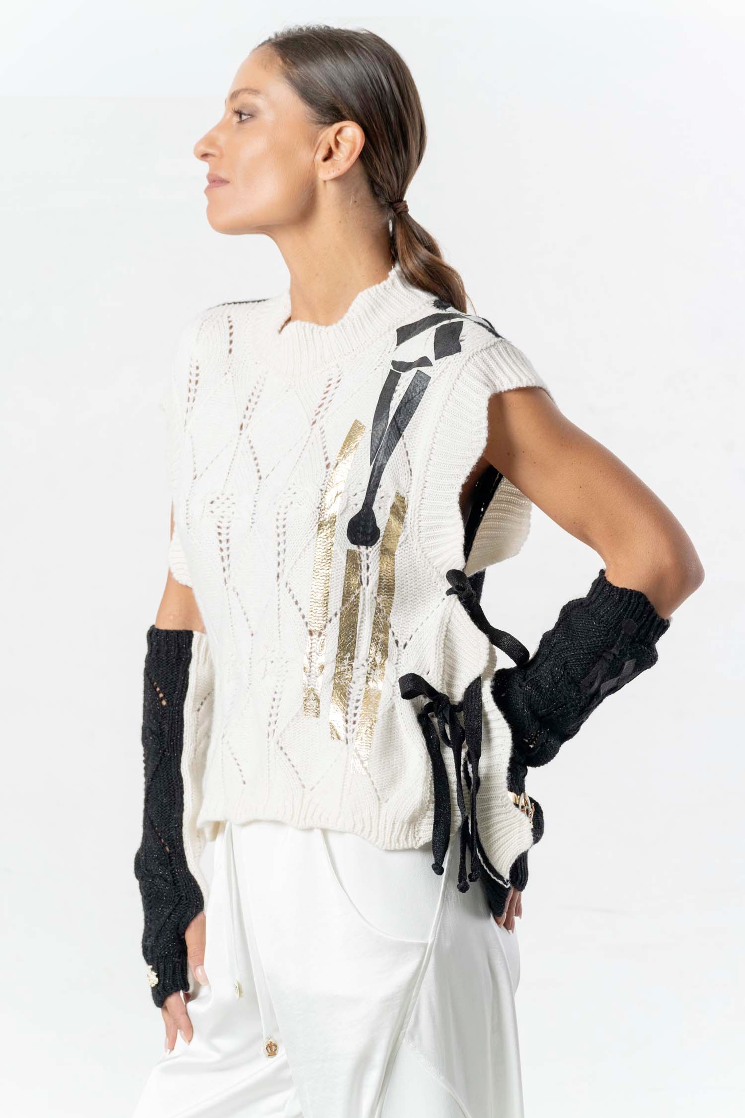 Be captivated by the ELISA CAVALETTI Incontro Nero knit shirt! This sleeveless, white shirt made from soft wool offers comfort and warmth. Perfect for any occasion, it will keep you looking stylish and cozy at the same time. Get this must-have for your wardrobe now!