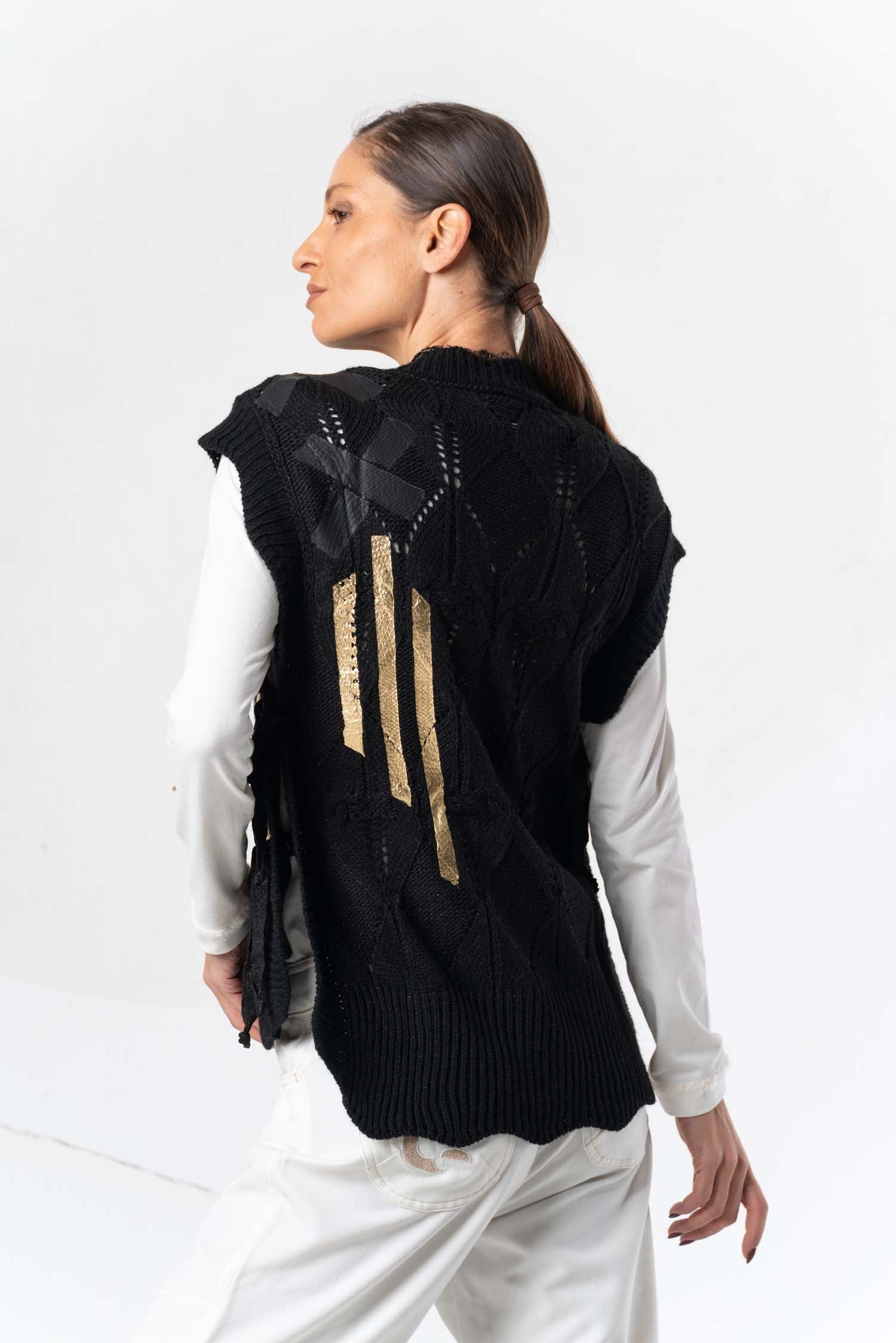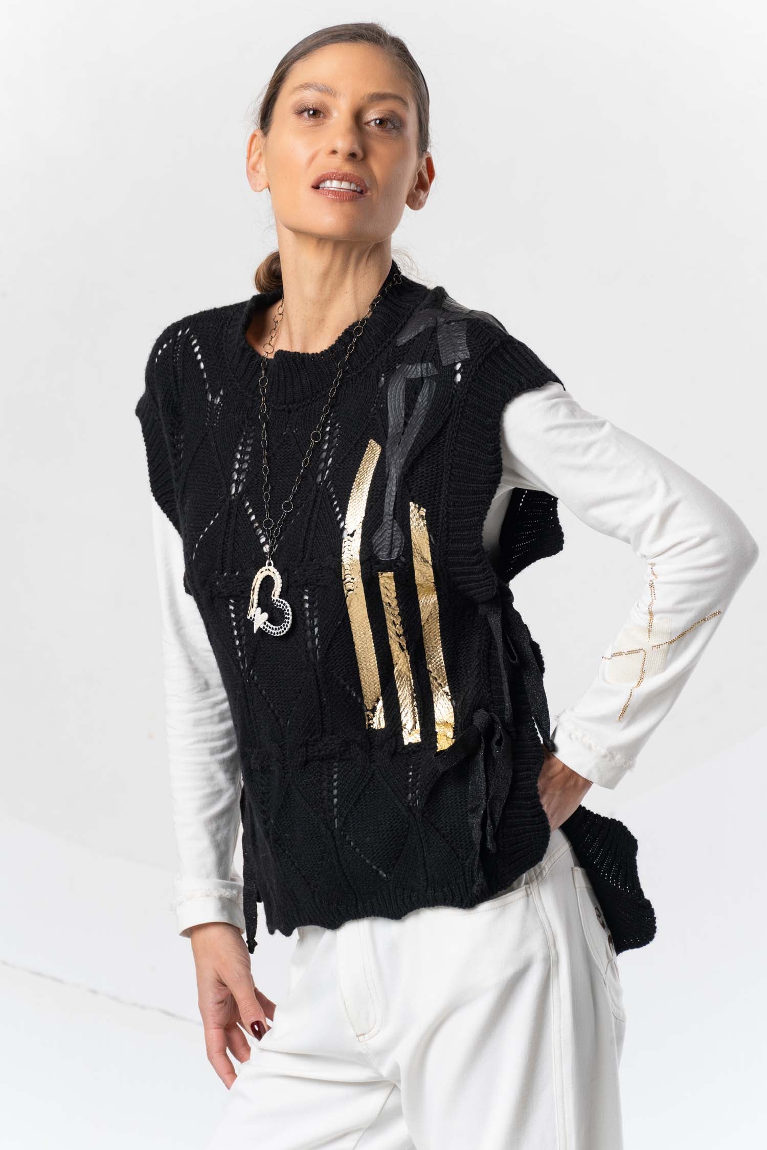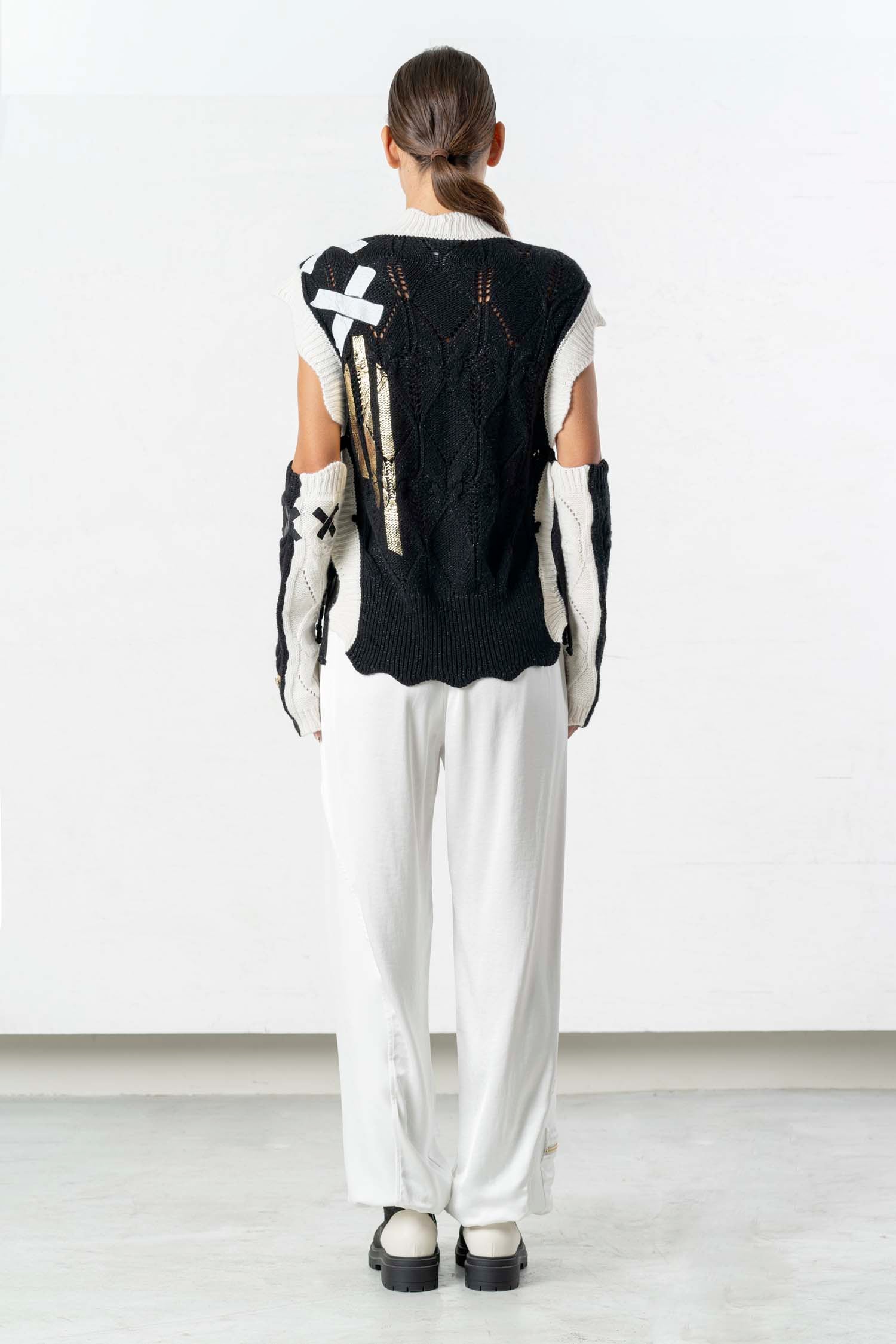 Be captivated by the ELISA CAVALETTI Incontro Nero knit shirt! This sleeveless, white shirt made from soft wool offers comfort and warmth. Perfect for any occasion, it will keep you looking stylish and cozy at the same time. Get this must-have for your wardrobe now!