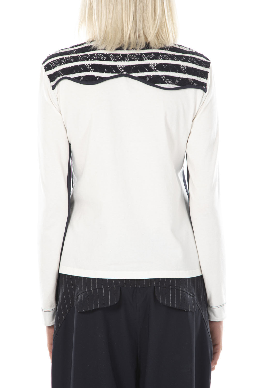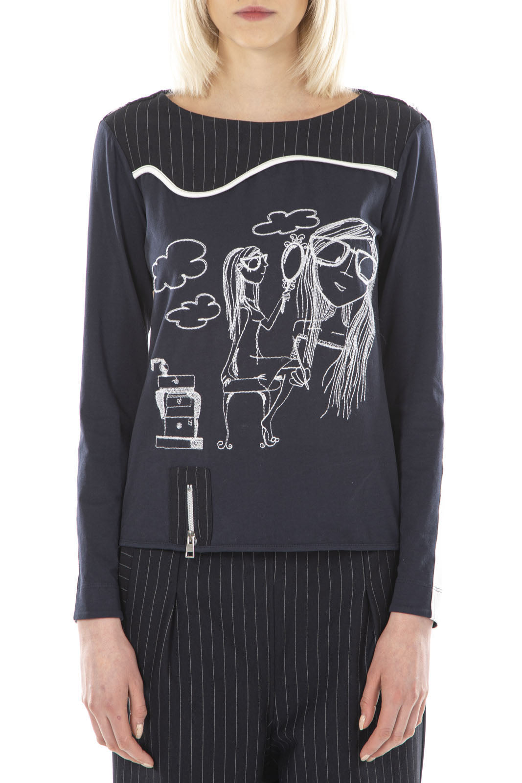 Create a look that impresses with its simplicity with this dark blue ELISA CAVALETTI Fumetto sweatshirt. The white stripes on the sleeves and along the sides give the sweatshirt a sporty touch. The white fabric on the back provides a fresh and modern contrast. Perfect for a casual yet stylish look.