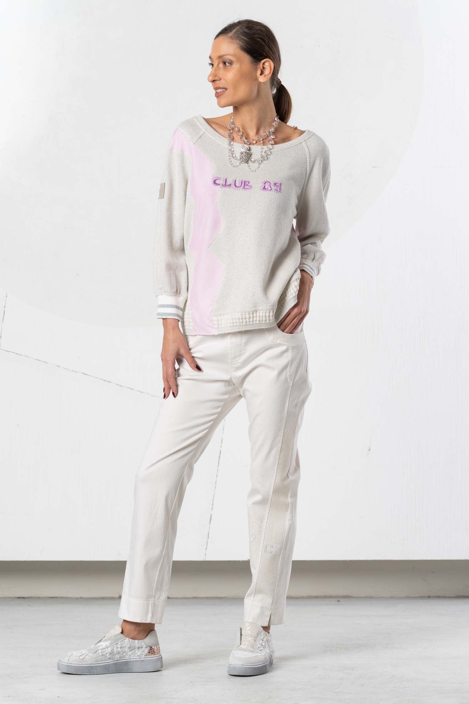 Give your outfit a feminine and stylish touch with the ELISA CAVALETTI Ricciarelli sweatshirt! The delicate pink and beige adds a trendy note and creates an elegant look. Perfect for women who love fashion with personality!