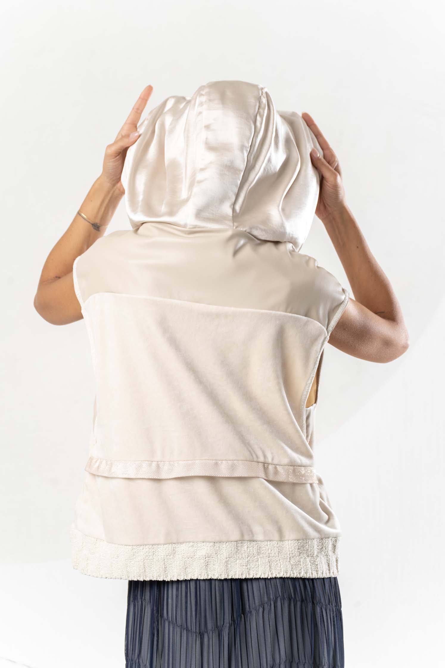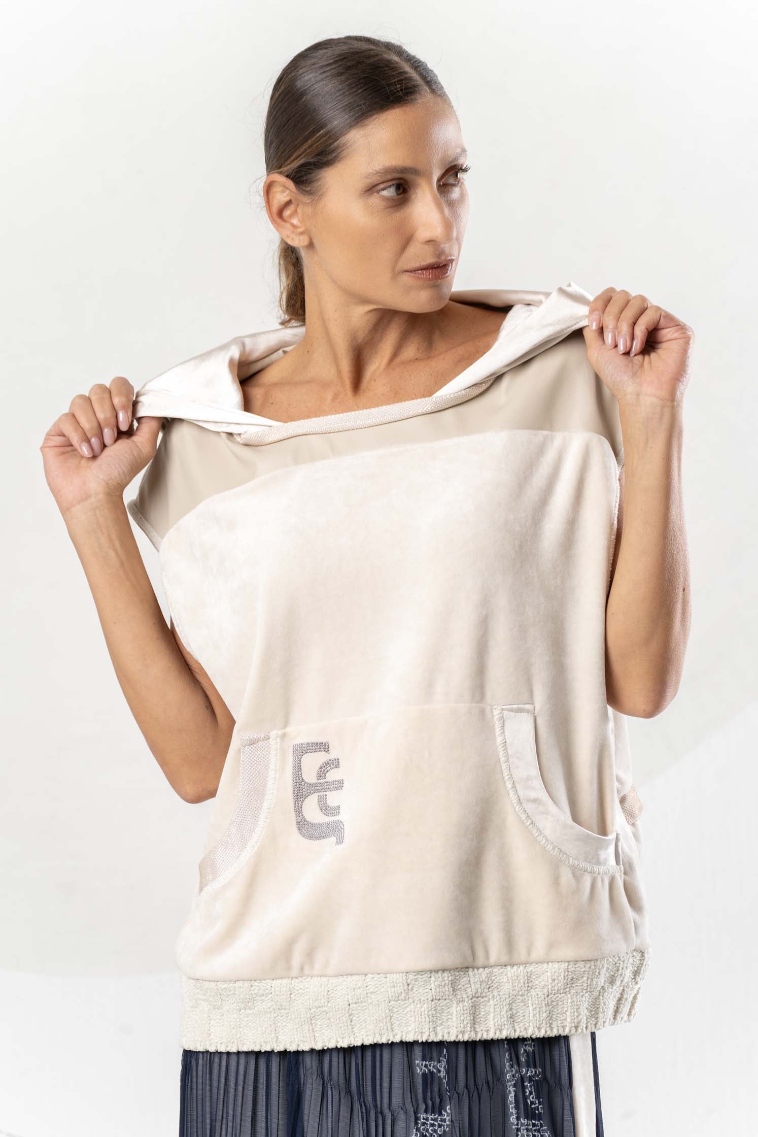 The Flauto sweatshirt is the perfect companion on cold days. It's comfortable and beige with a silver EC logo on the chest. It also features a hood at the back, providing extra warmth and a stylish look.