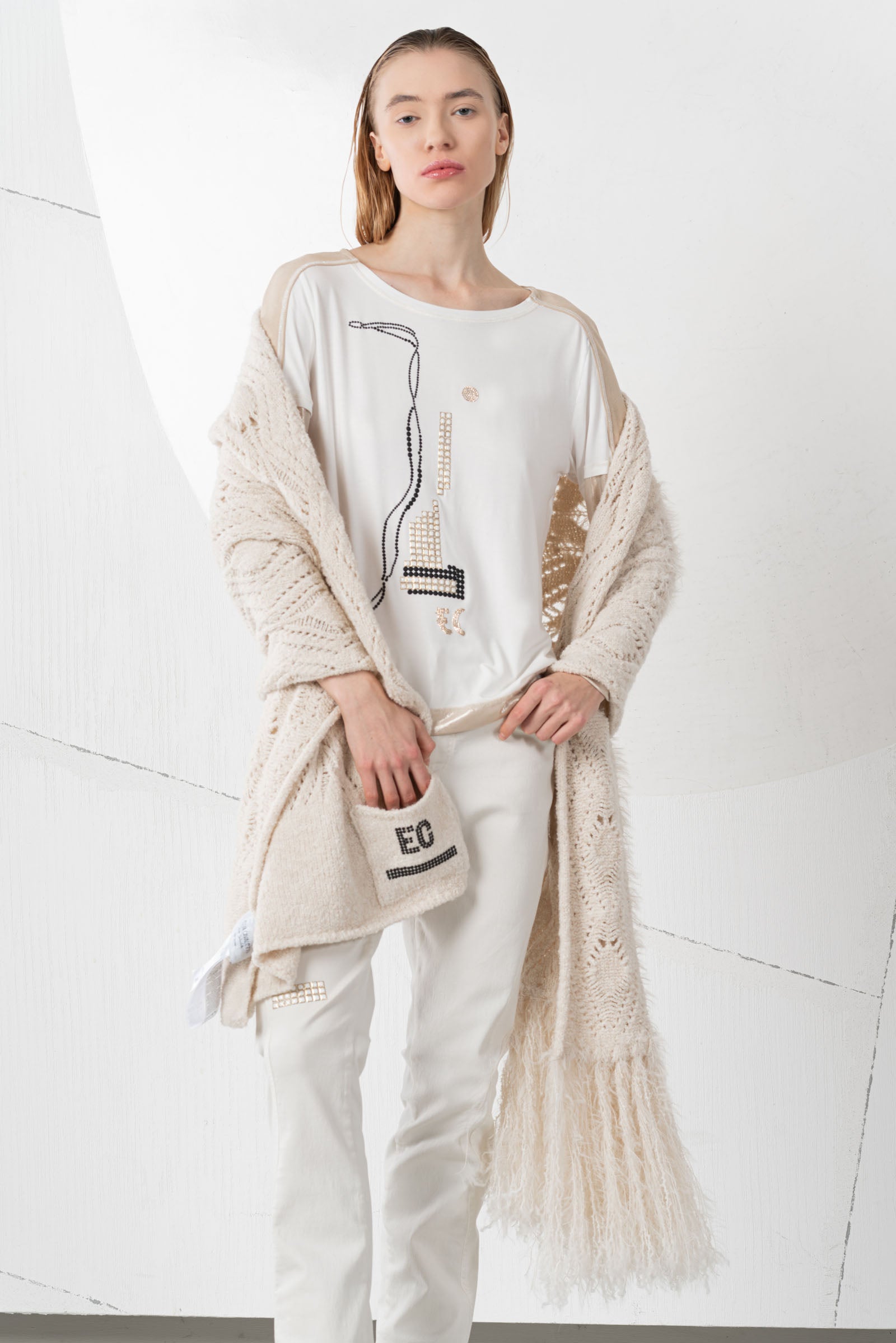 Discover the beautiful ELISA CAVALETTI knitted scarf in beige, white, and black. Made from high-quality wool, it offers not only warmth but also style. Available in various color combinations. A unique accessory that perfectly complements your look and keeps you warm!