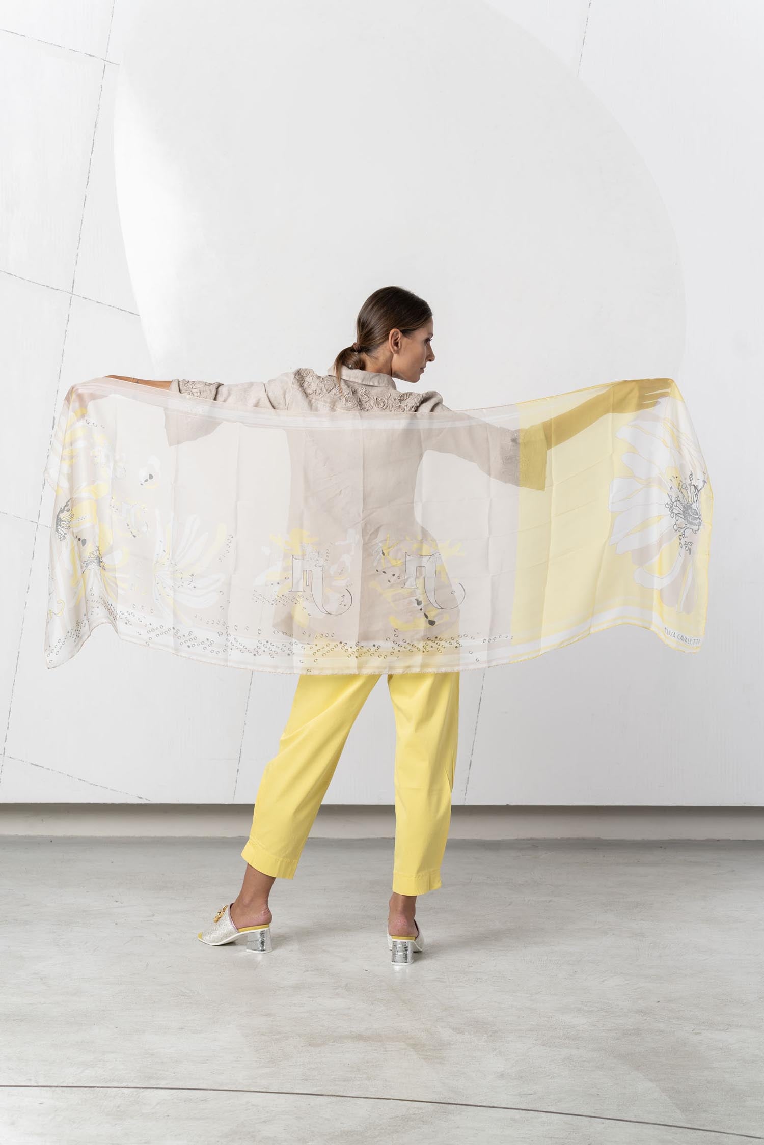 This beautiful ELISA CAVALETTI silk scarf is the perfect accessory for any occasion. Made from high-quality silk, it elegantly and stylishly combines beige and yellow. Treat yourself to this luxurious scarf and add a touch of color and elegance to your look.