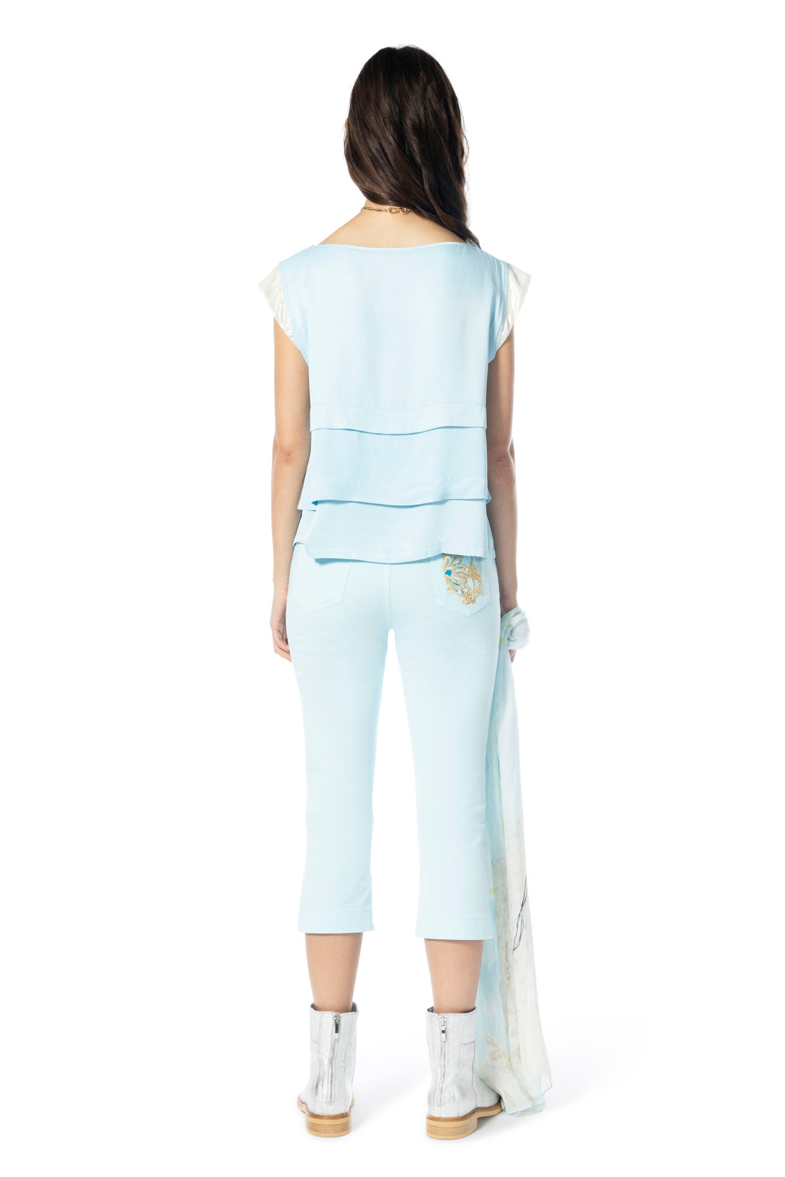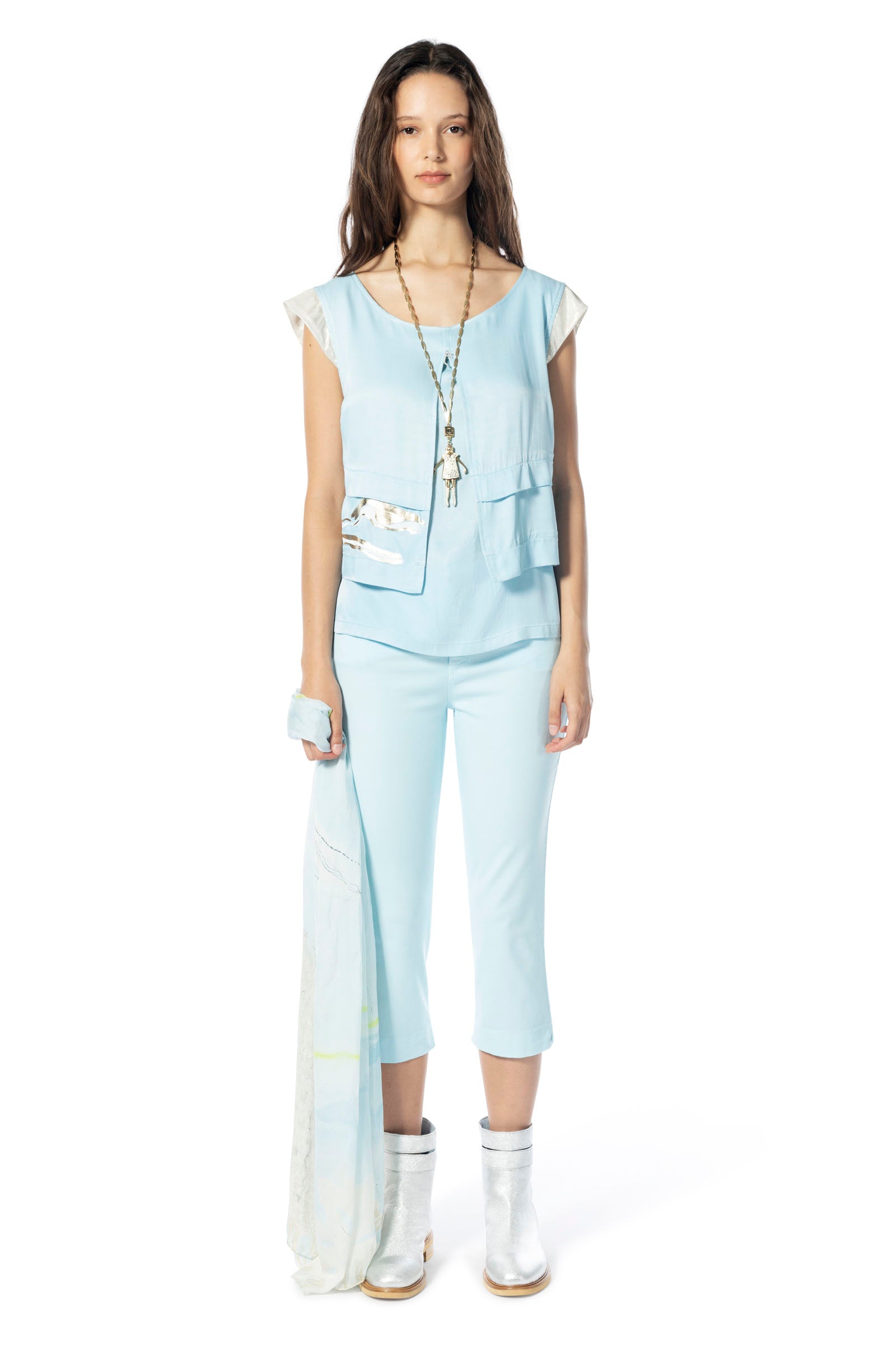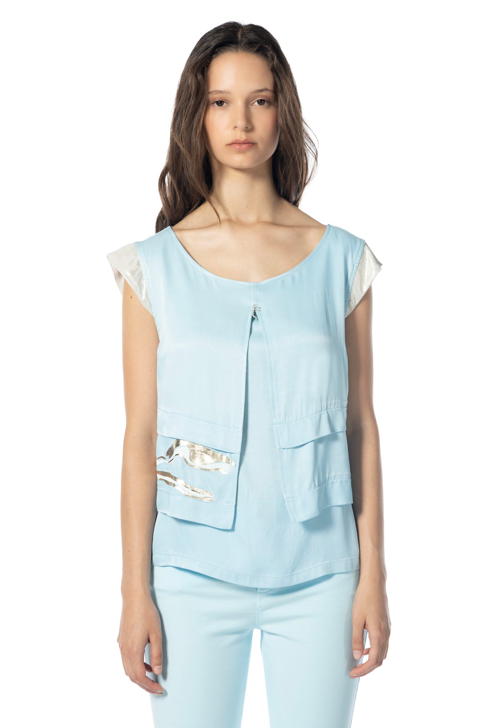 Add a touch of tropical vibrancy to your look with the ELISA CAVALETTI Lindo top. In lively turquoise with silver embellishments, this top is a real eye-catcher. Perfect for summer days, it accentuates your beauty and conveys a feeling of energy and passion.